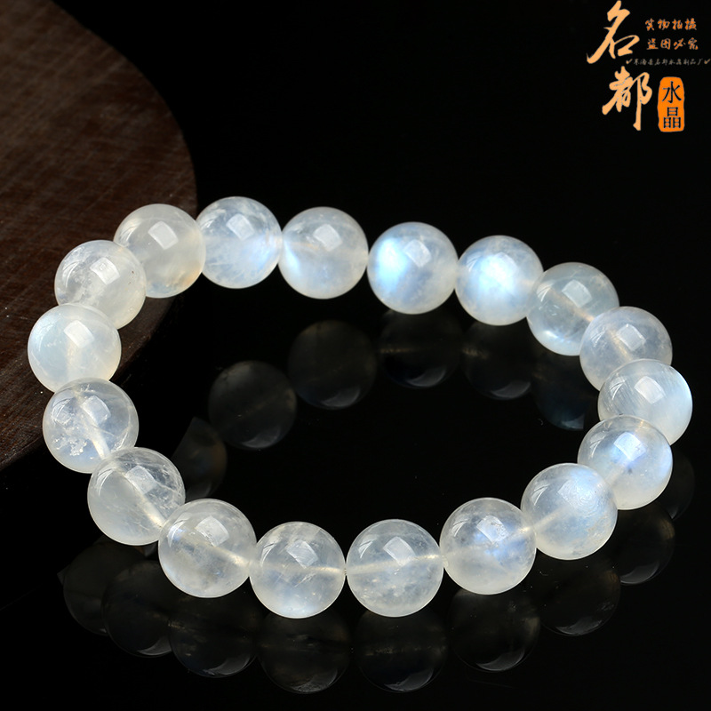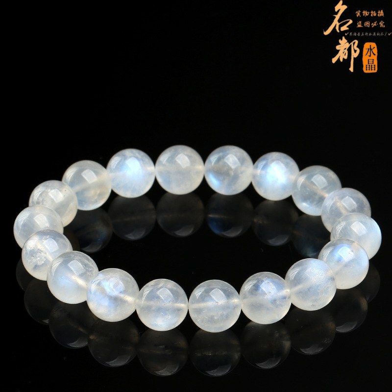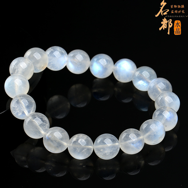 天然水晶 天然蓝月光圆珠手链 白色蓝光月光石手串 厂家直销