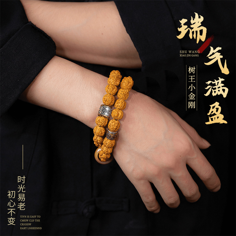 抖音爆款树王爆肉小金刚菩提手串男双圈手链文玩佛珠核桃金刚菩提