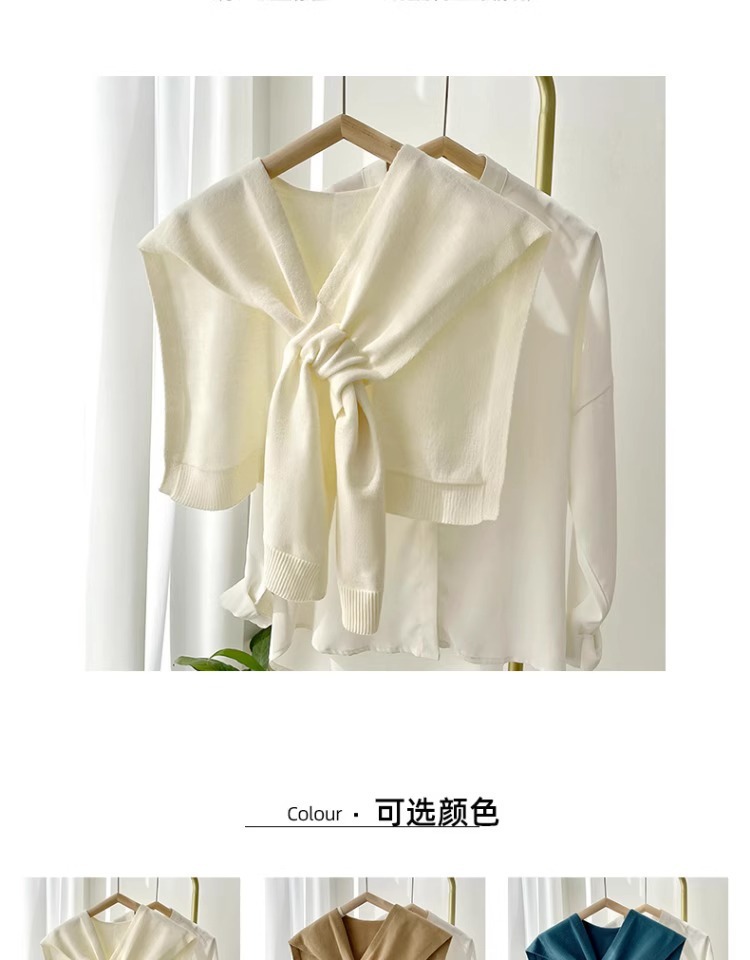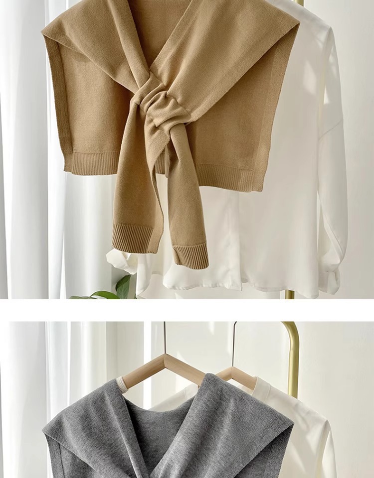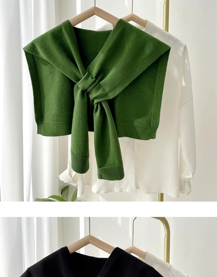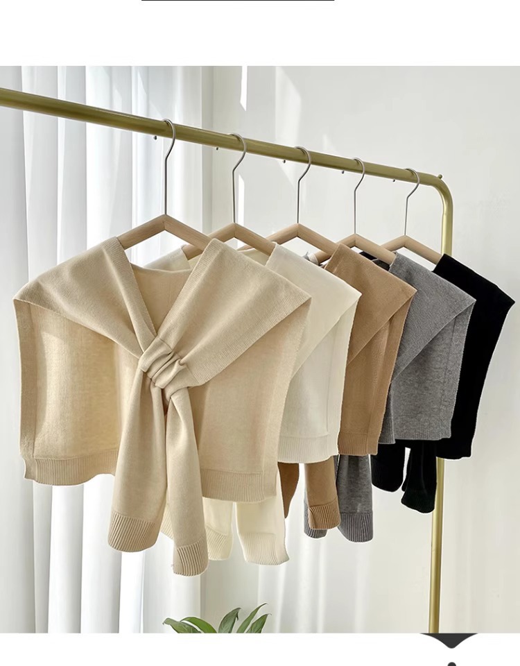 新款韩版披肩针织衫小坎肩女百搭交叉斗篷小披肩夏季外搭装饰假领