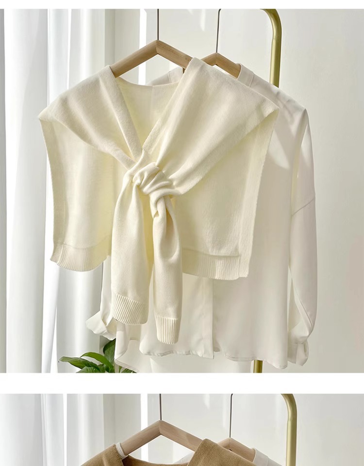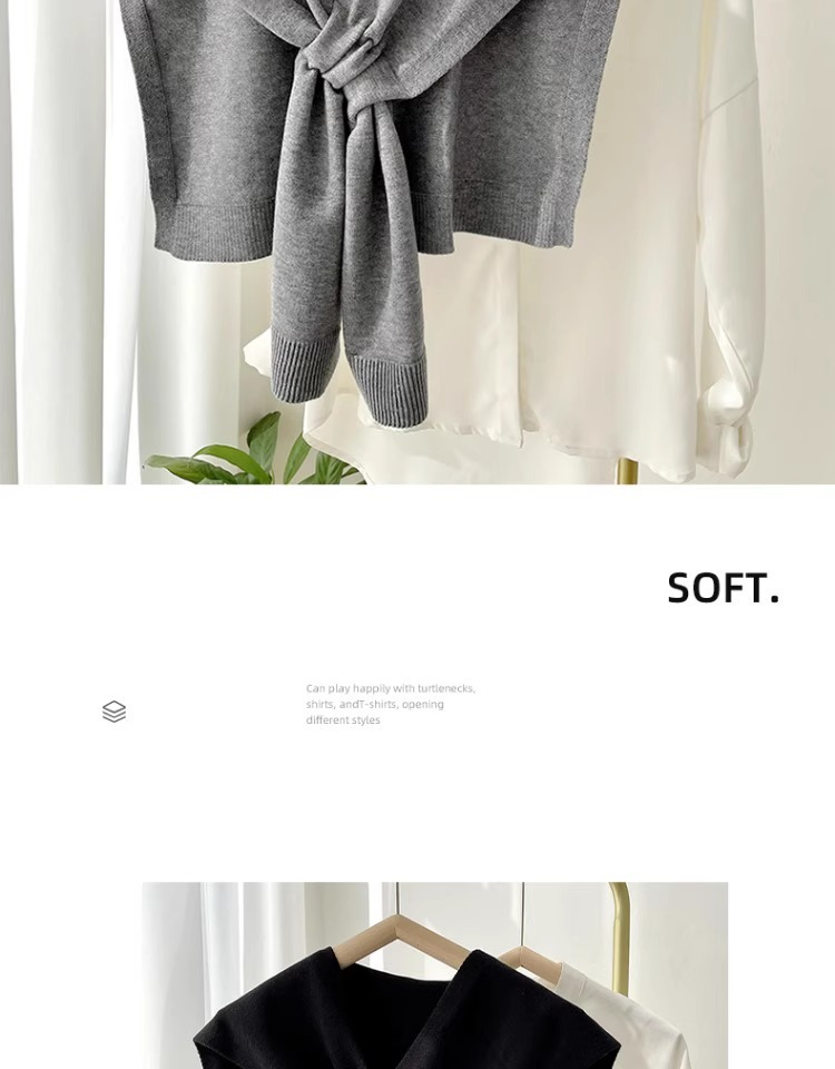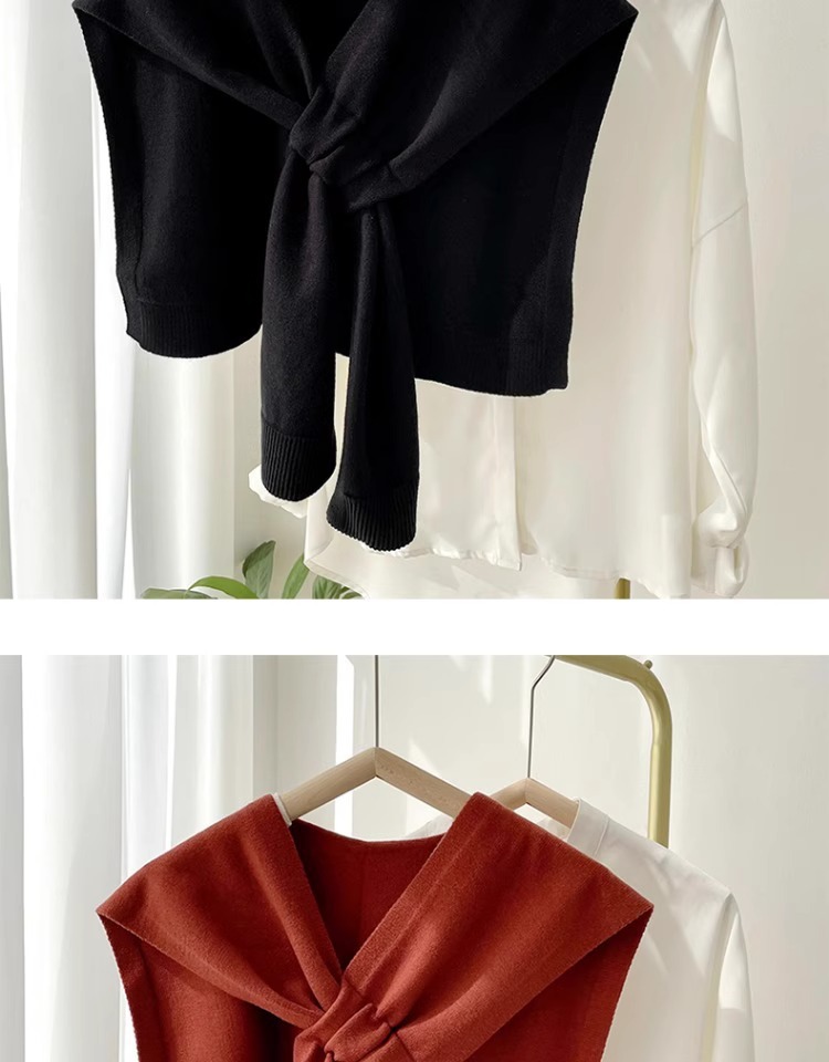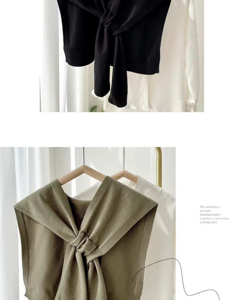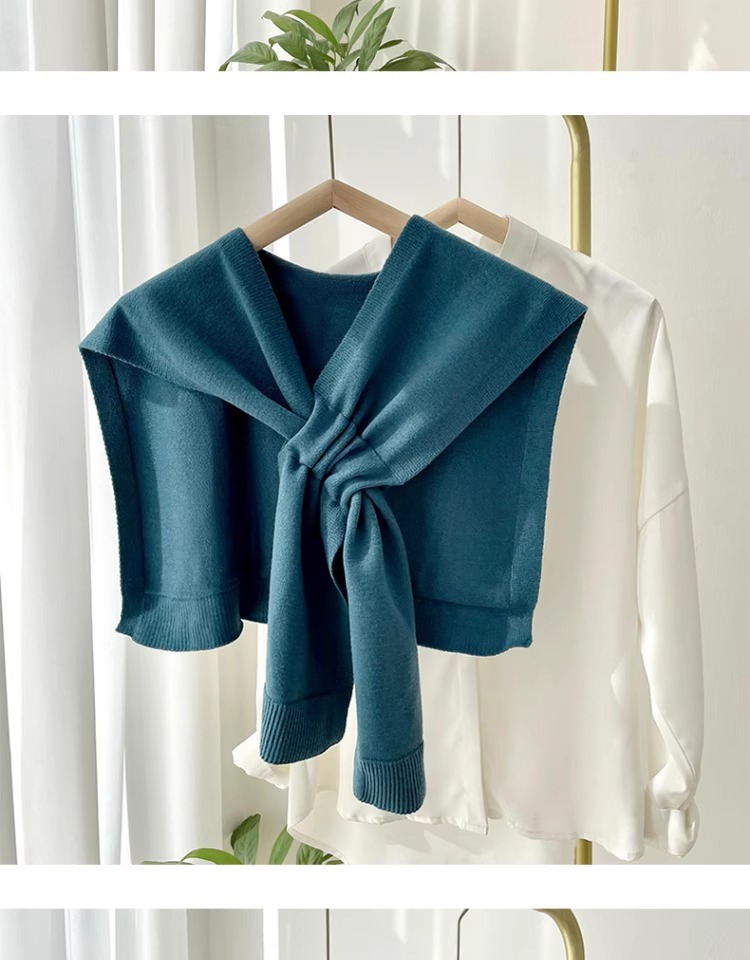新款韩版披肩针织衫小坎肩女百搭交叉斗篷小披肩夏季外搭装饰假领