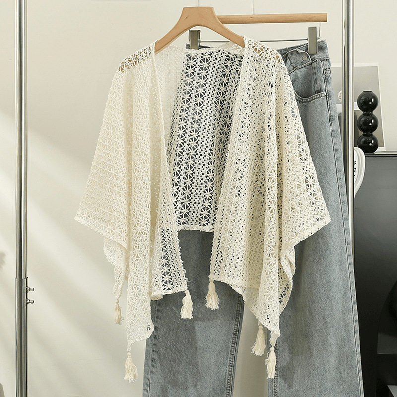 复古民族度假风针织流苏开衫女薄款春秋小披肩配裙子外搭装饰披肩