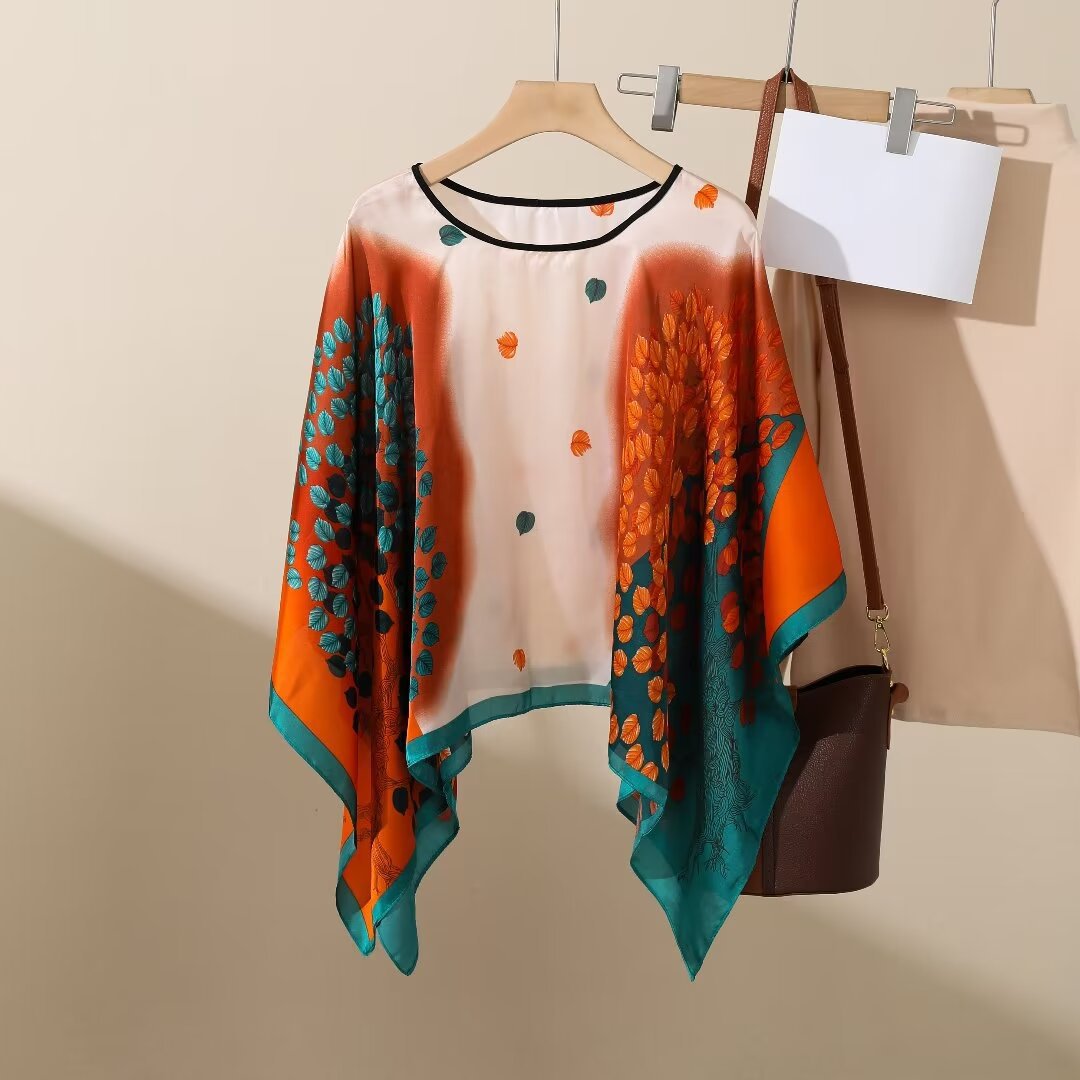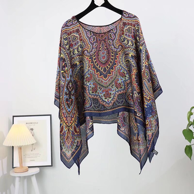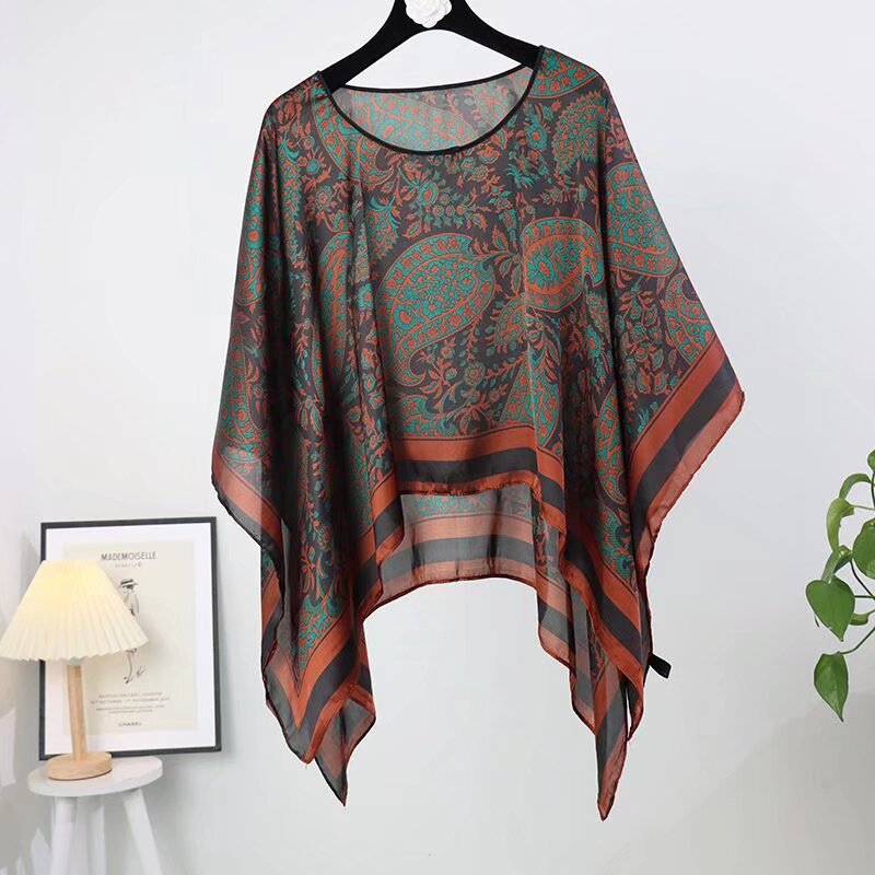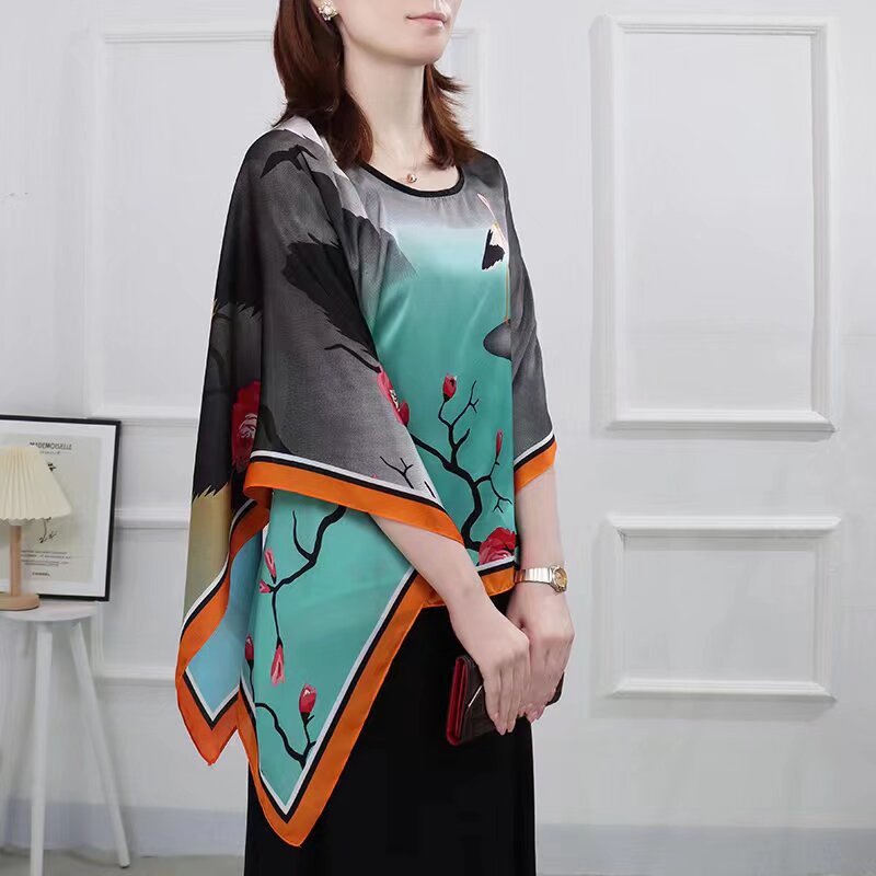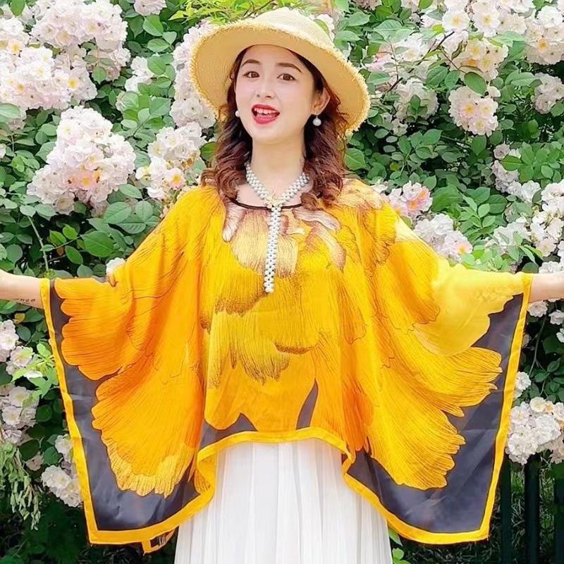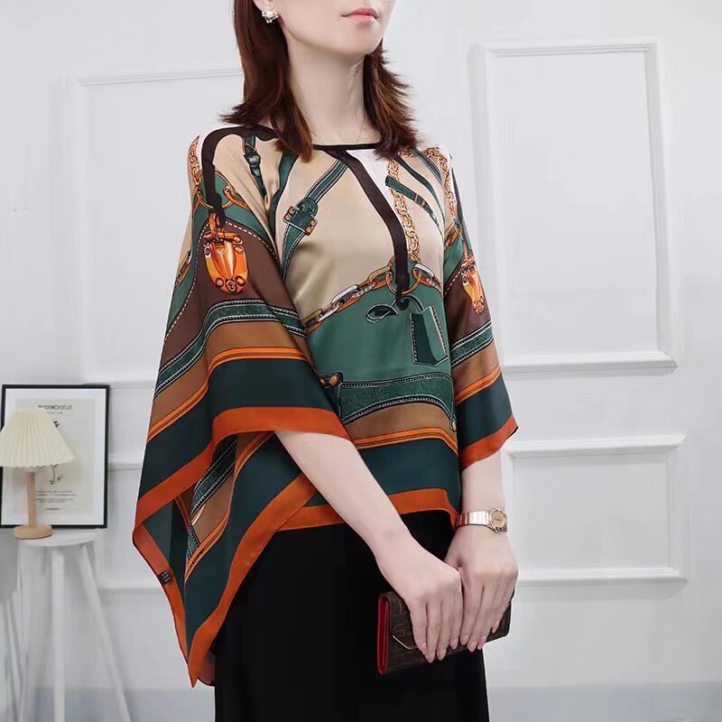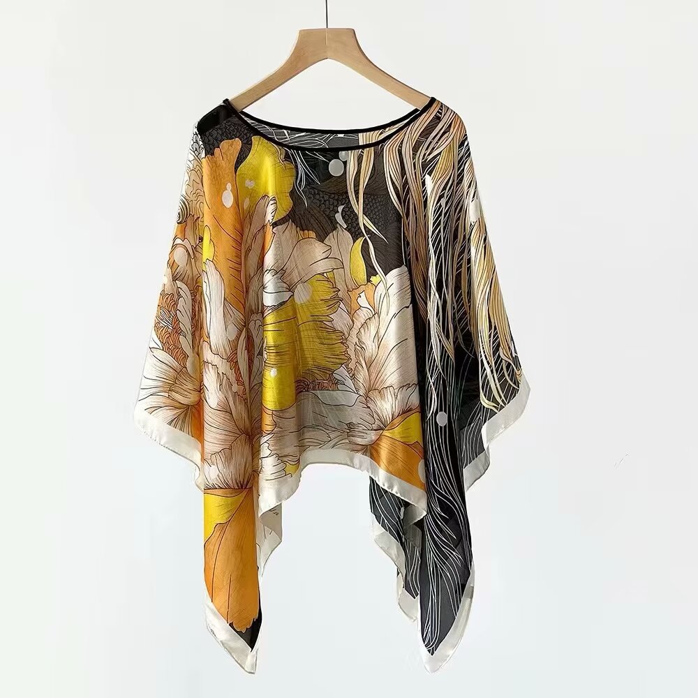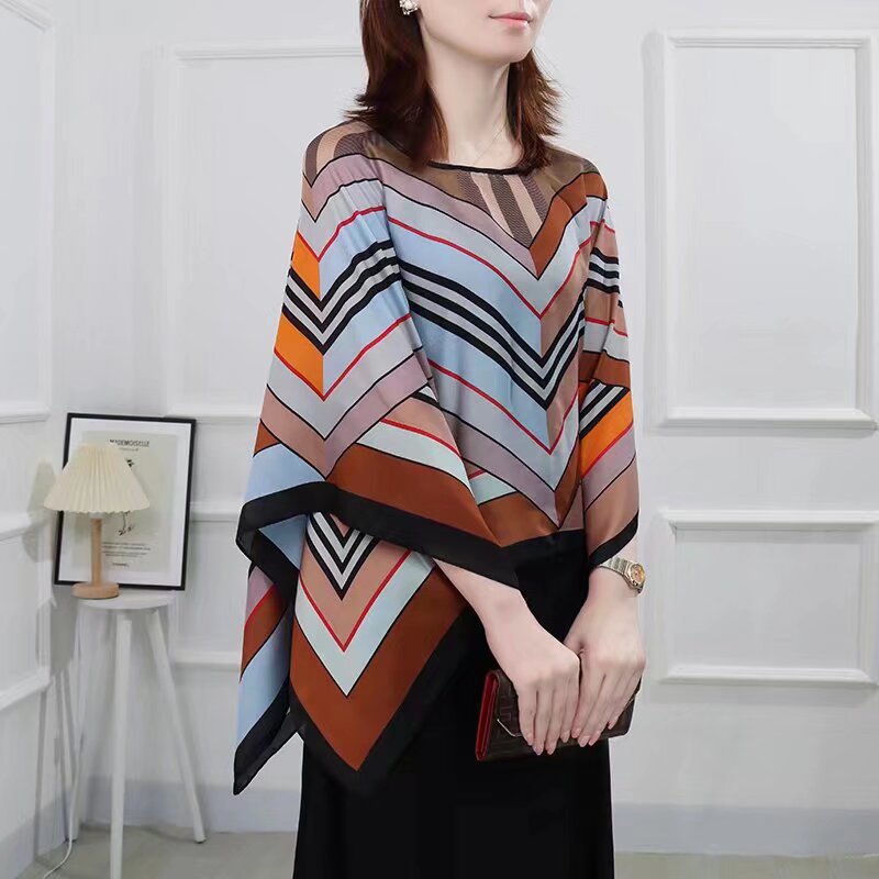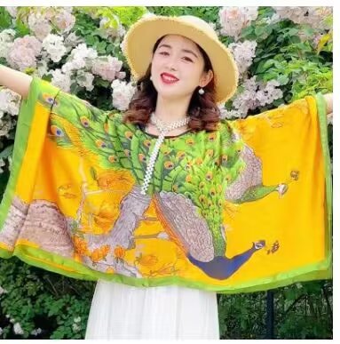 丽锦段110cm套头披肩百搭时尚防晒丝巾女披肩外搭围巾沙滩巾批发