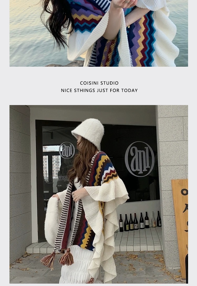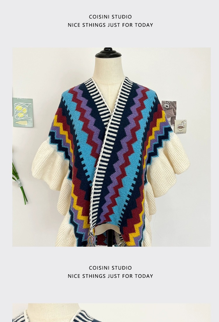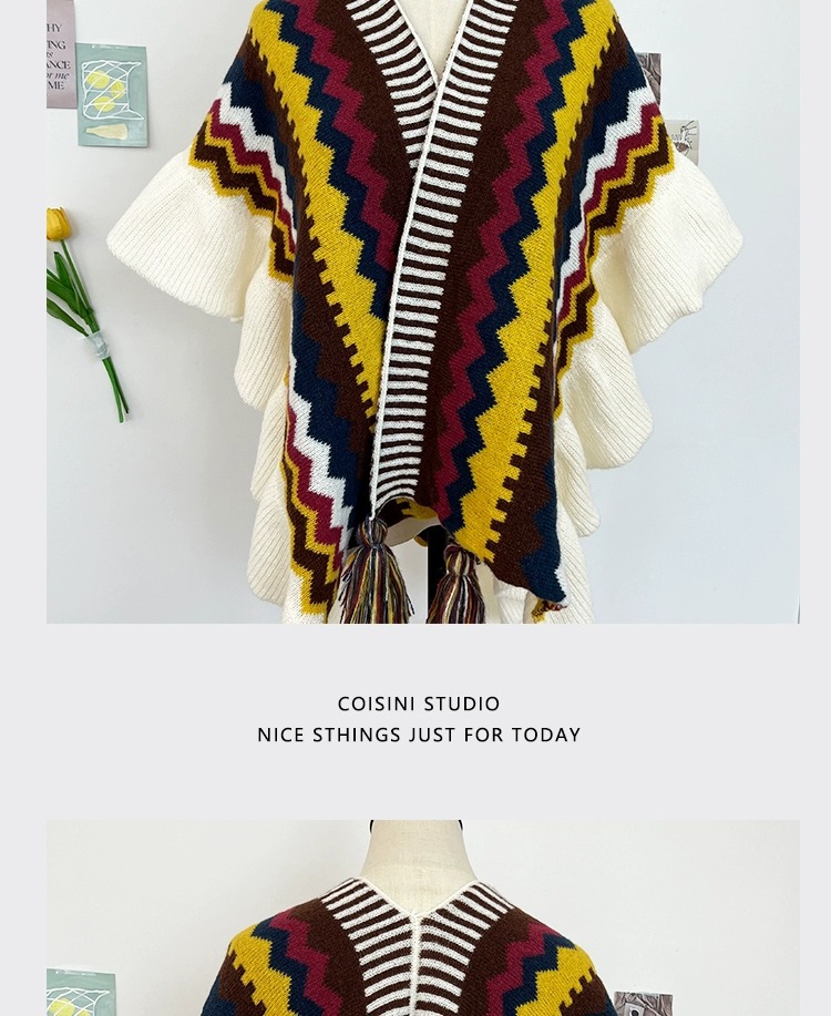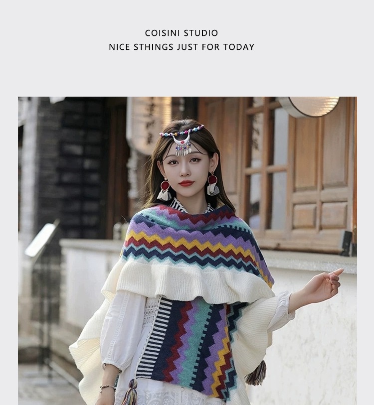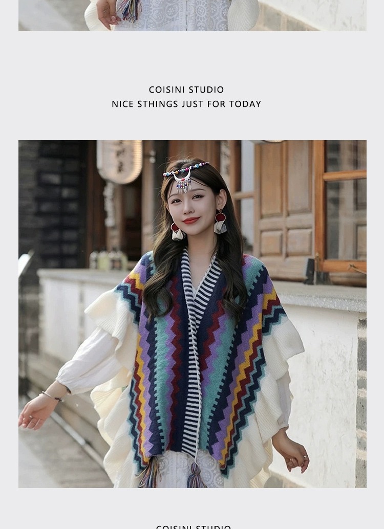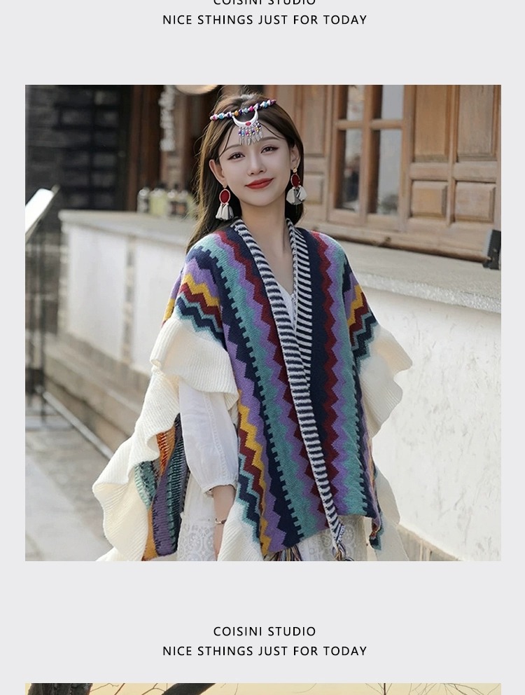 波西米亚风云南民族风流苏披肩女木耳边斗篷旅游穿搭新款披风批发