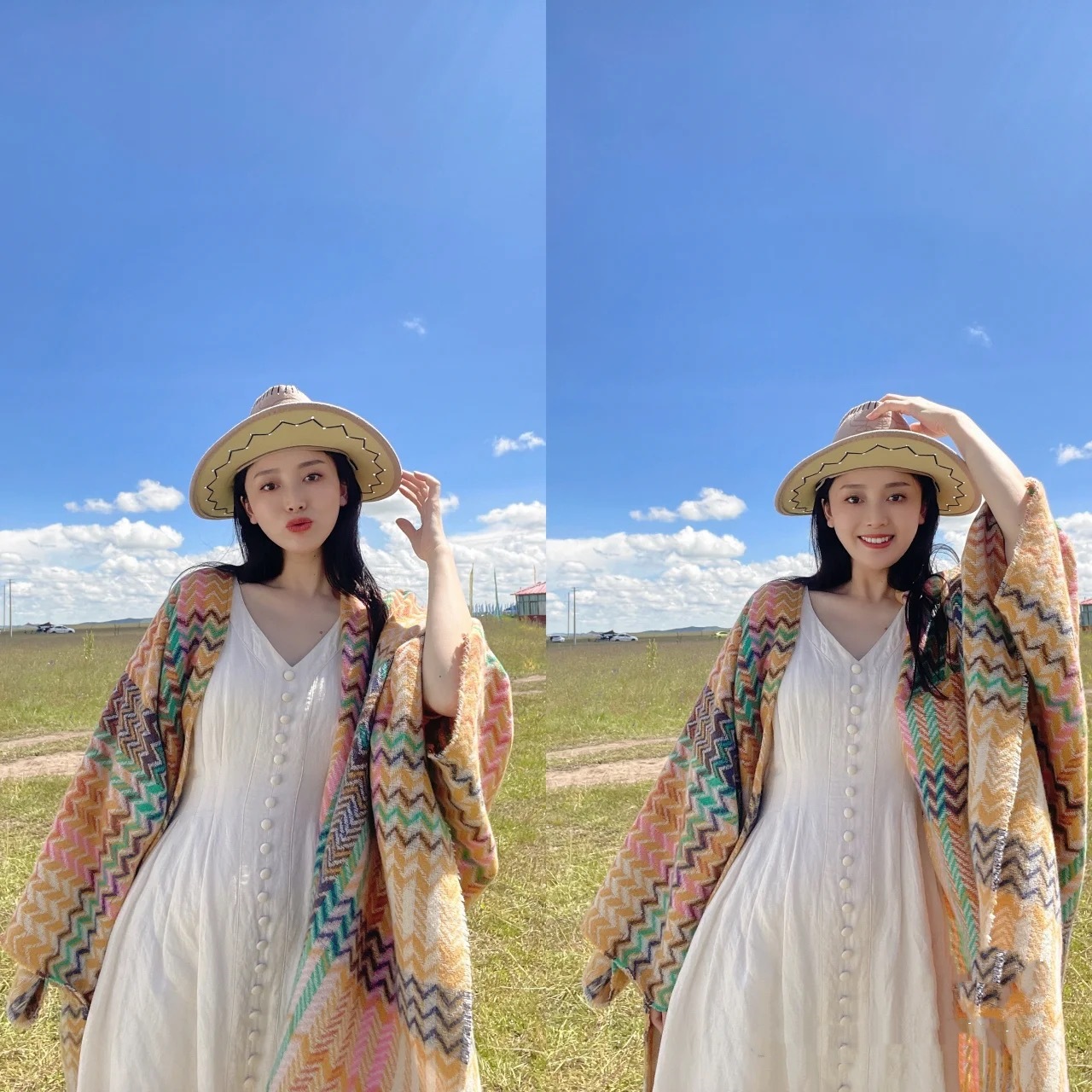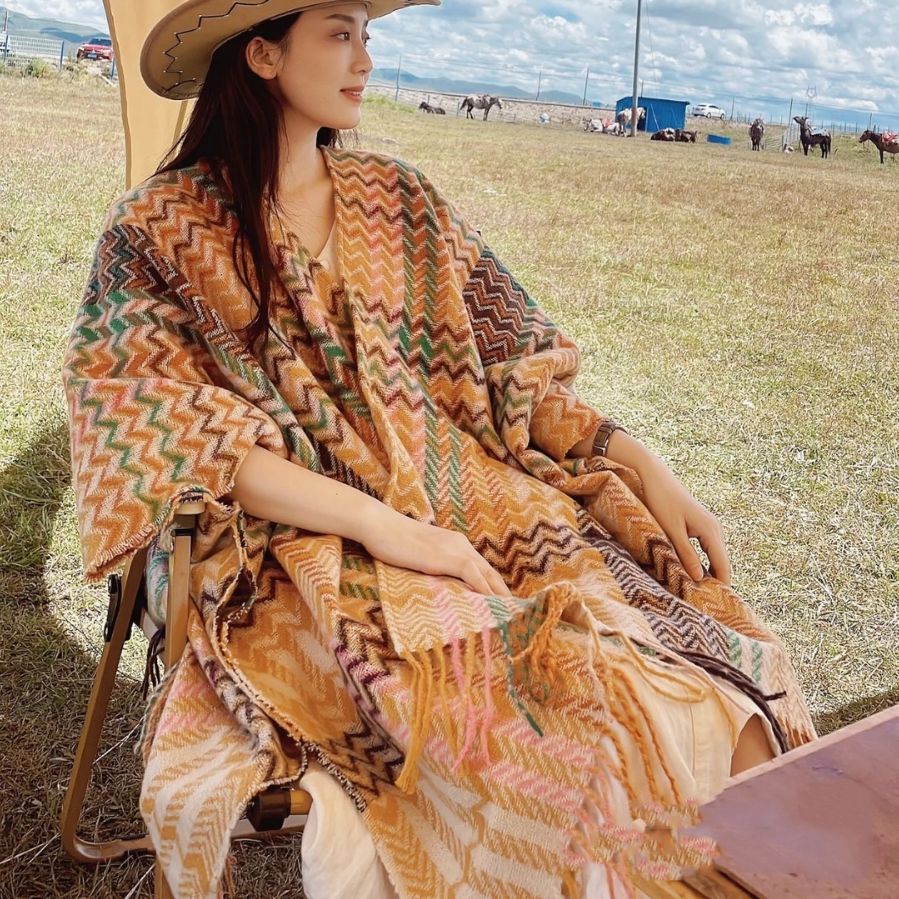 新疆沙漠复古旅游拍照针织民族风条纹披肩外搭女围巾斗篷披风毛毯