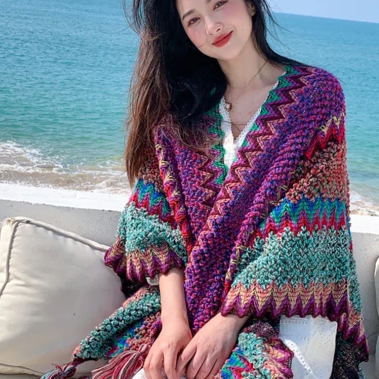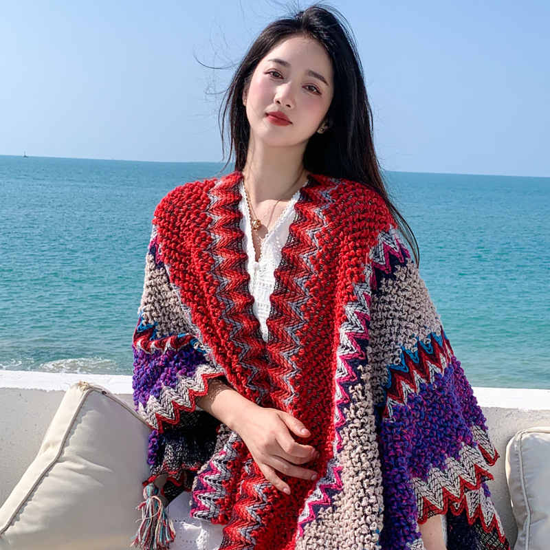 批发复古民族风流苏披肩女云南西藏旅游拍照穿搭时尚外搭斗篷披风