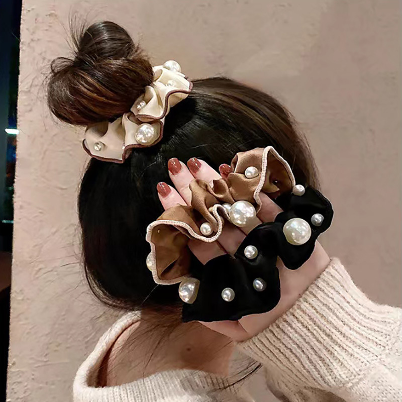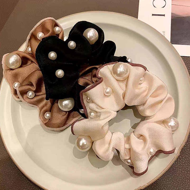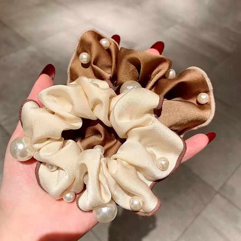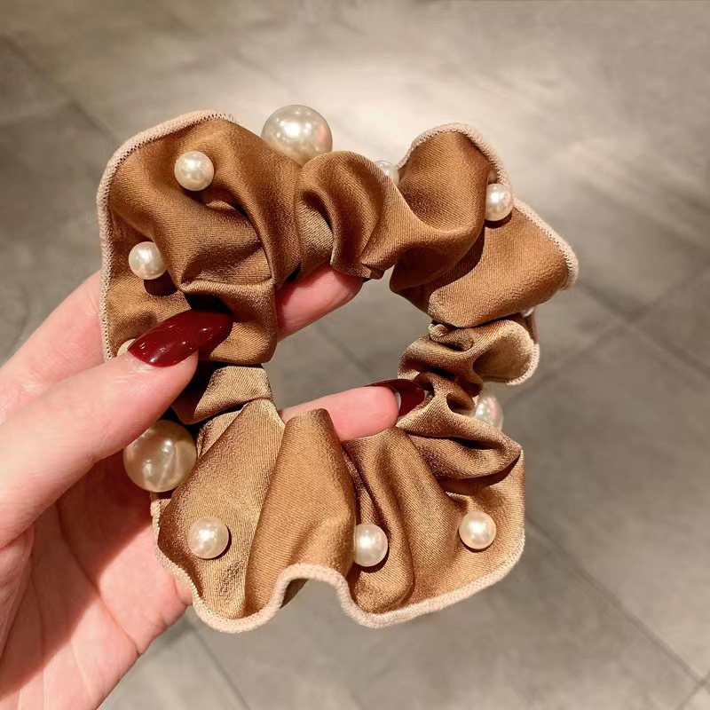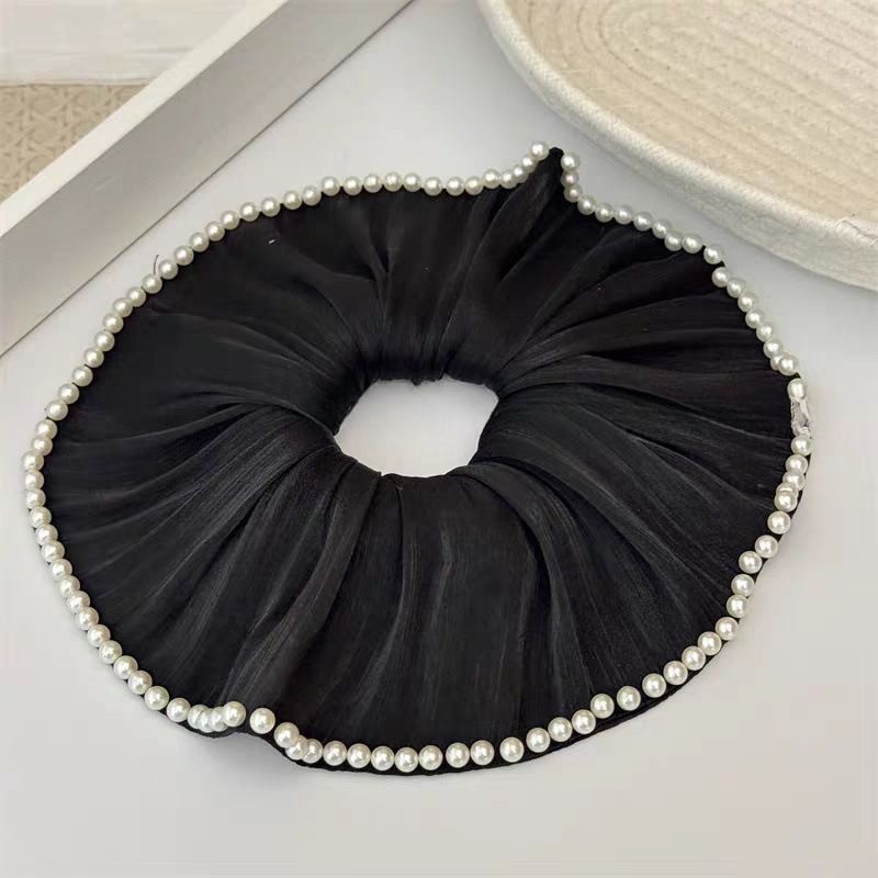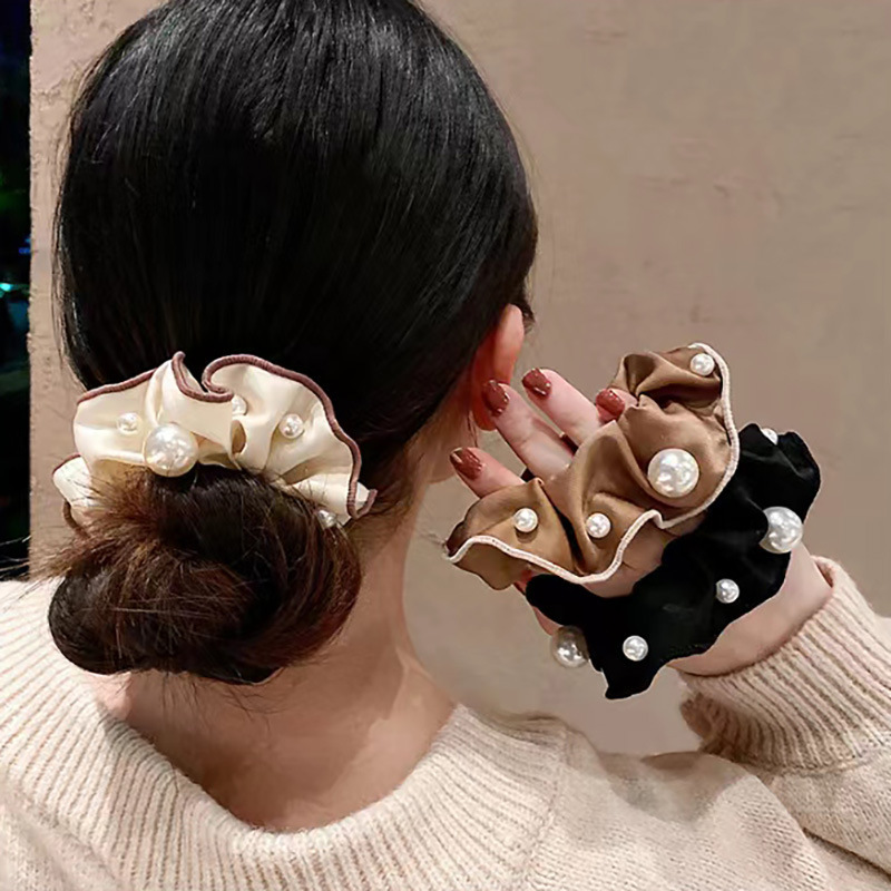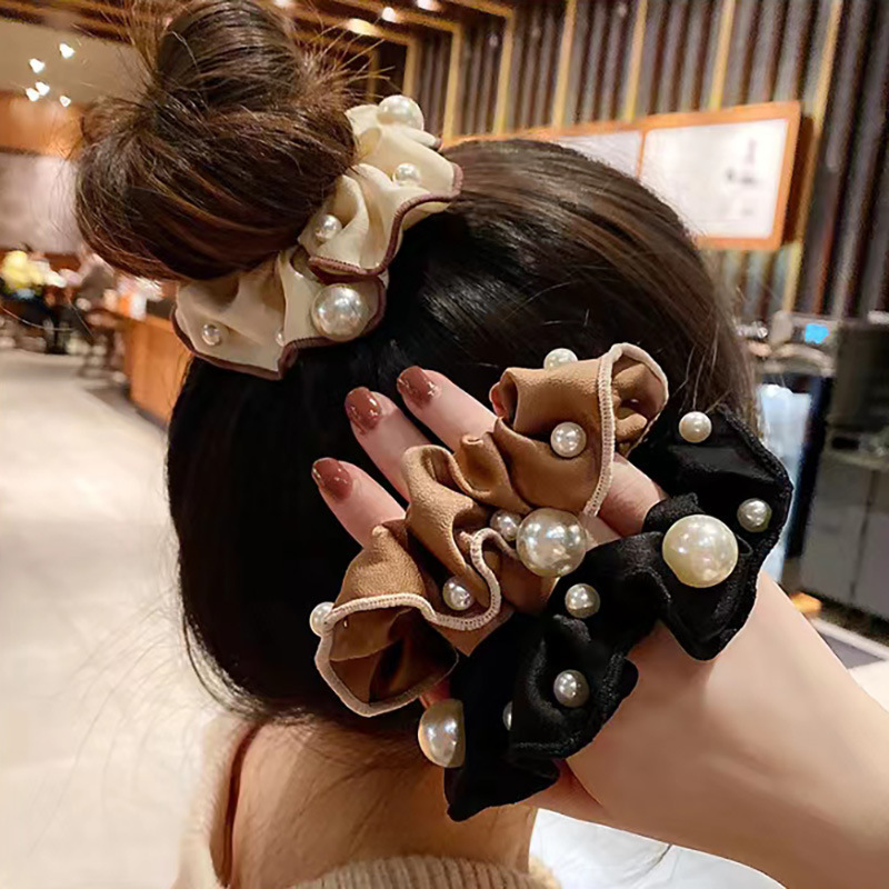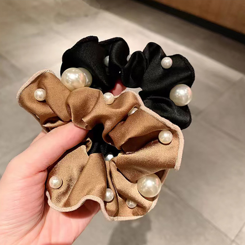 新款韩版珍珠发圈简约时尚布艺大肠发圈扎马尾丸子头发绳厂家批发
