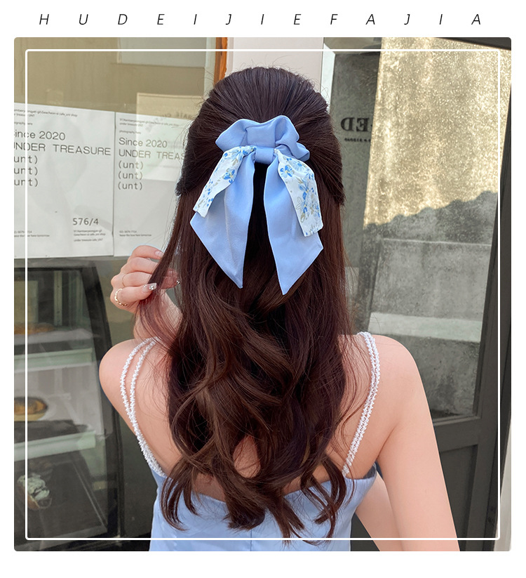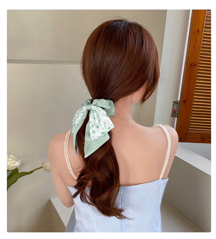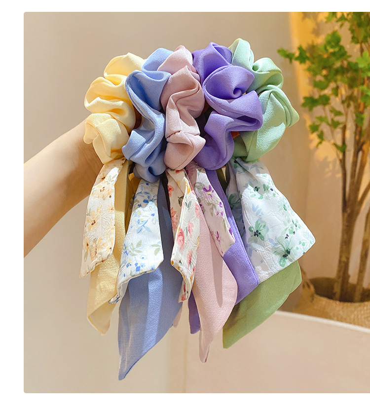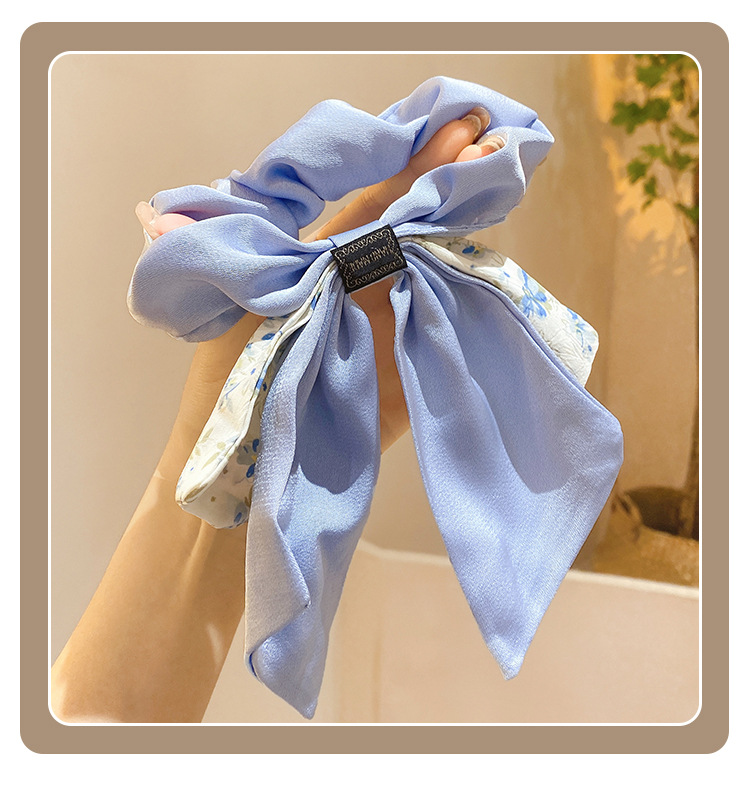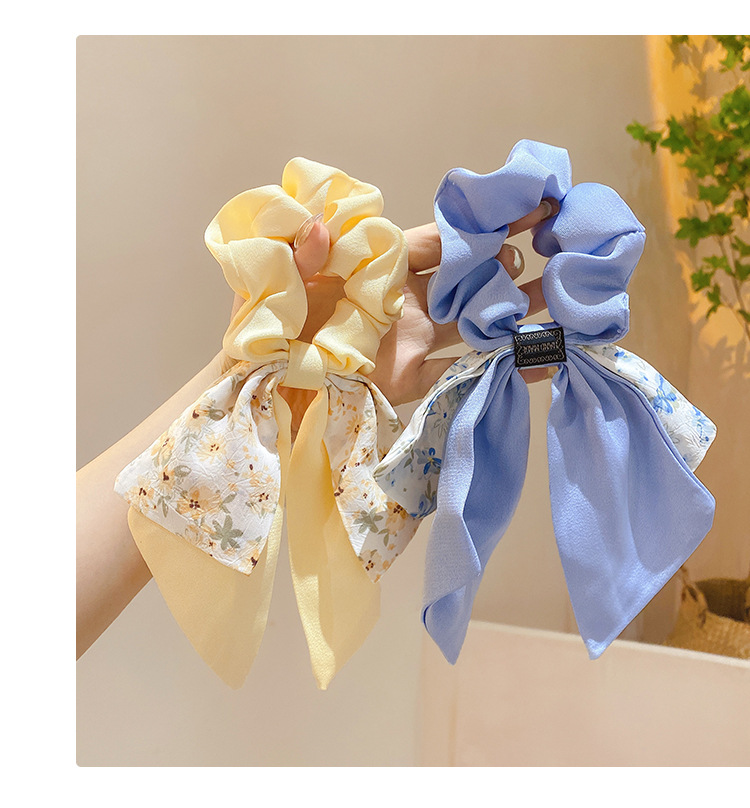 新款法式碎花蝴蝶结大肠发圈丝巾发带气质女绑发头绳复古飘带头饰