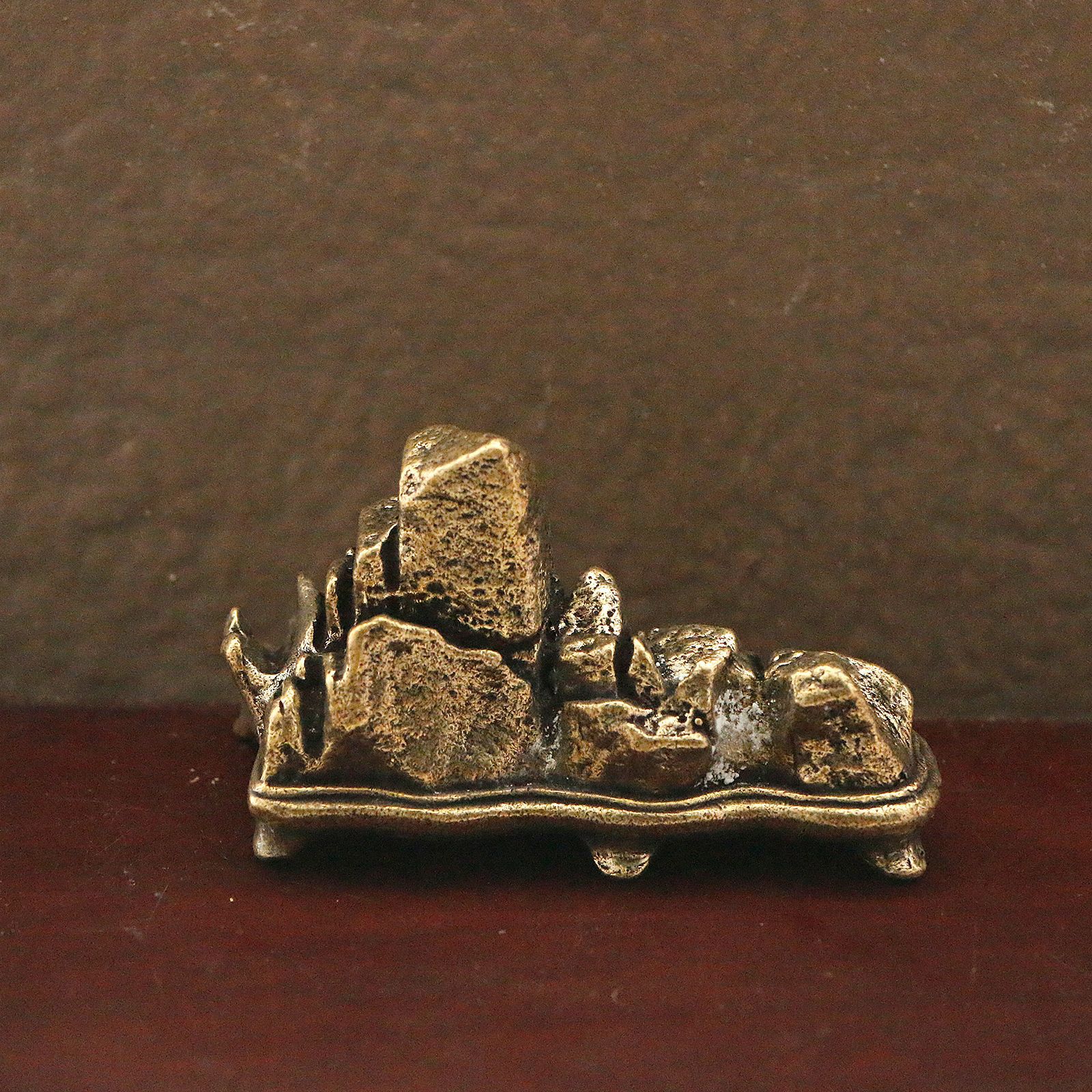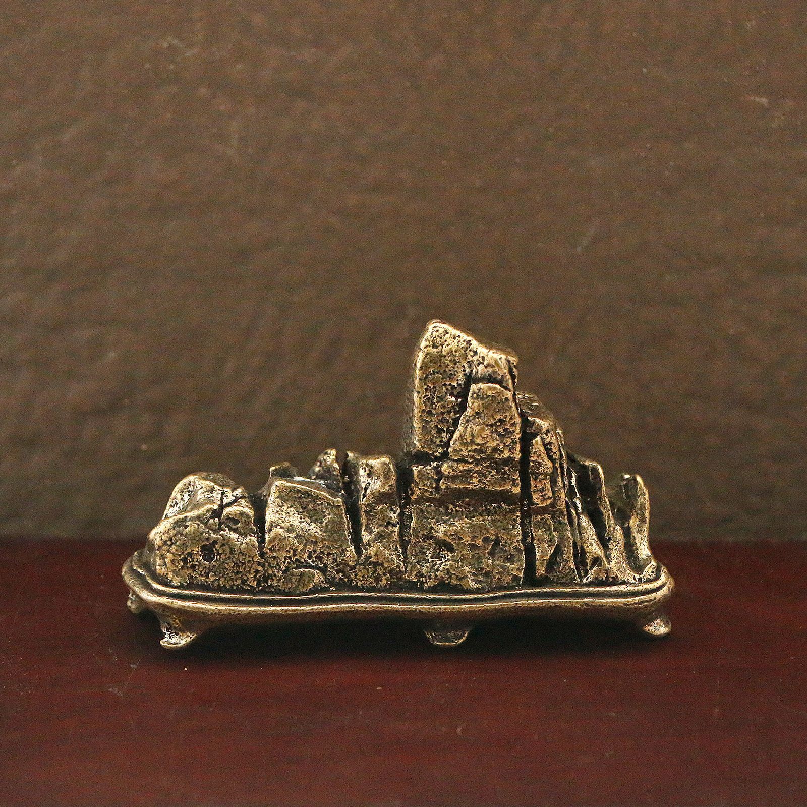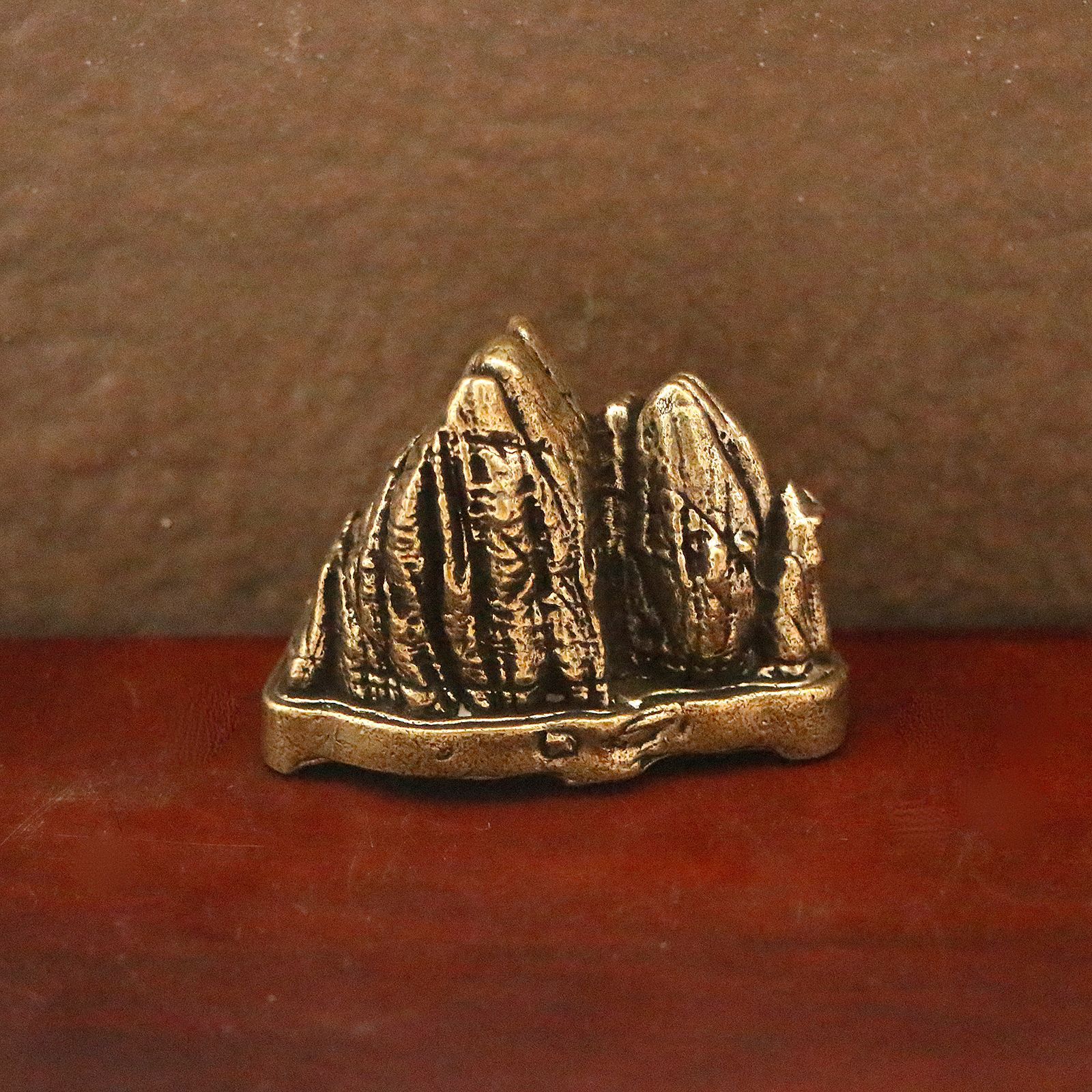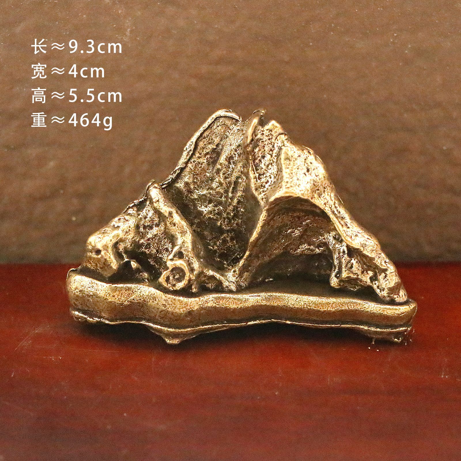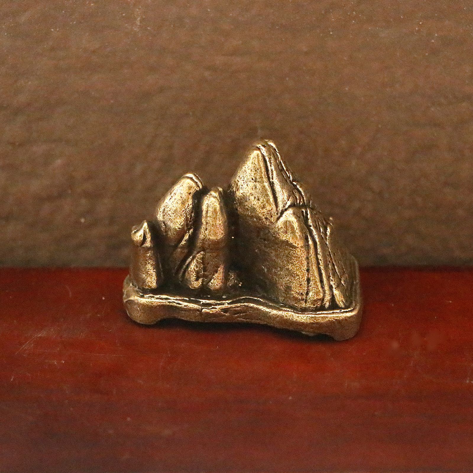 黄铜泰山石敢当摆件五岳独尊松树群山绿水家居装饰铜金山靠山石T