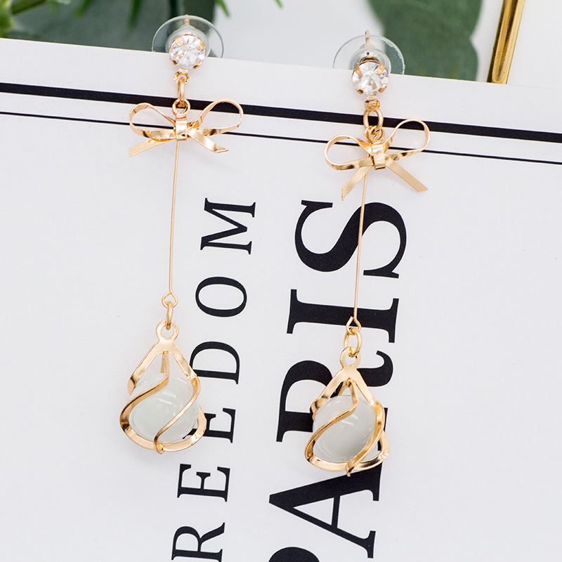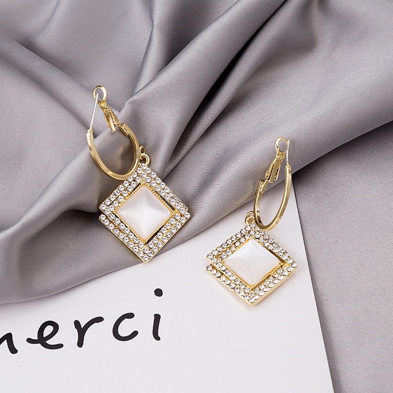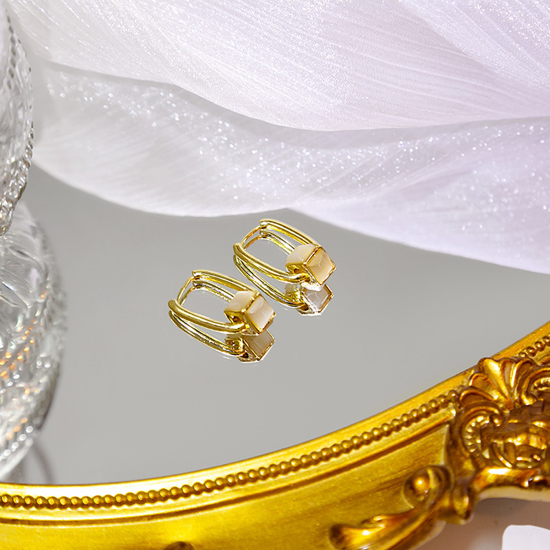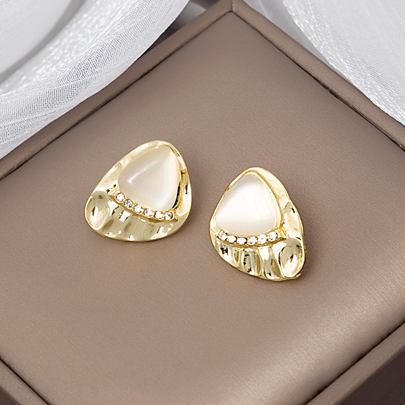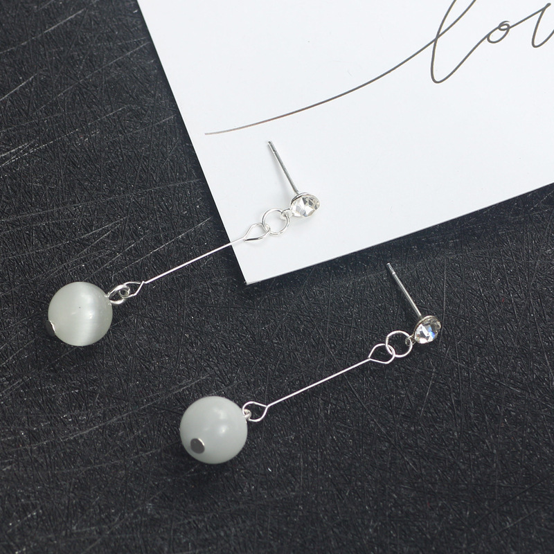 925银针猫眼石耳环韩国东大门气质几何镶钻水滴郁金香猫眼耳钉