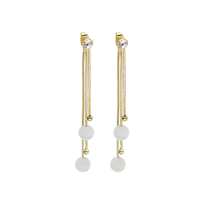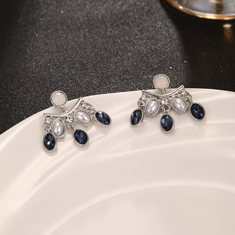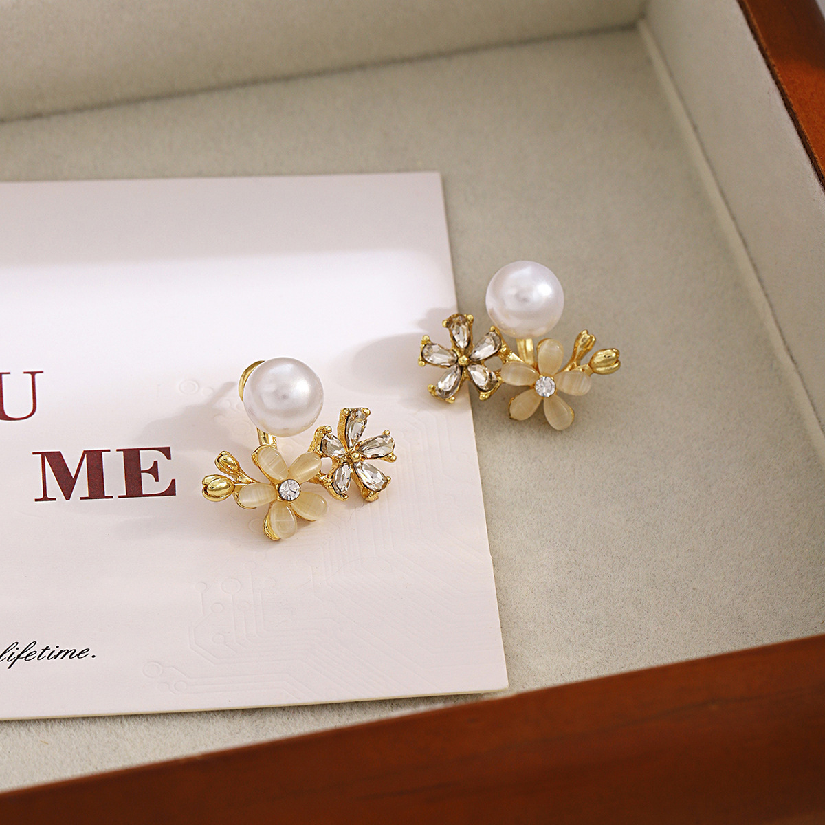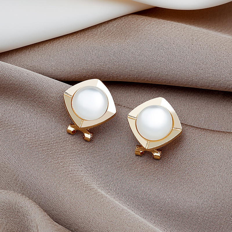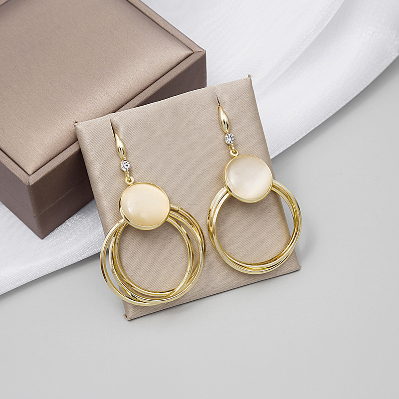 925银针猫眼石耳环韩国东大门气质几何镶钻水滴郁金香猫眼耳钉