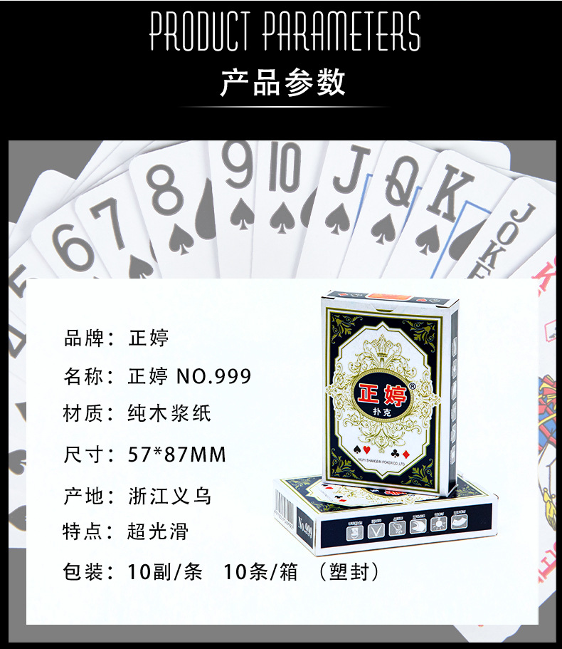 正婷999扑克牌100副装高档便宜娱乐纸牌家用超市棋牌室扑克牌批发