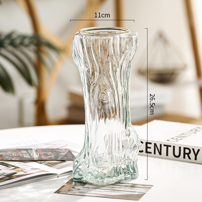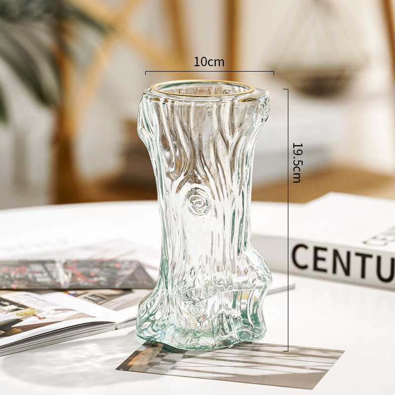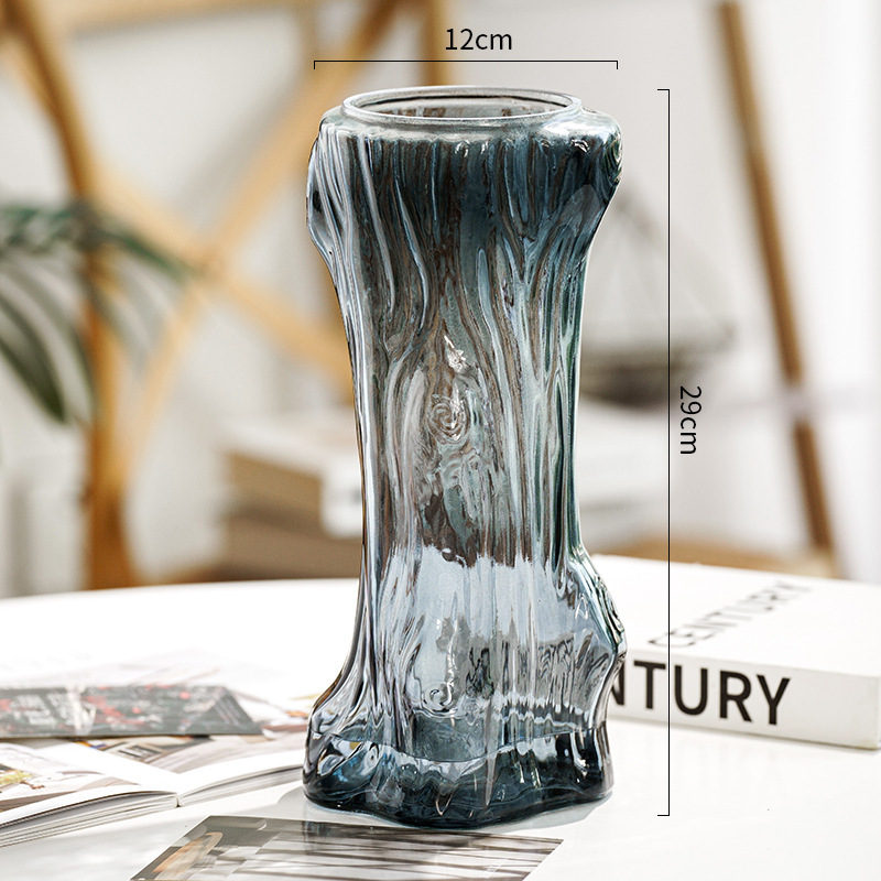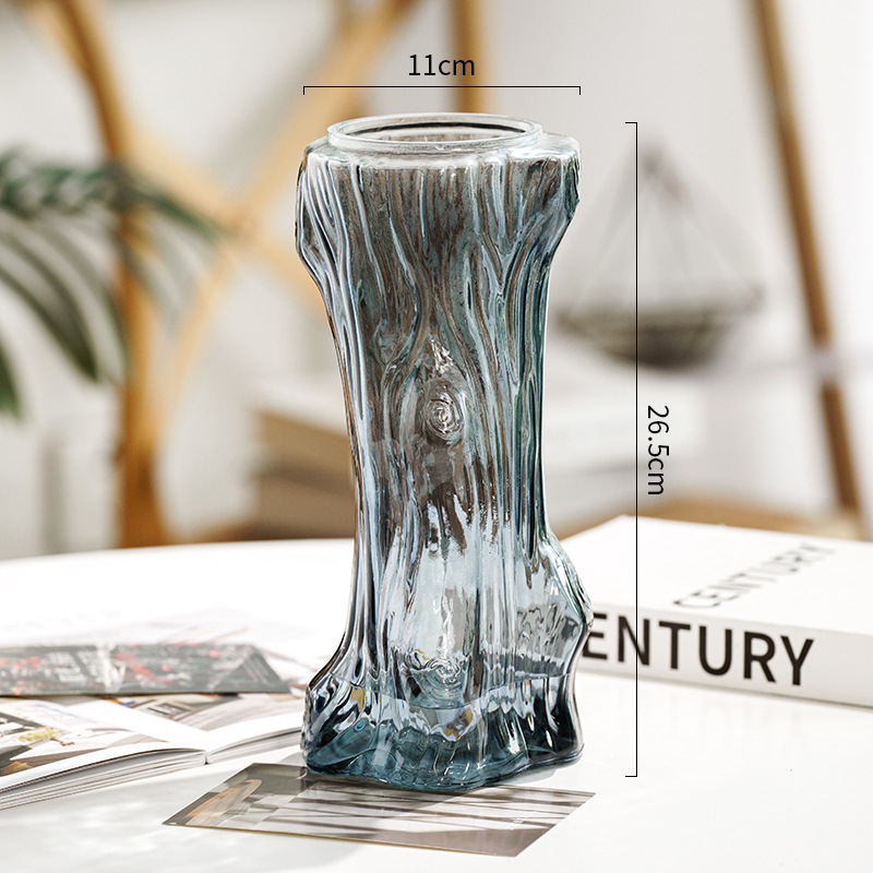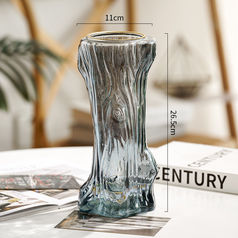 新款发财树花瓶创意田园风玻璃花瓶酒店家用装饰摆件干花鲜花器皿