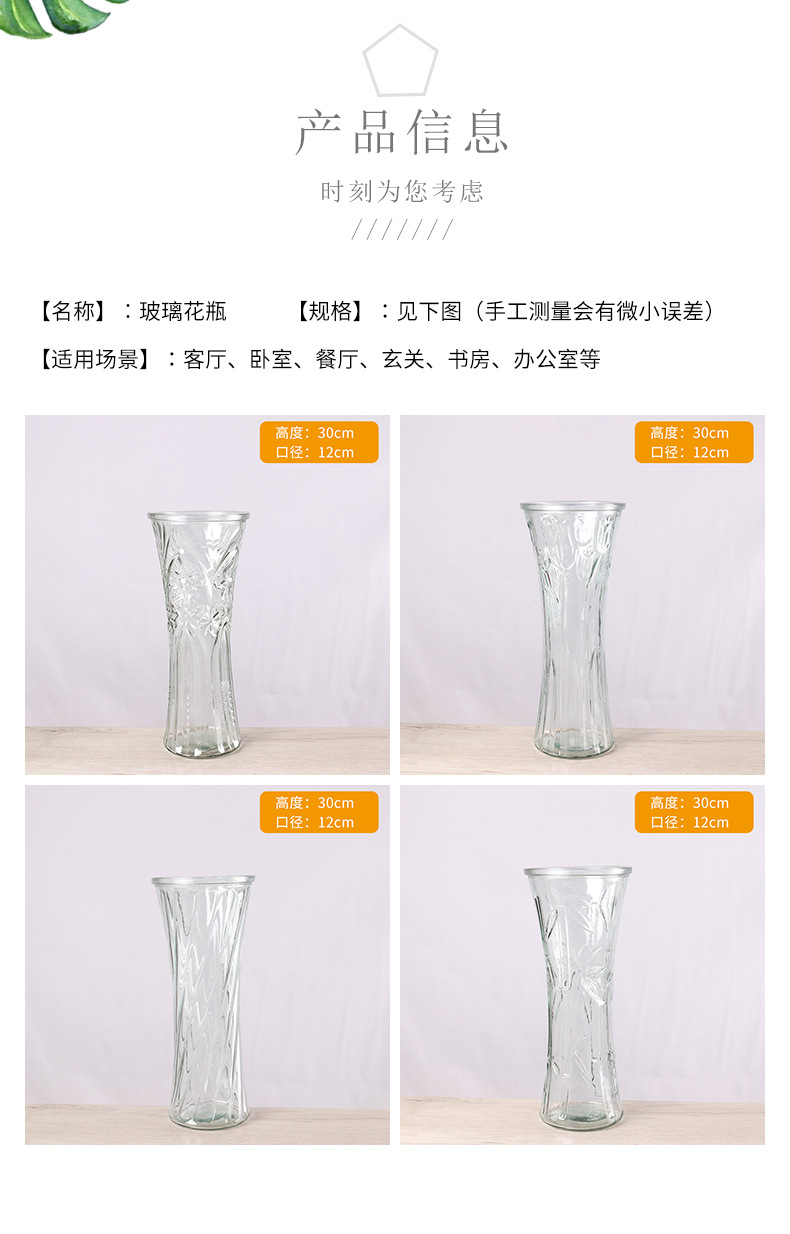 欧式大号玻璃透明花瓶客厅摆件水培插花瓶富贵竹百合干花花器饰品