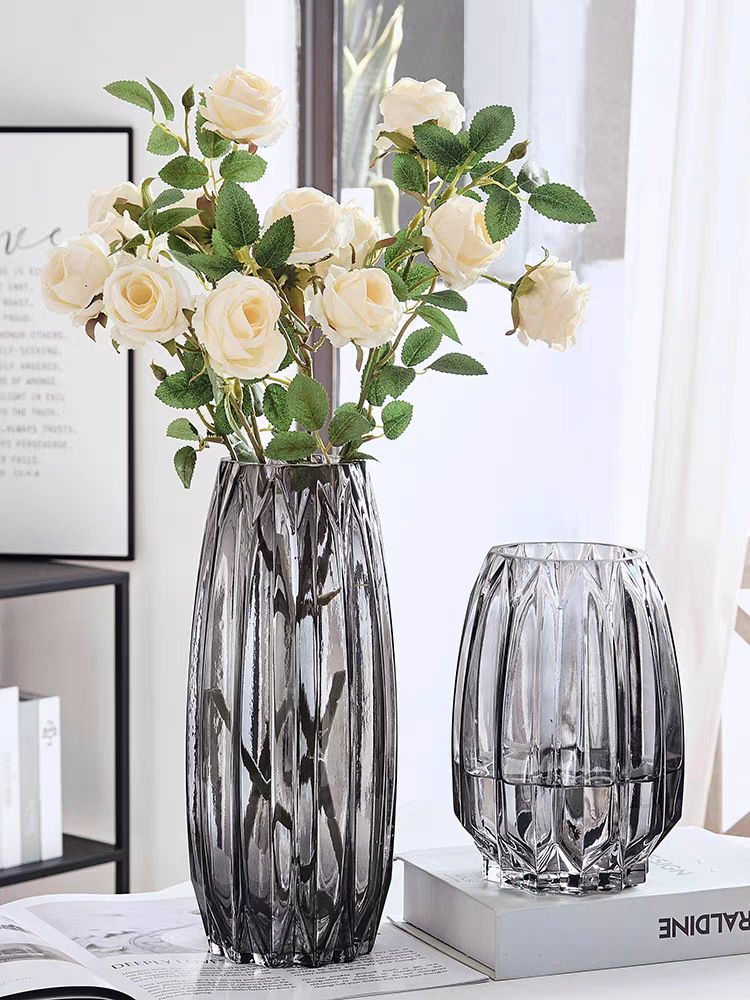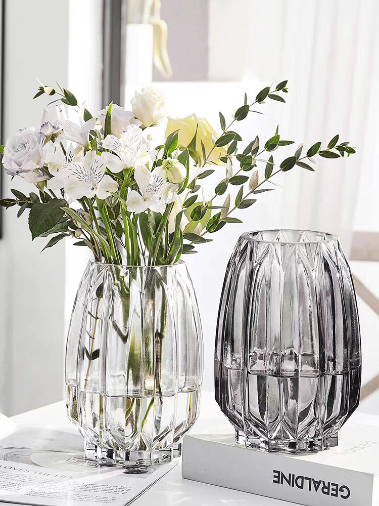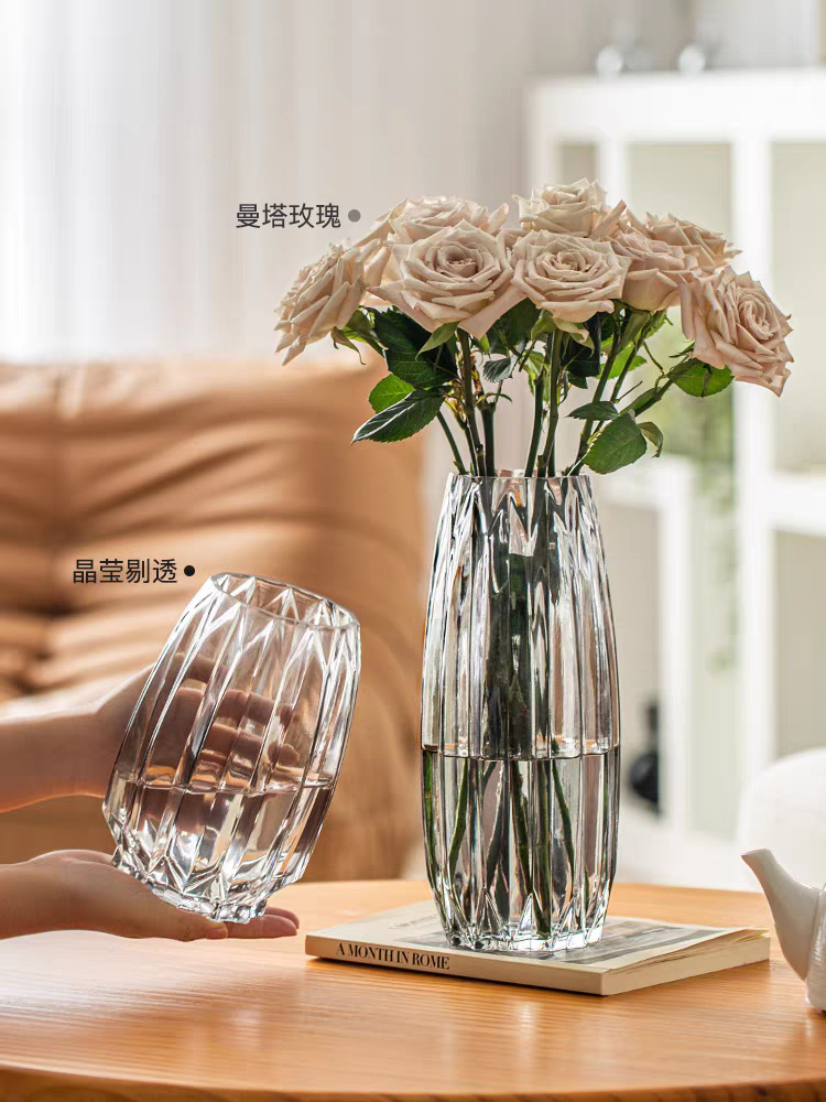 花瓶玻璃透明网红轻奢插花水养玫瑰百合郁金香感矮款客厅摆件