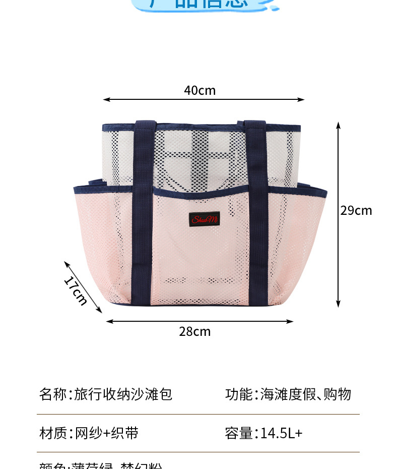 2025新款夏威夷托特沙滩包大容量健身泳衣收纳袋 便携手提网格包