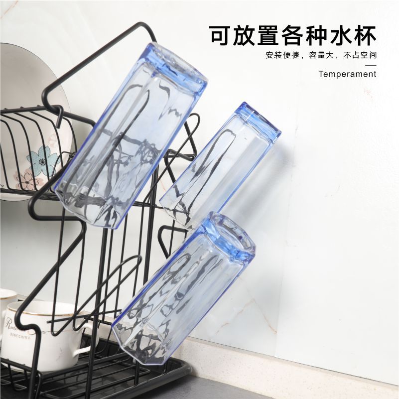 黑色树形厨房沥水架跨境置物架碗碟架沥水带筷笼收纳台面碗盘架