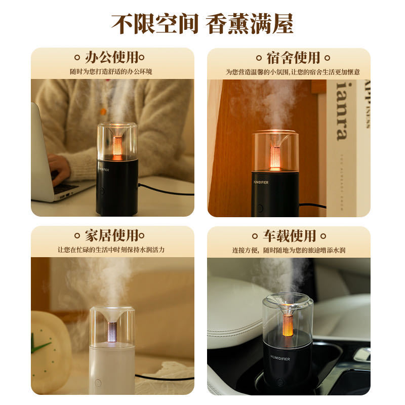 车载加湿器新款车载香薰机大雾量氛围灯室内迷你扩香机桌面烛光灯
