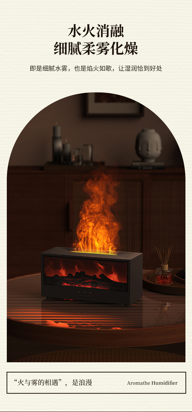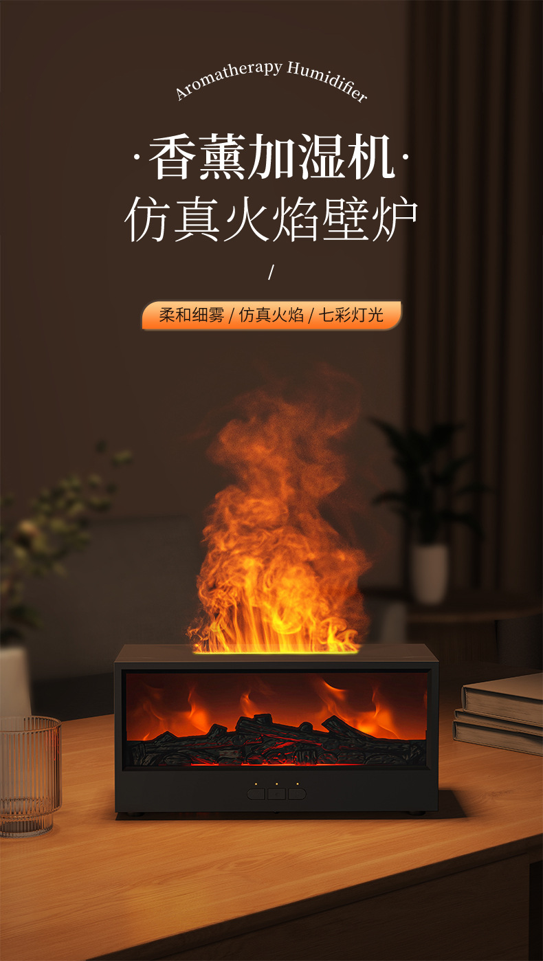 新款仿真壁炉火焰香薰机 北欧家用桌面壁炉氛围火焰壁炉香薰加湿