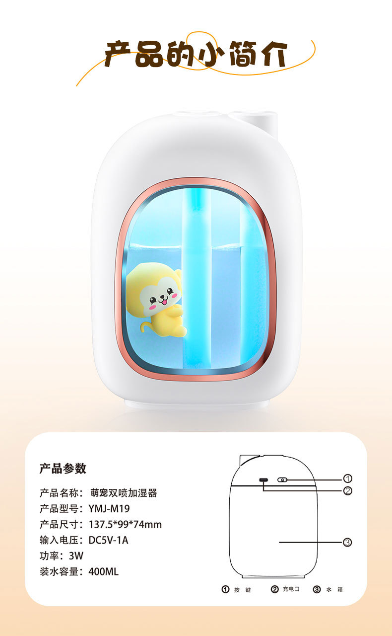 卧室加湿器小型办公室礼物车用净化双喷便携高颜值可爱香薰机无线