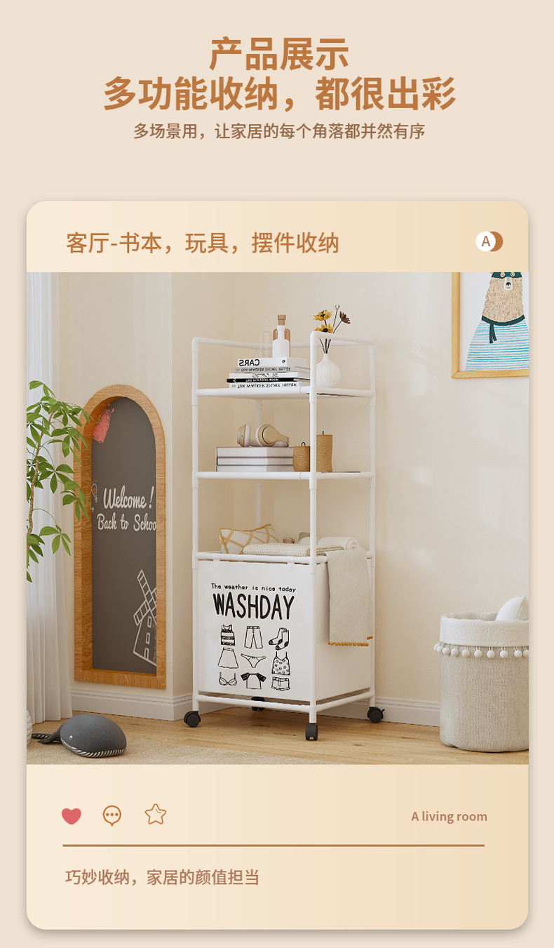 跨境新款户外带轮可移收纳动置物架小推车客厅零食收纳架移动书架
