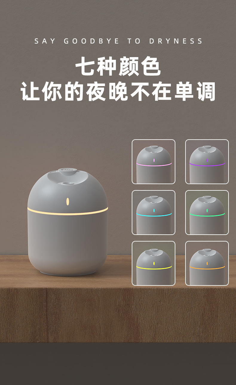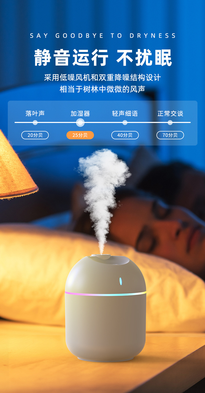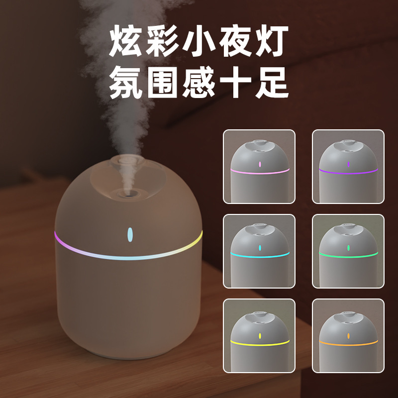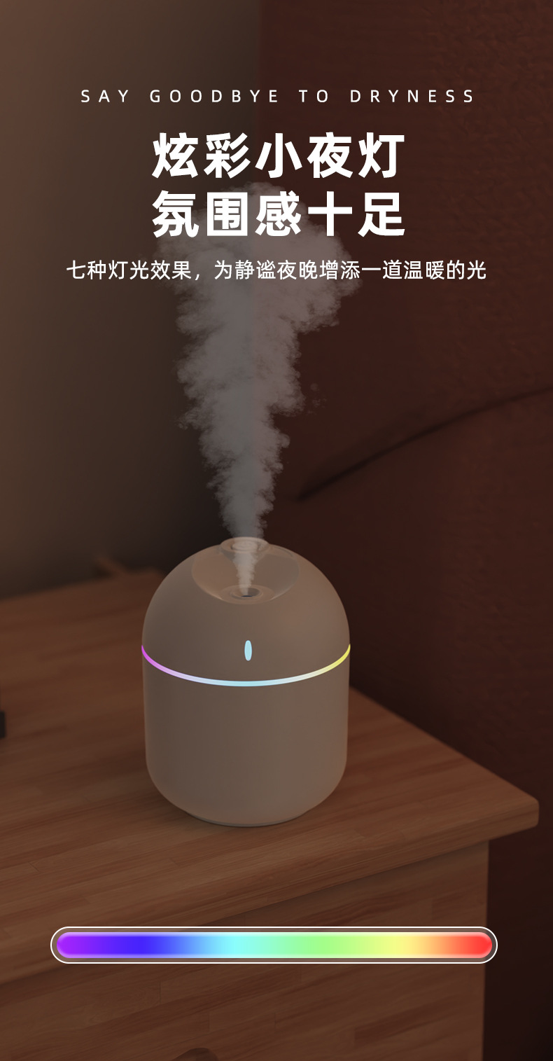 跨境新款迷你家用桌面usb车载喷雾器宿舍卧室氛围灯低音补水加湿