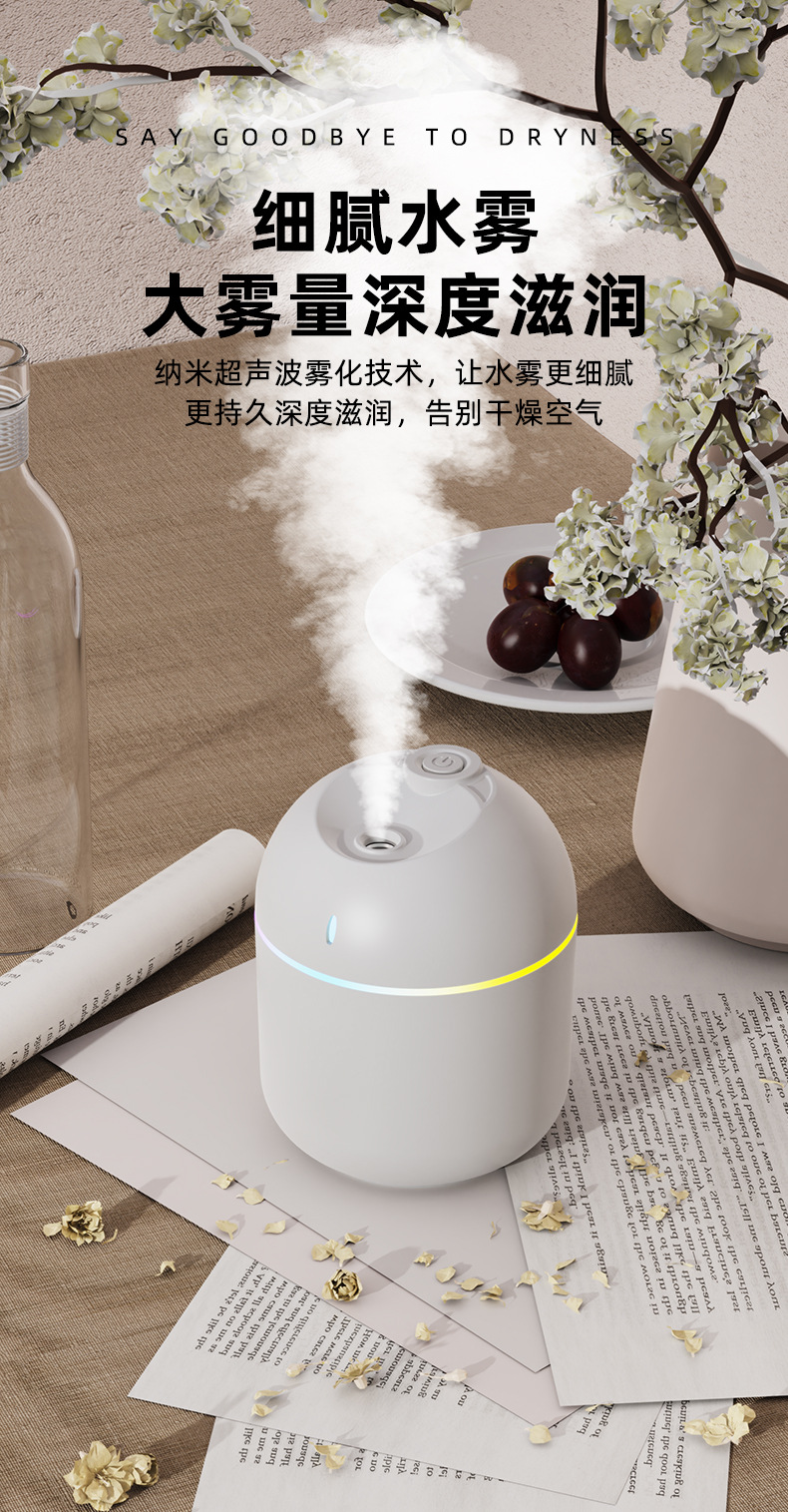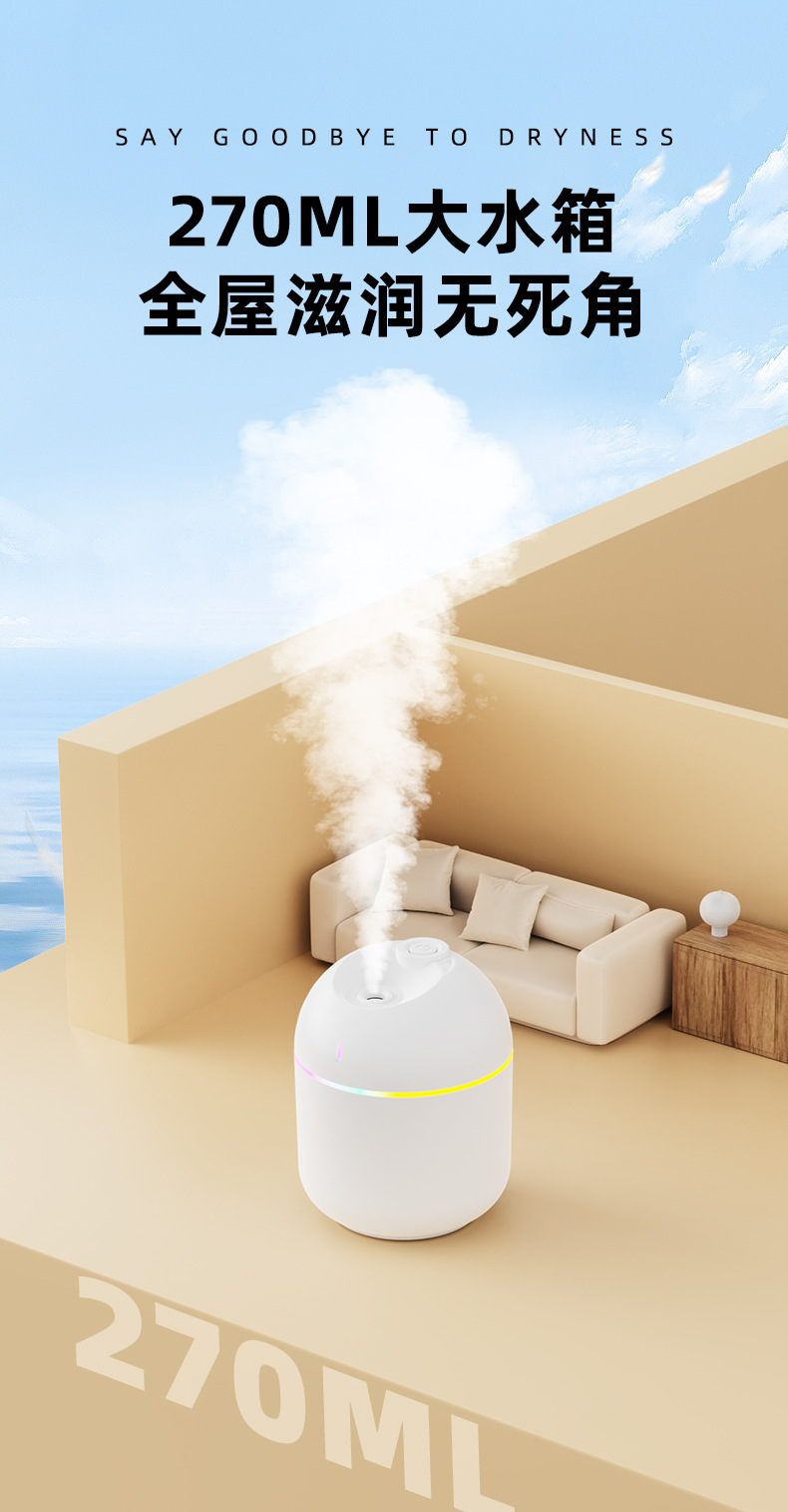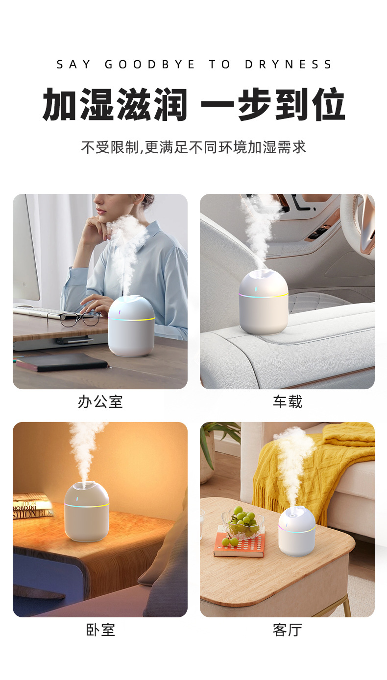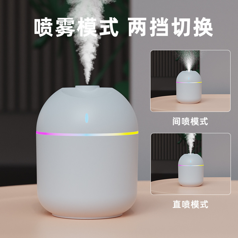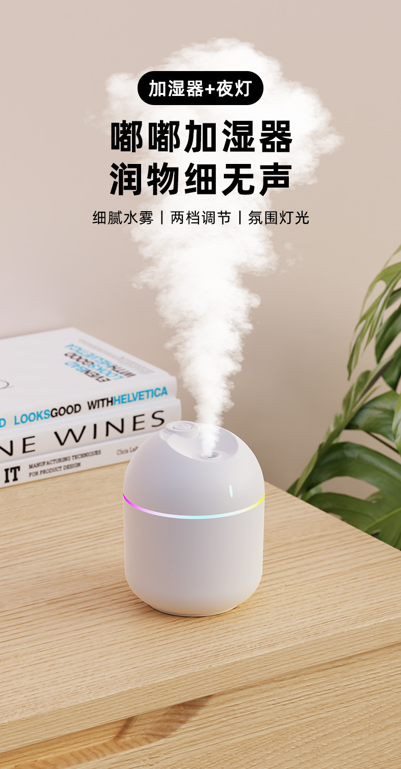 跨境新款迷你家用桌面usb车载喷雾器宿舍卧室氛围灯低音补水加湿