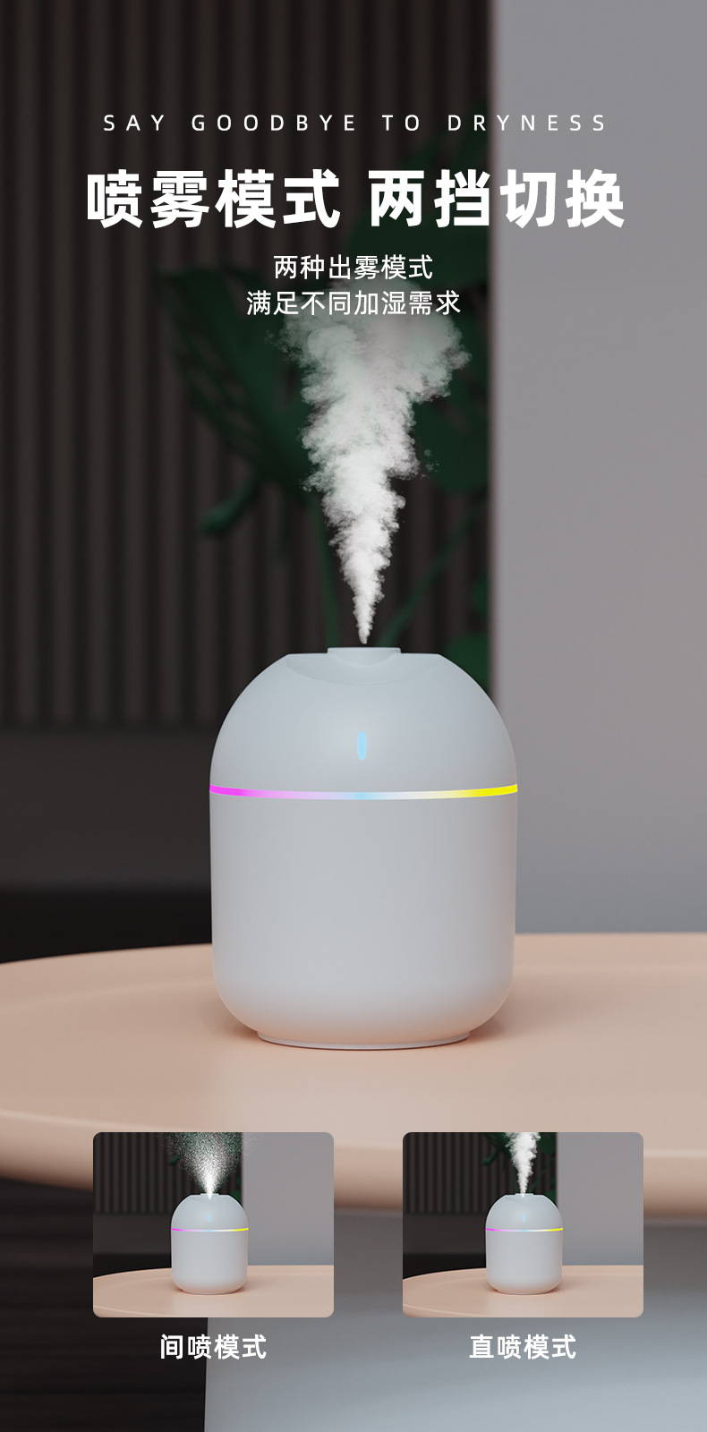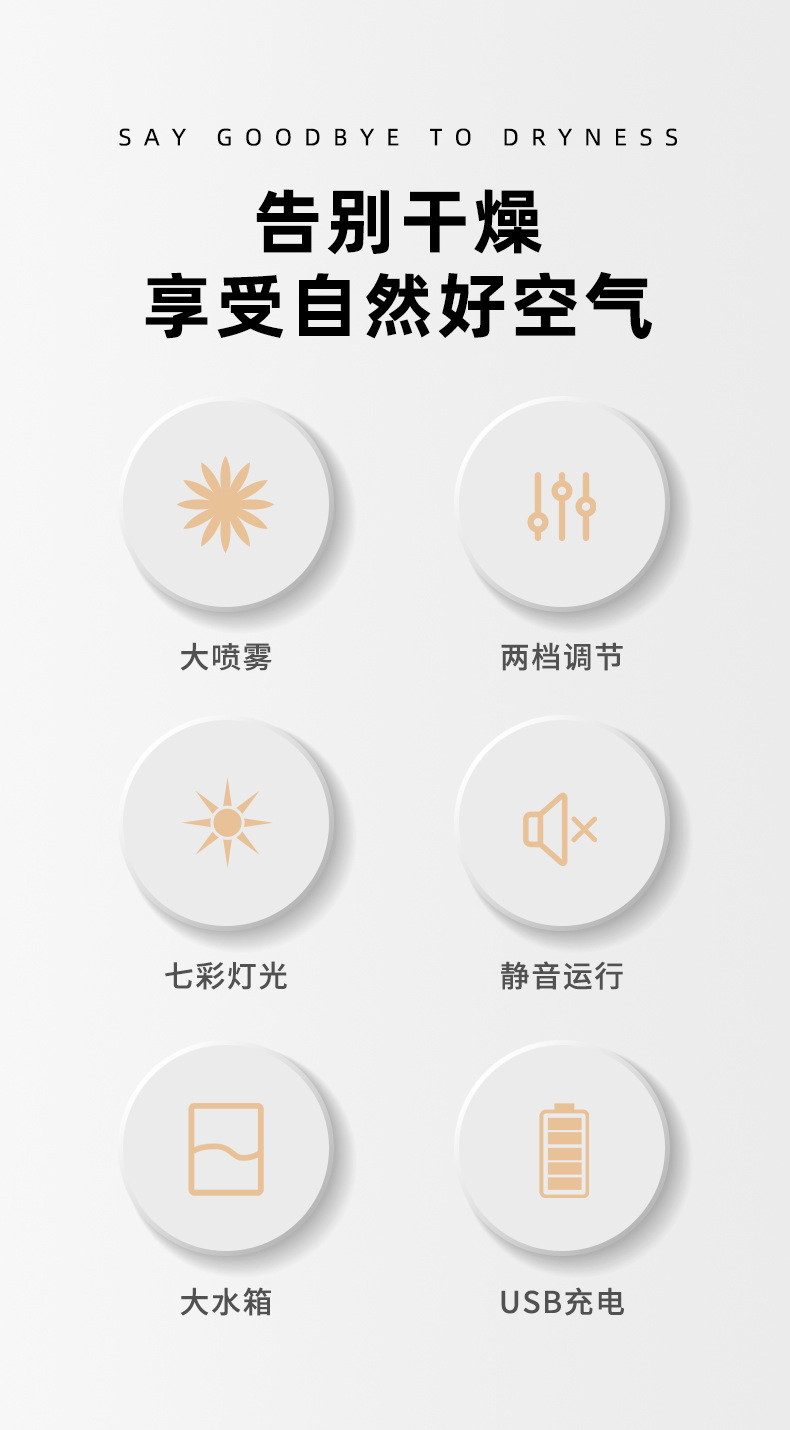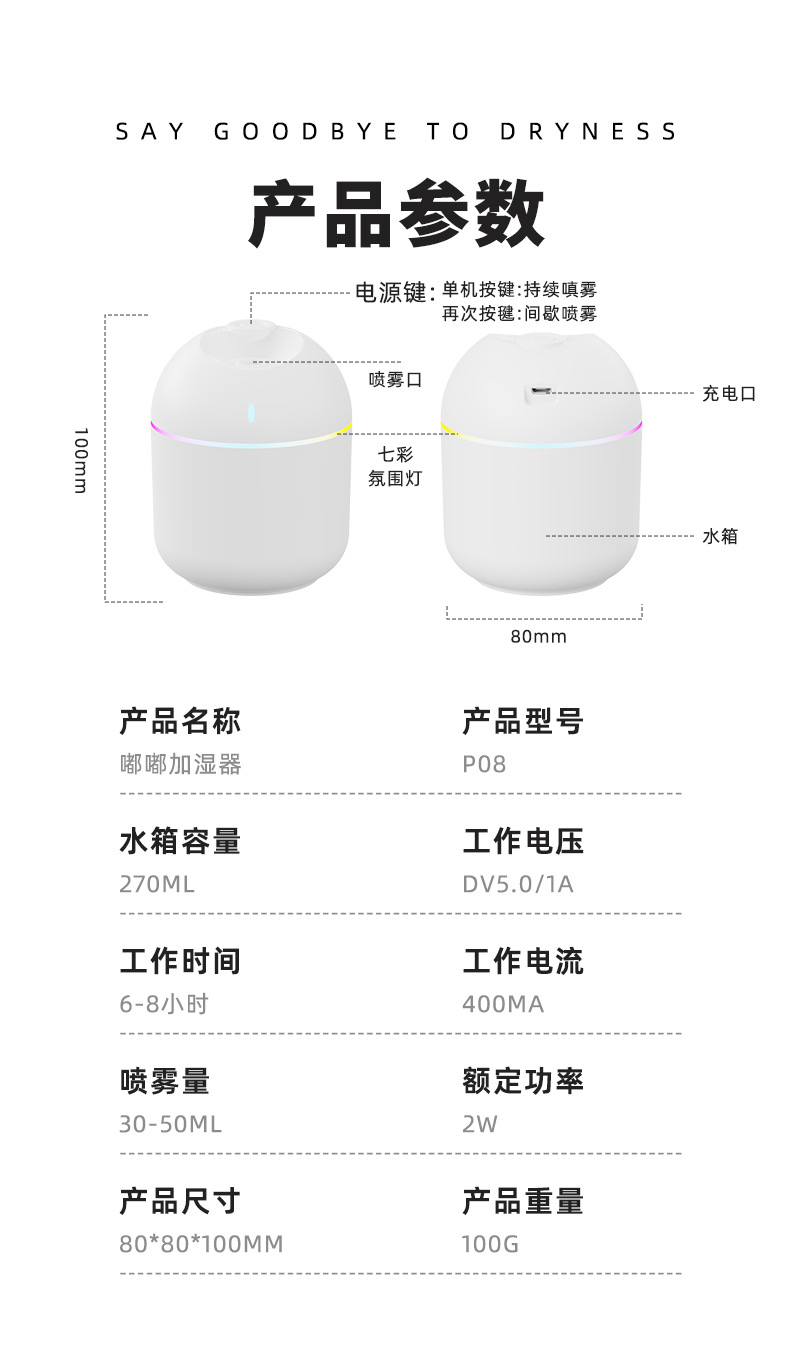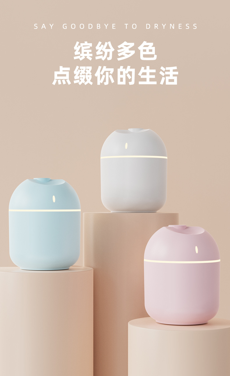 跨境新款迷你家用桌面usb车载喷雾器宿舍卧室氛围灯低音补水加湿