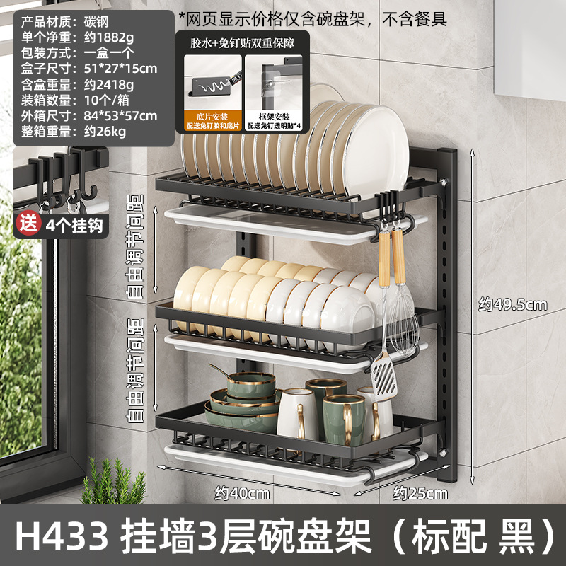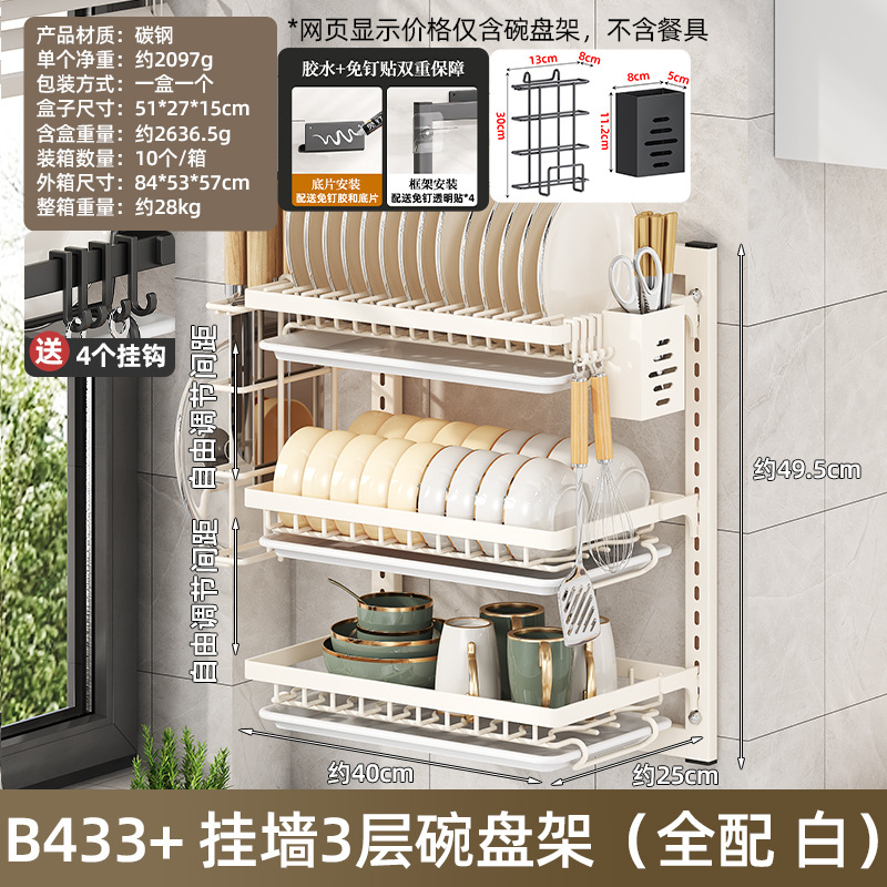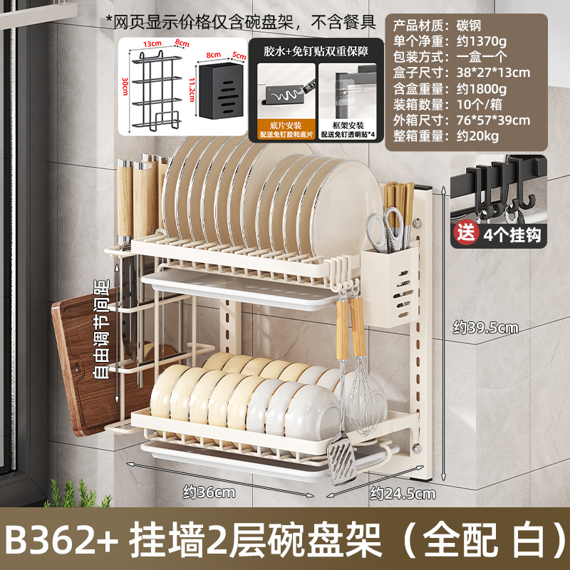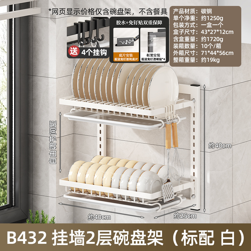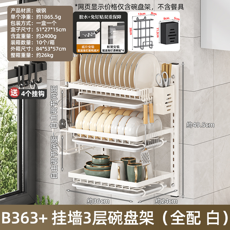 免打孔碗碟碗盘架沥水架壁挂式厨房置物架水槽餐具一体碗柜收纳架