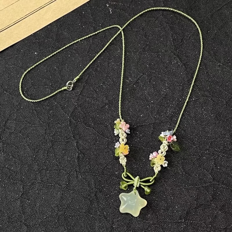 饰品绳彩色小花朵手链套装饰品夏日冰透绿色水晶五角星吊坠项链女