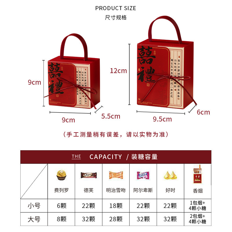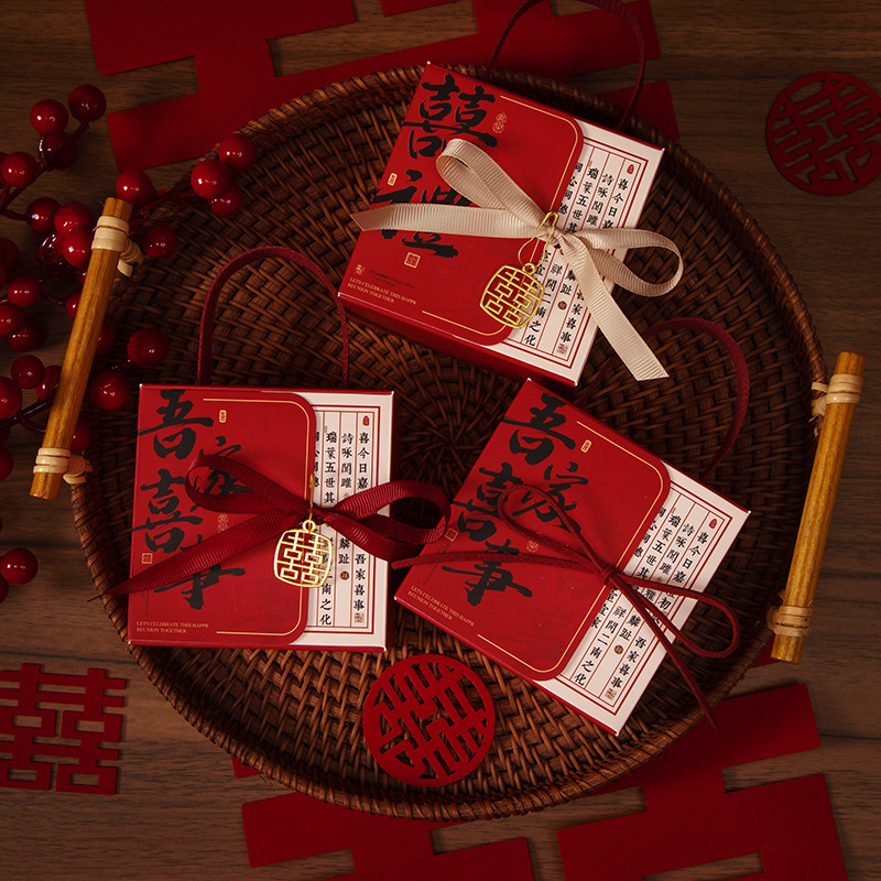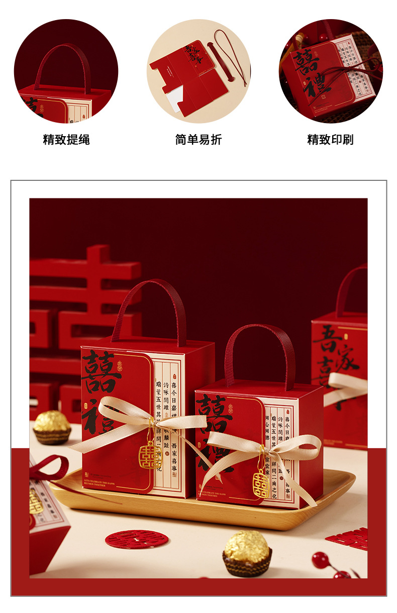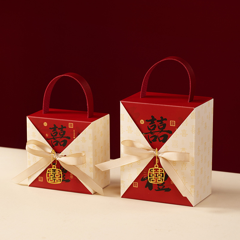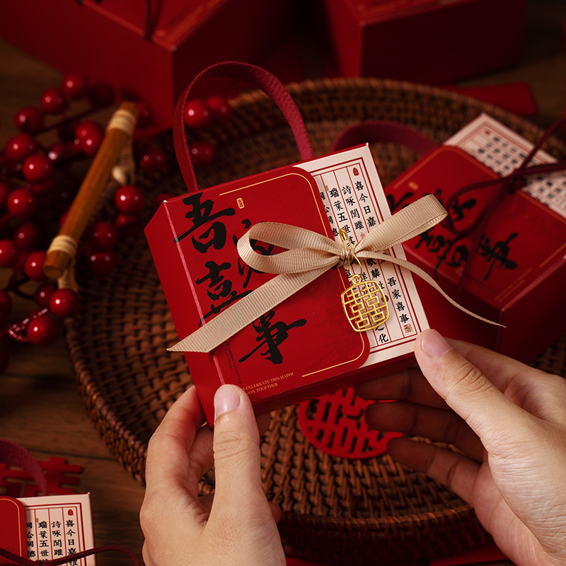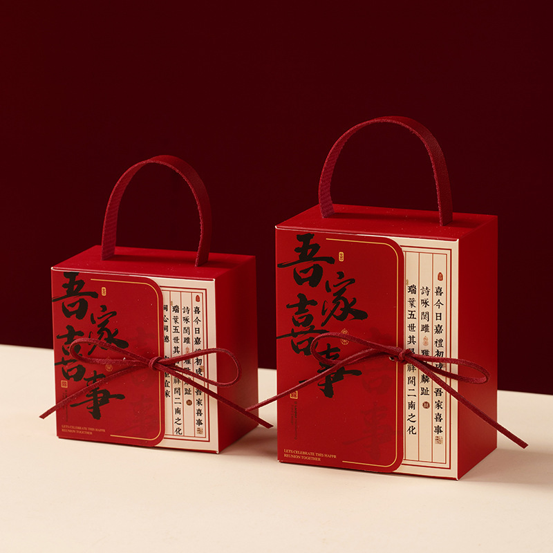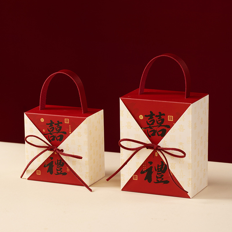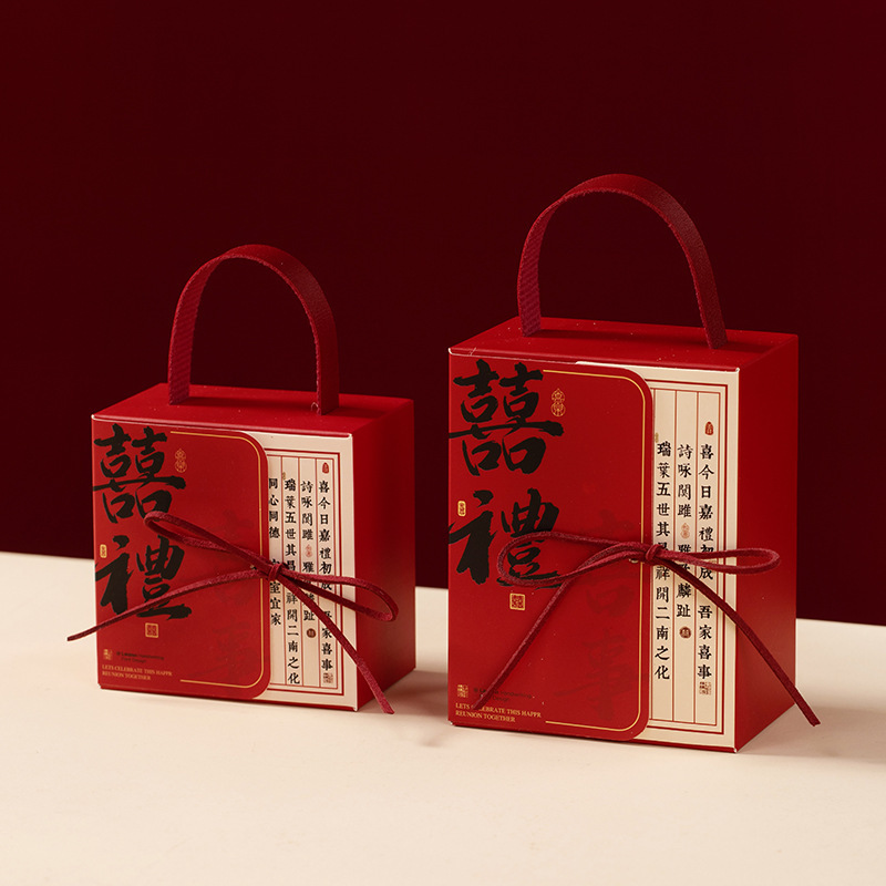 中式结婚手提喜糖纸盒创意婚礼订婚糖盒新中式伴手礼喜糖袋回礼盒