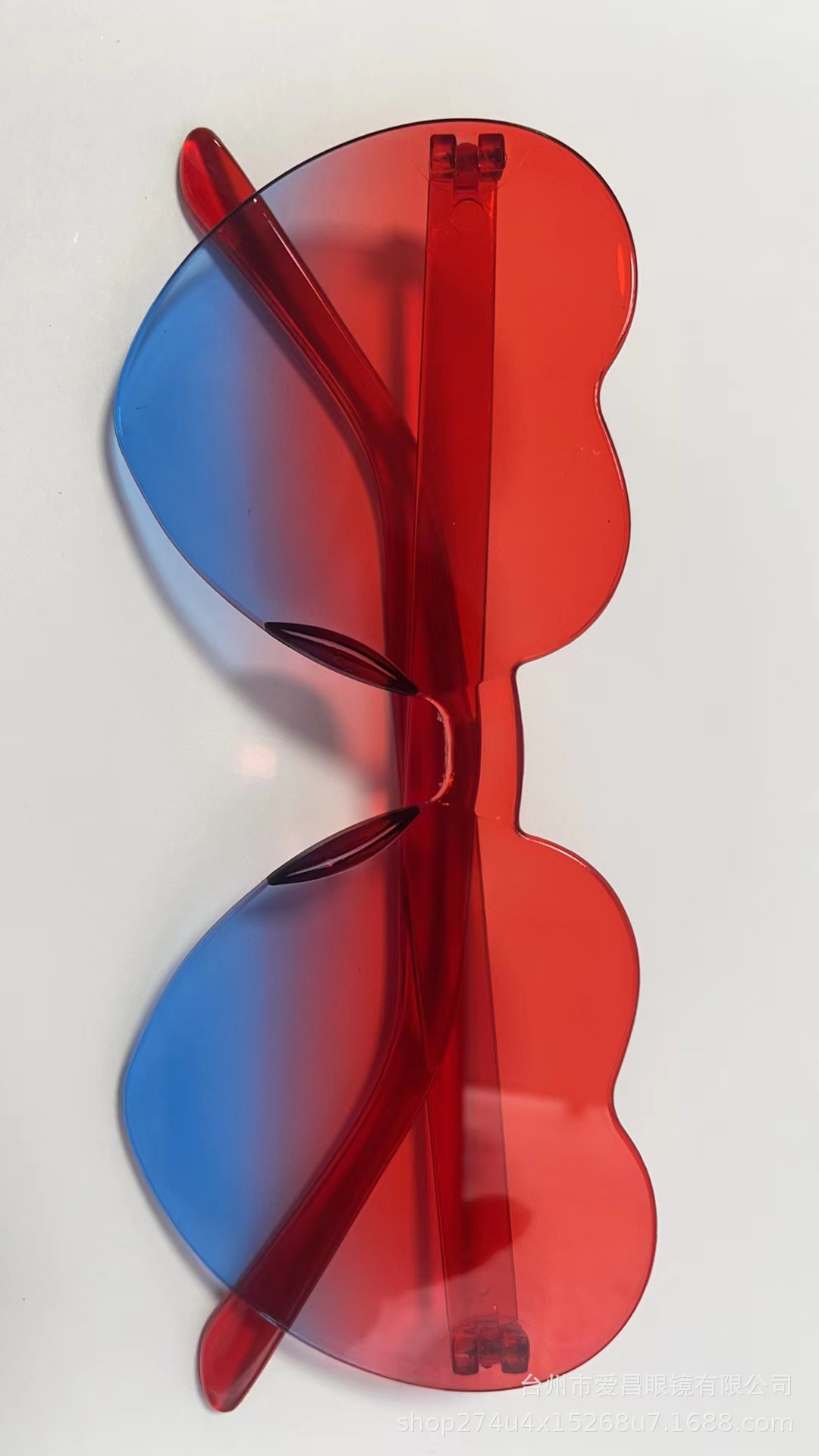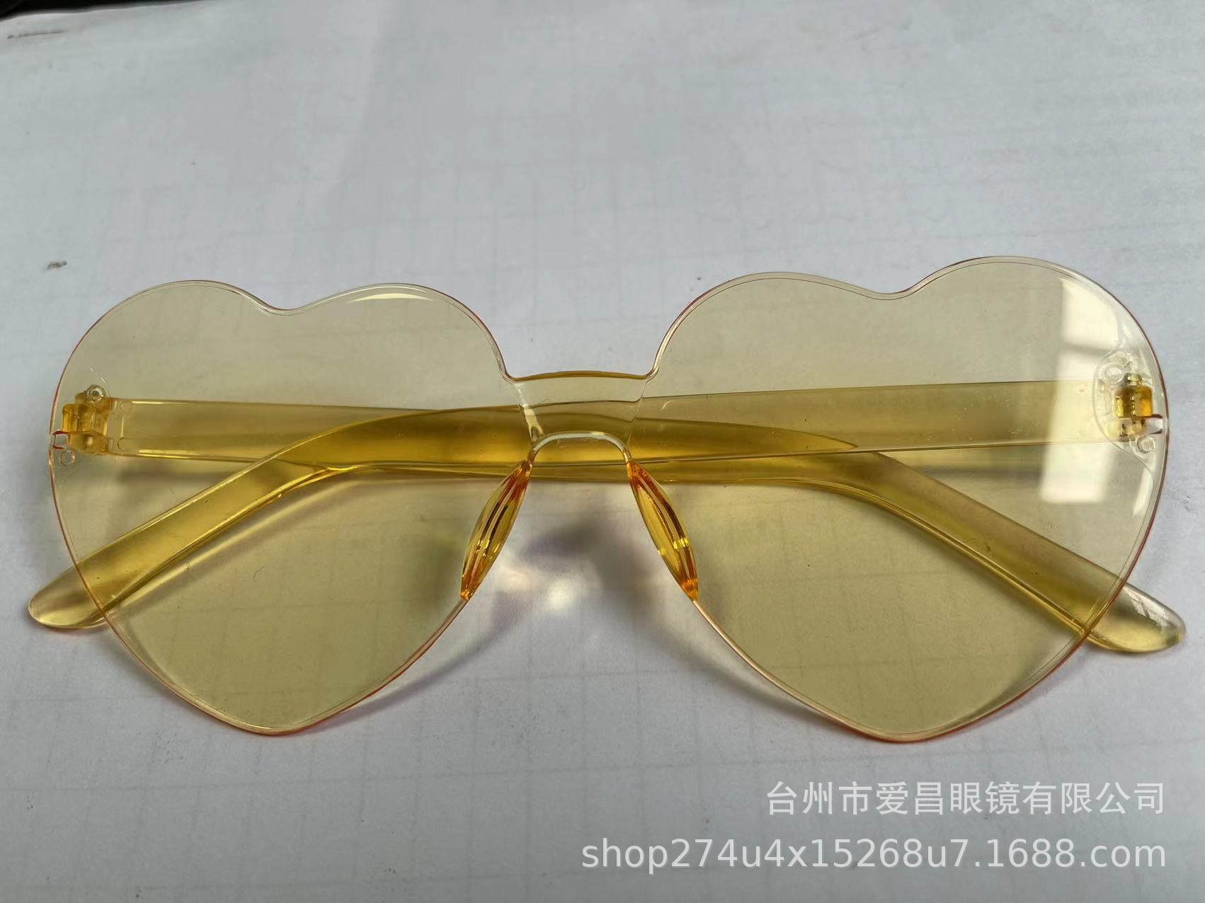 心型眼镜工厂爱心眼镜糖果果冻色无框心型连体眼镜 炫目色彩眼镜