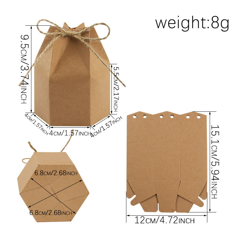 新款糖果盒 牛皮纸六边形状喜糖盒 派对礼品包装盒 蒙古包糖果盒