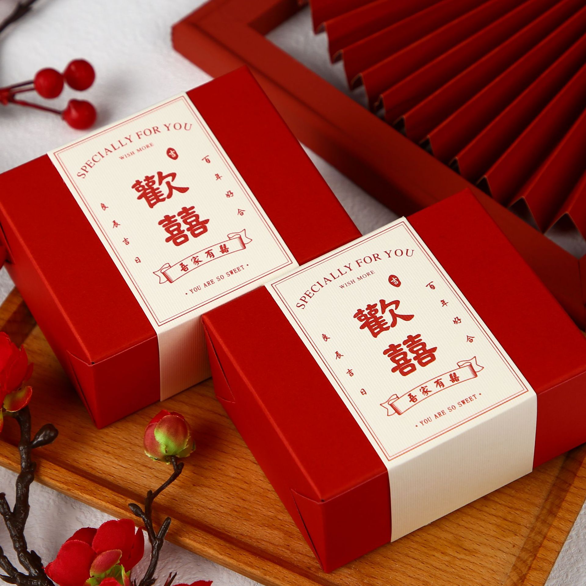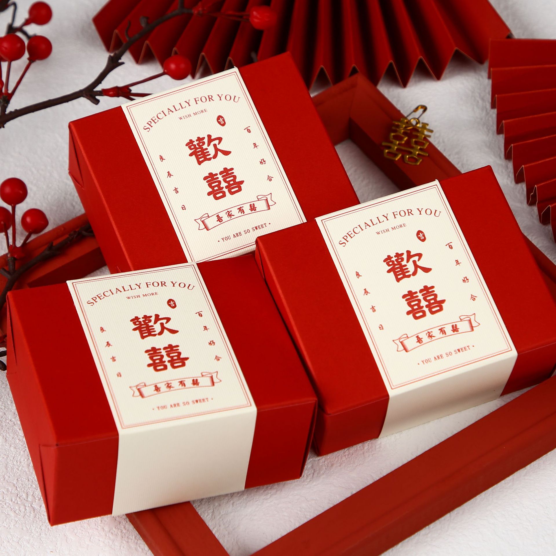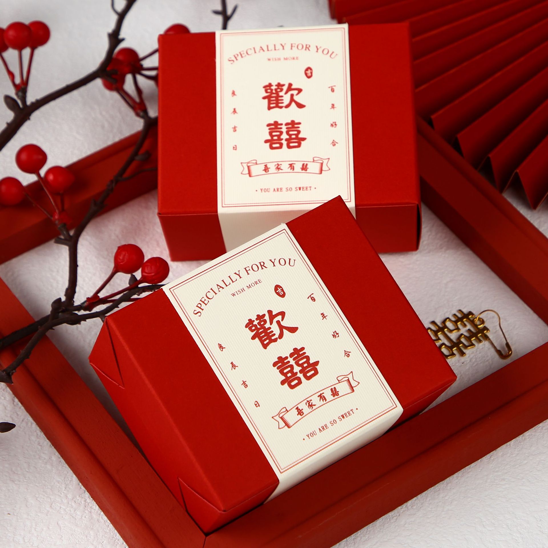 热销款红色新中国风式婚礼浪漫可爱迷你回礼盒简约可装烟喜糖盒子