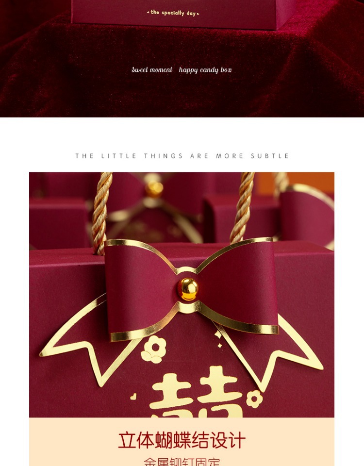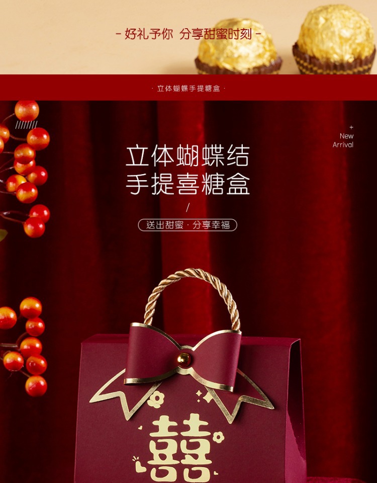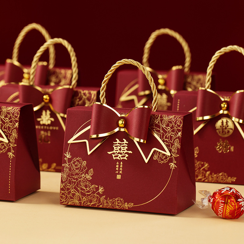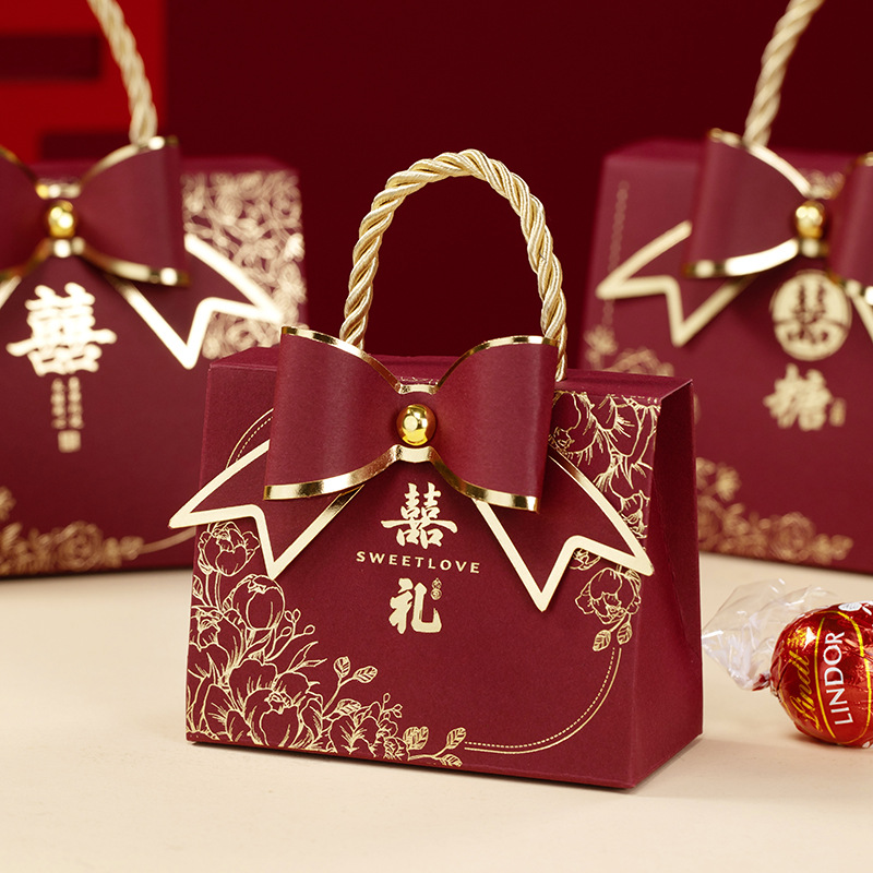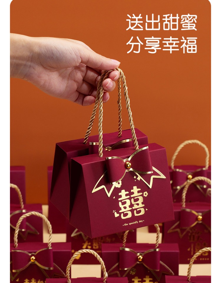 新款喜糖盒婚礼包装回礼盒可手提喜糖盒喜糖包装袋回礼包装盒空盒