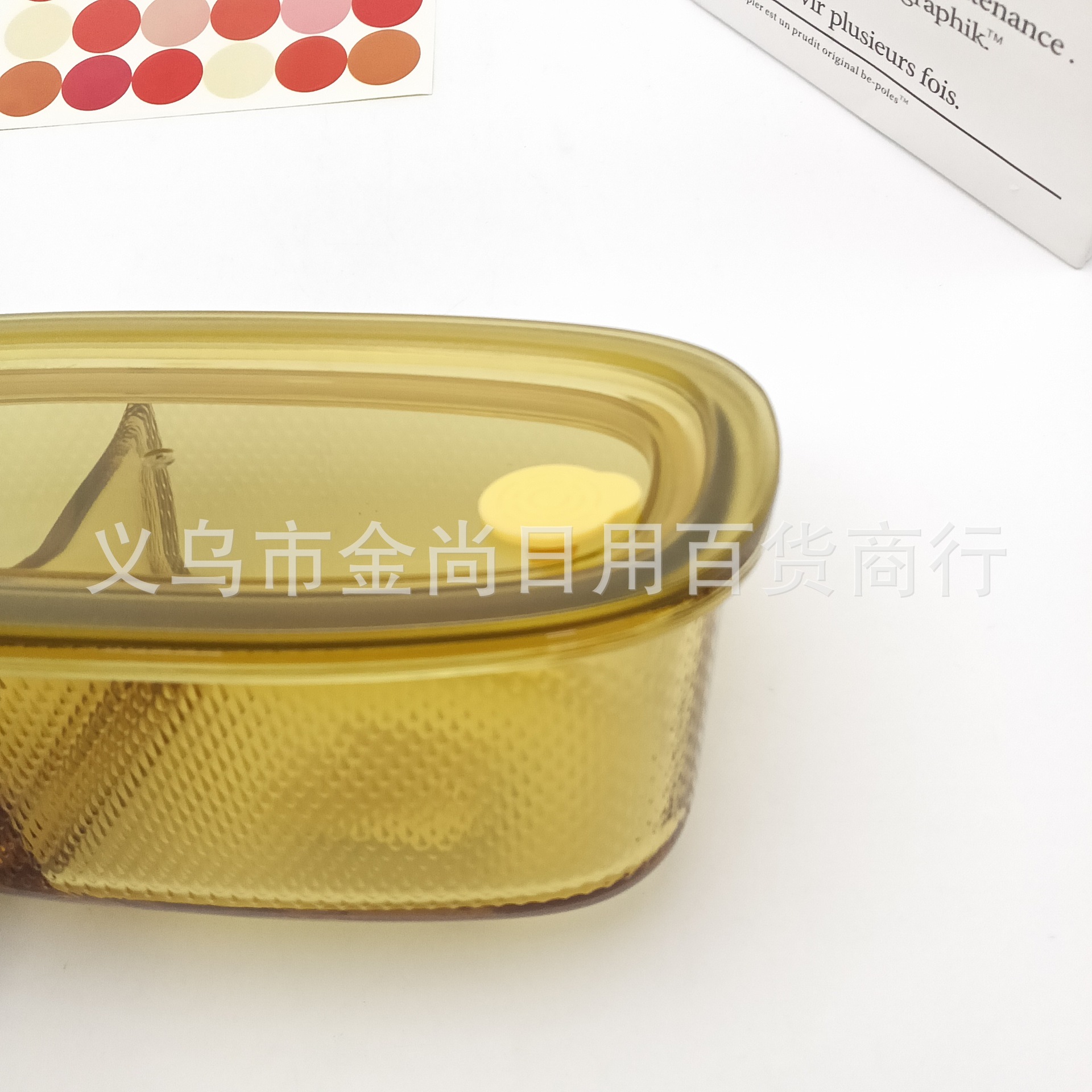 琥珀色有分隔椭圆水果盒保鲜盒上班族玻璃饭盒可微波炉加热学生