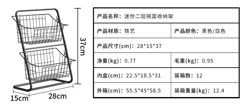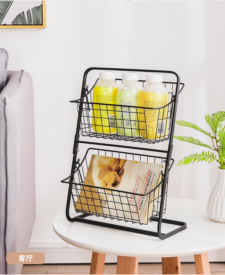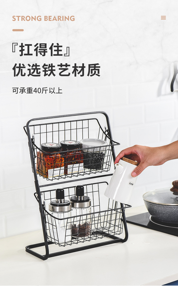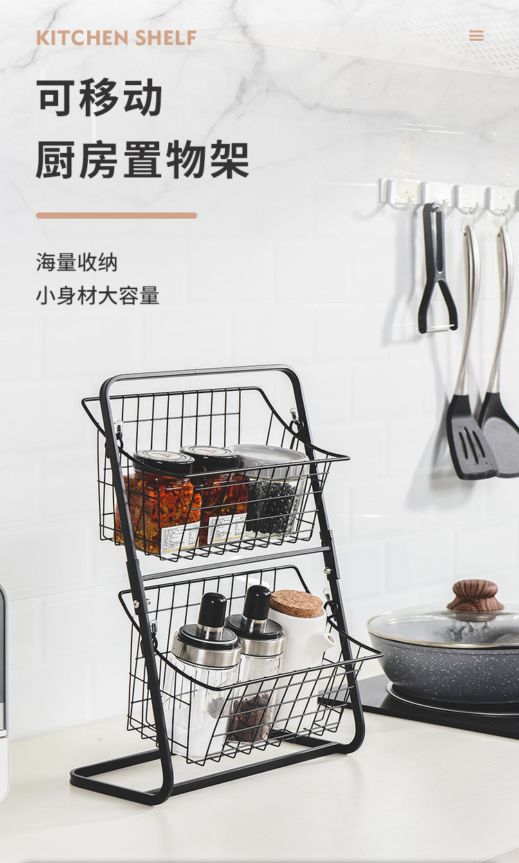 跨境亚马逊厨房双层收纳架橱柜台面葱姜蒜收纳篮蔬果置物架零食架