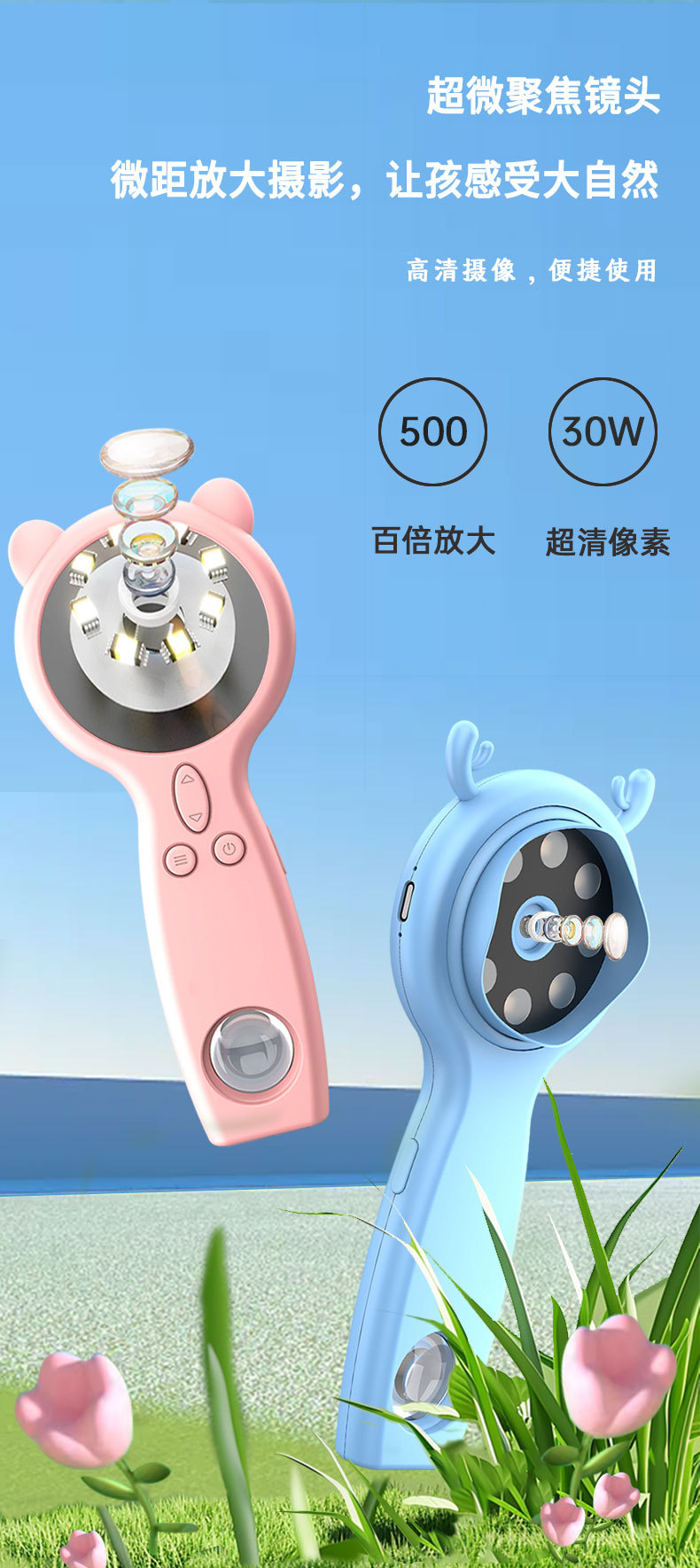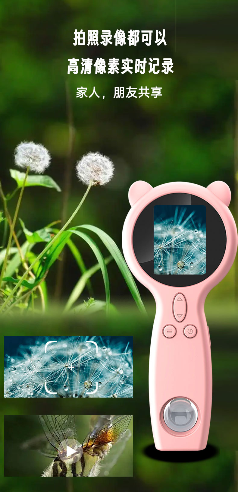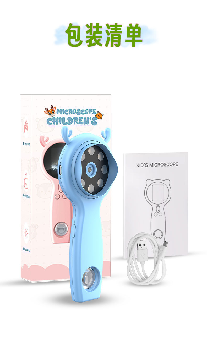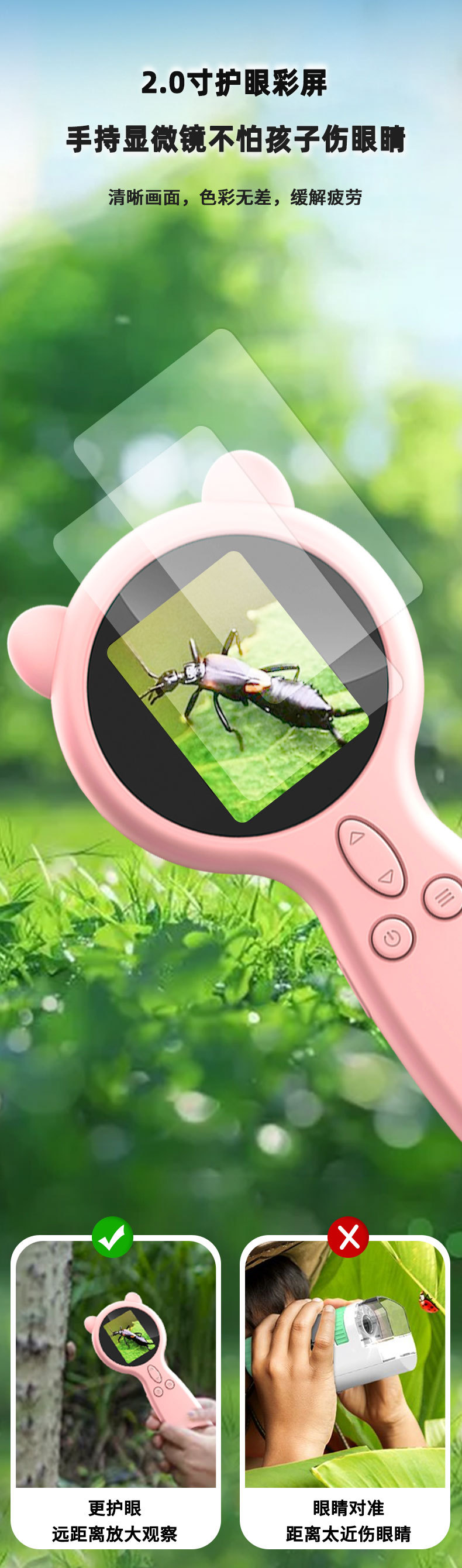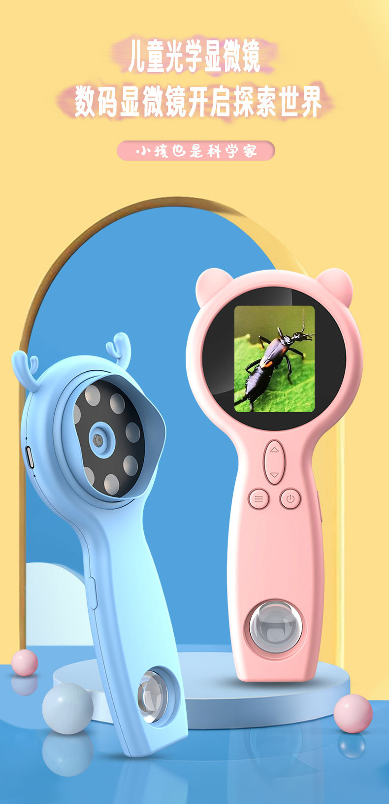 儿童显微镜2寸高清屏带LED灯科学探索仪器科学教育玩具跨境批发