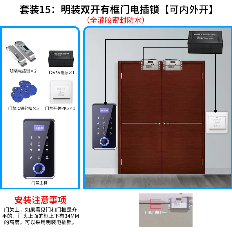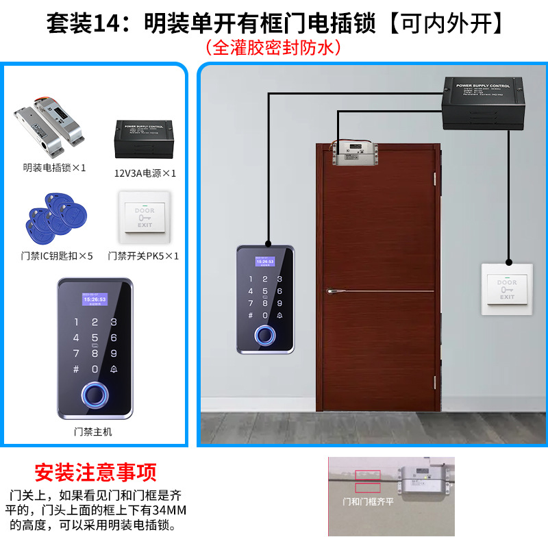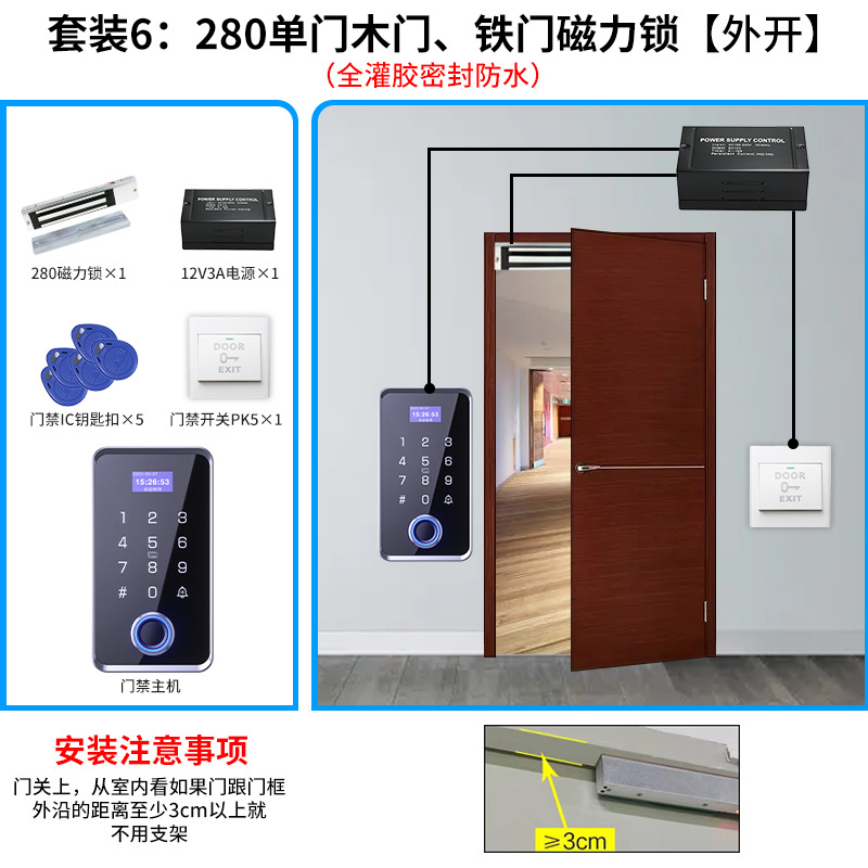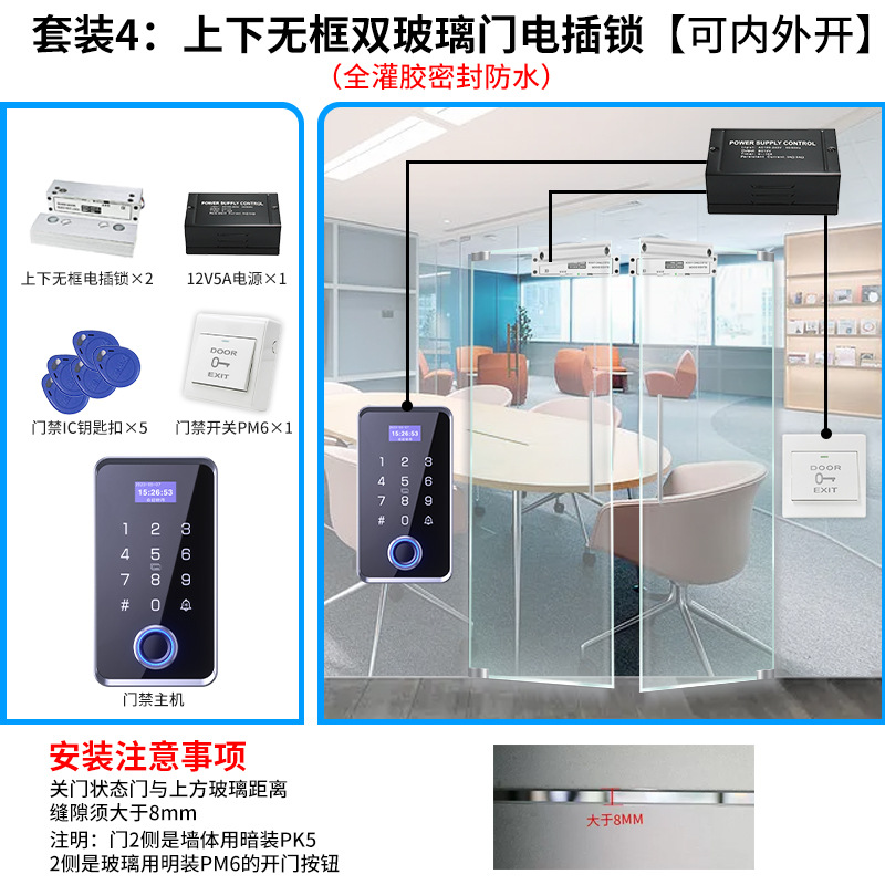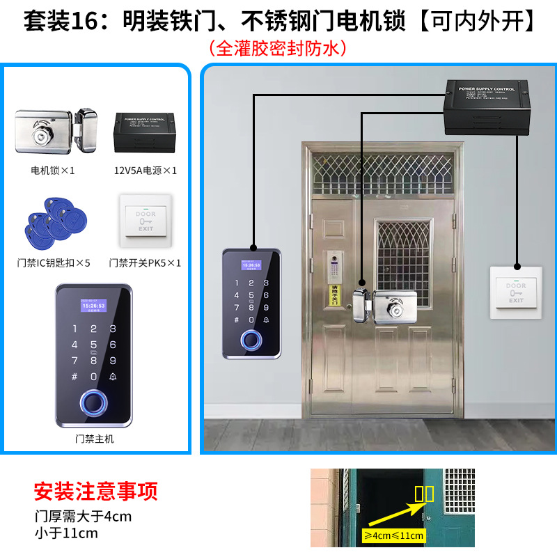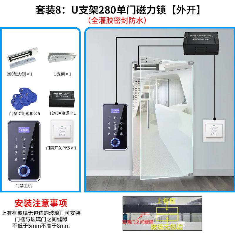 防水指纹识别门禁系统一体机小程序蓝牙刷卡密码电插锁磁力锁套装