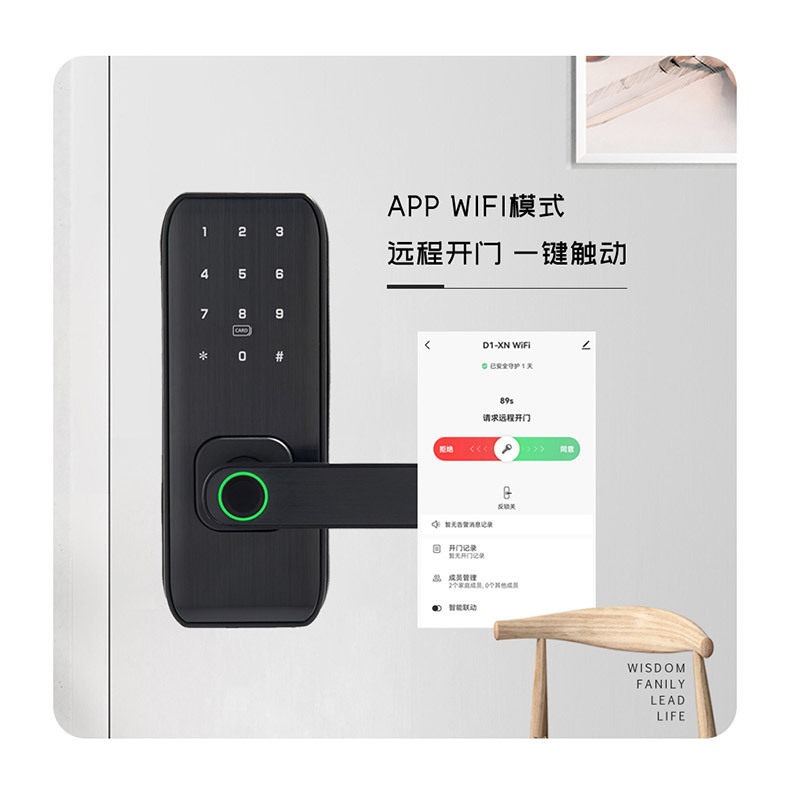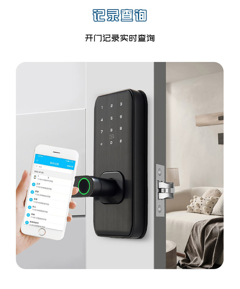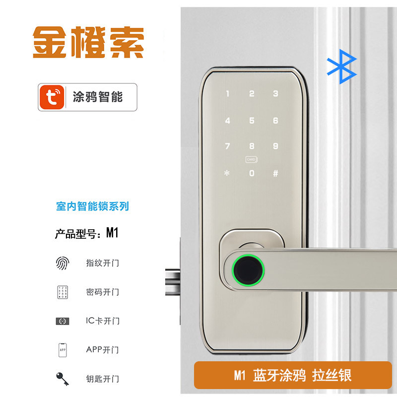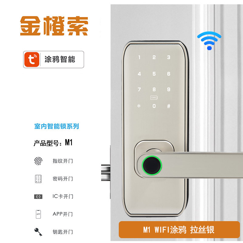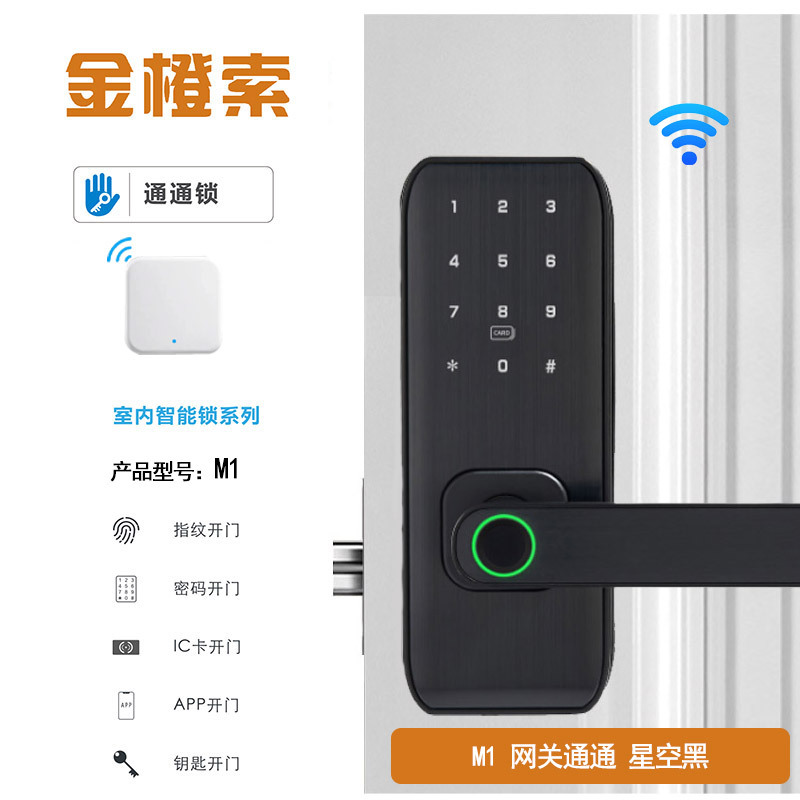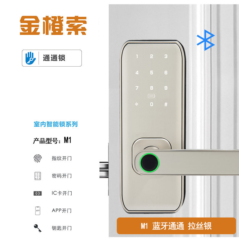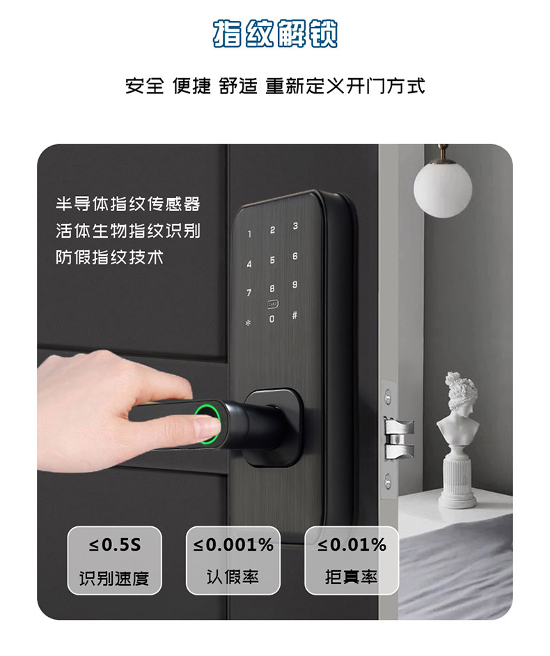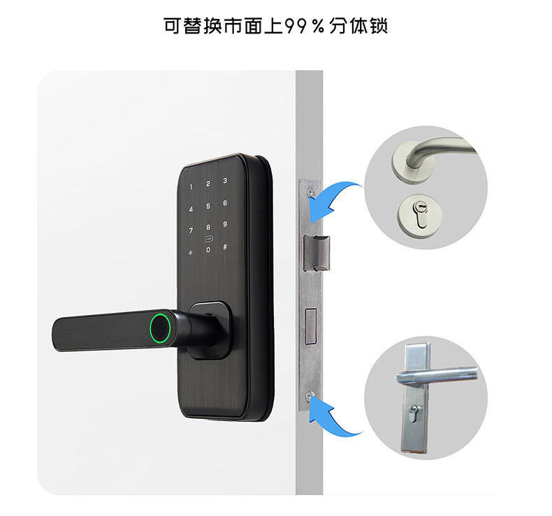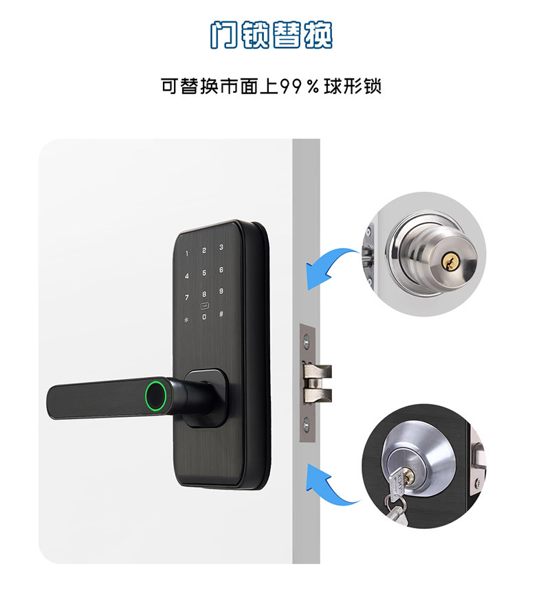 免开孔智能电子家用室内木门办公公寓指纹锁单舌球形涂鸦通通锁