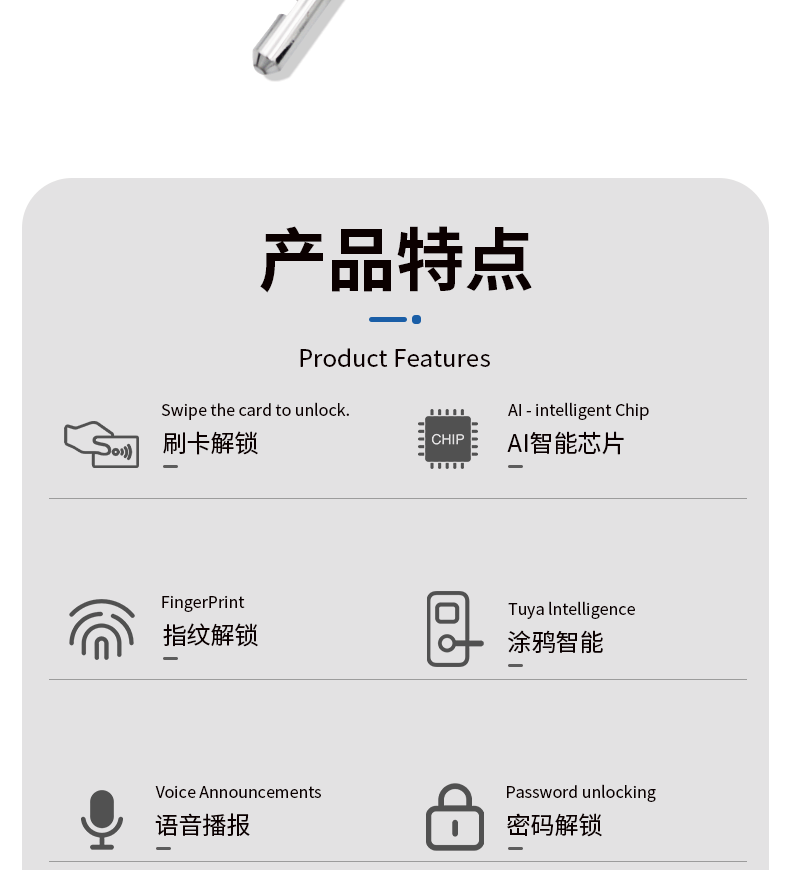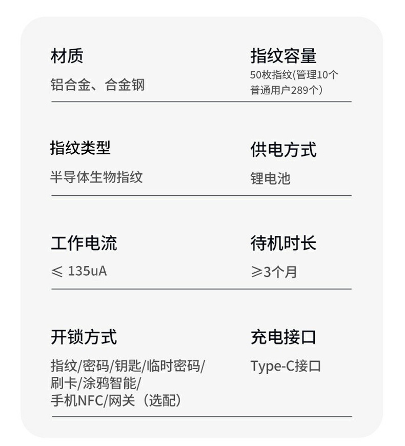 智能指纹锁半导体指纹识别密码锁 智能锁钥匙锁智能家用U型指纹锁