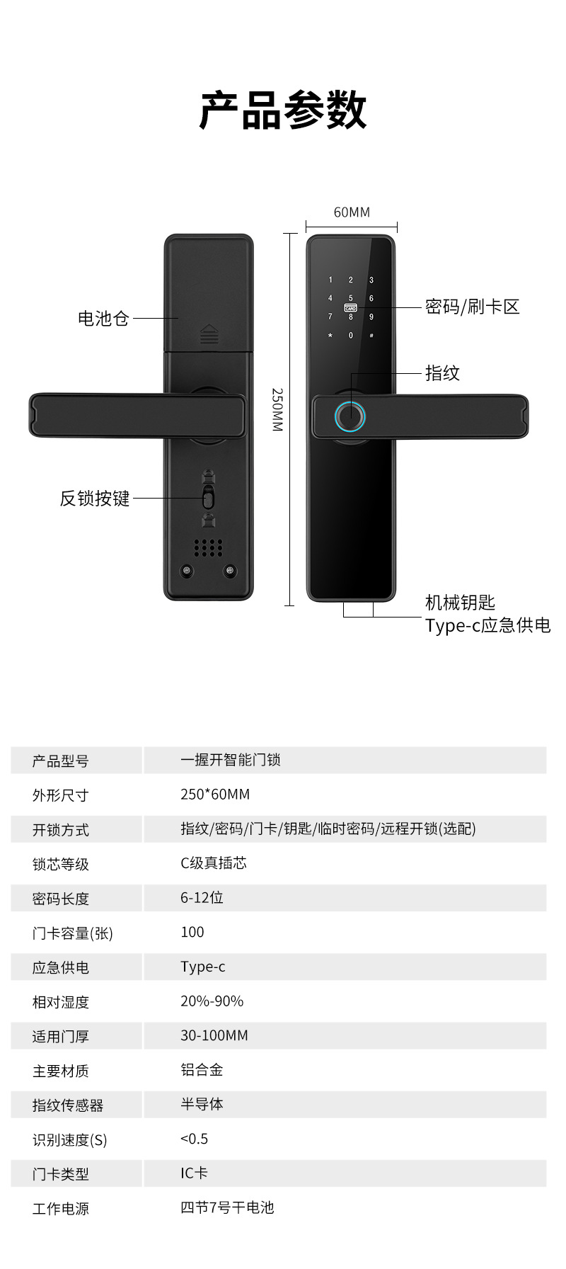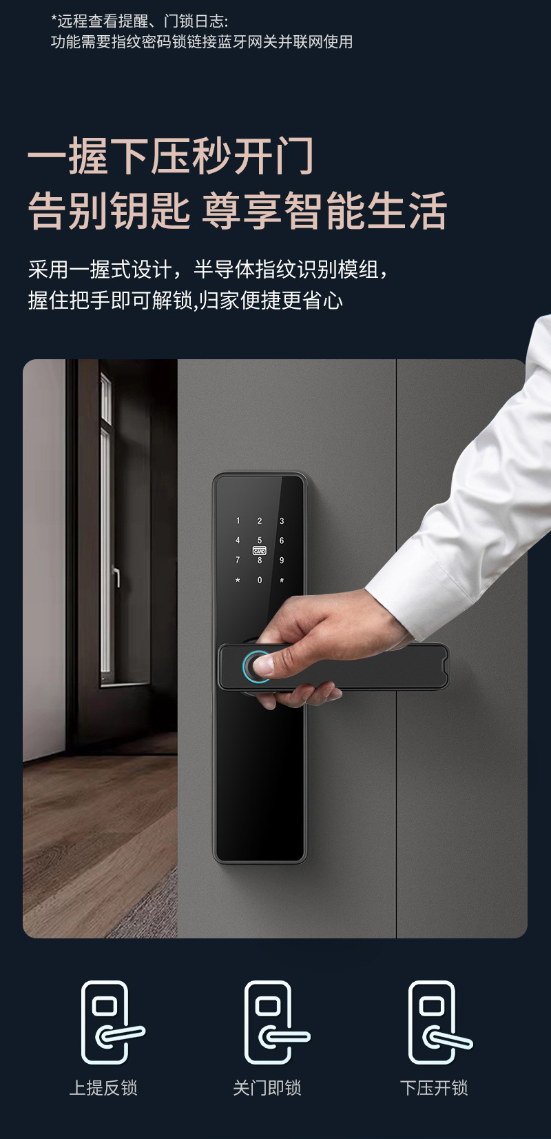 办公室木门指纹锁涂鸦通通外贸智能锁室内门密码锁出租房间卧室锁