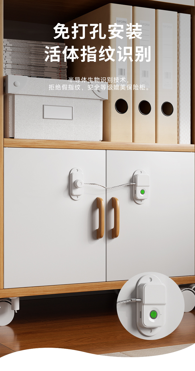 指纹锁链条免打孔智能锁防护电子锁柜门办公柜窗户通风限位冰箱锁