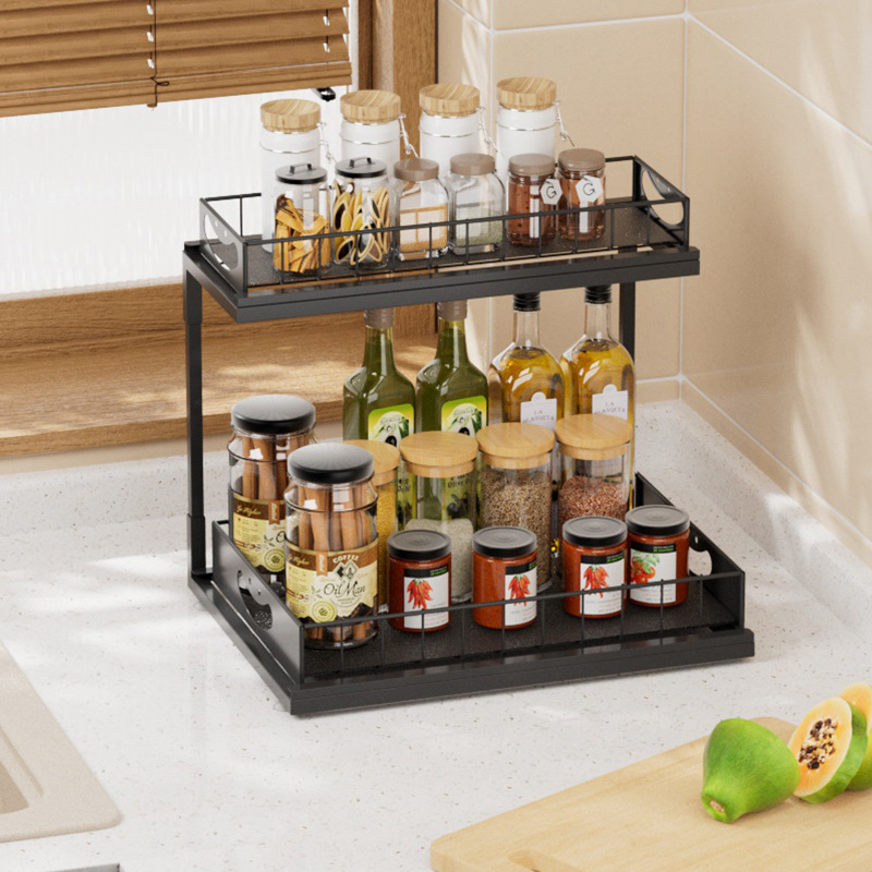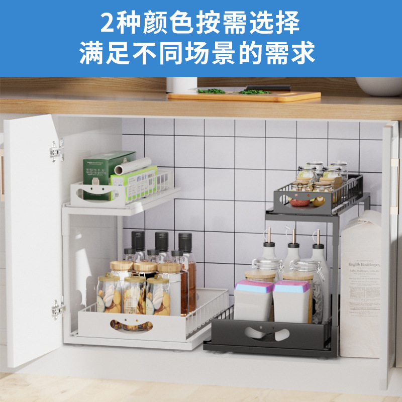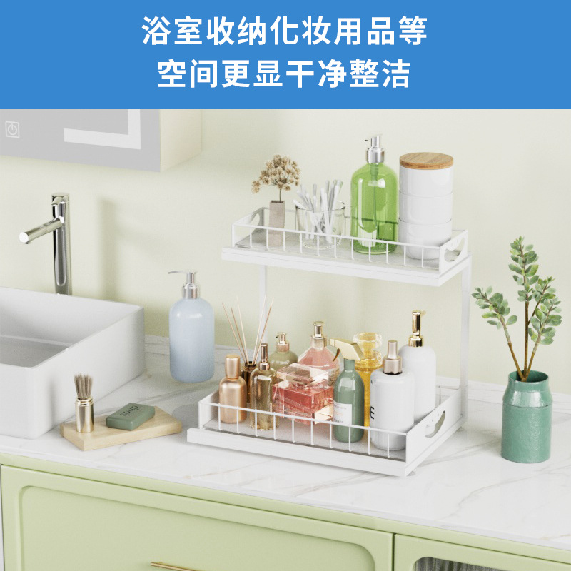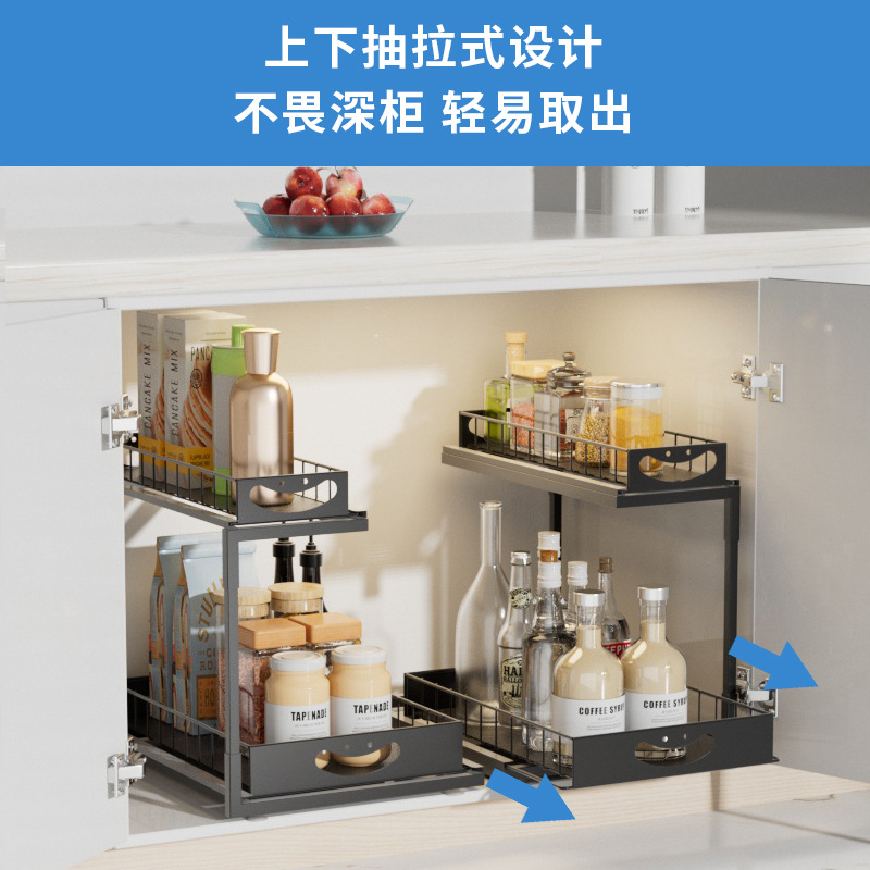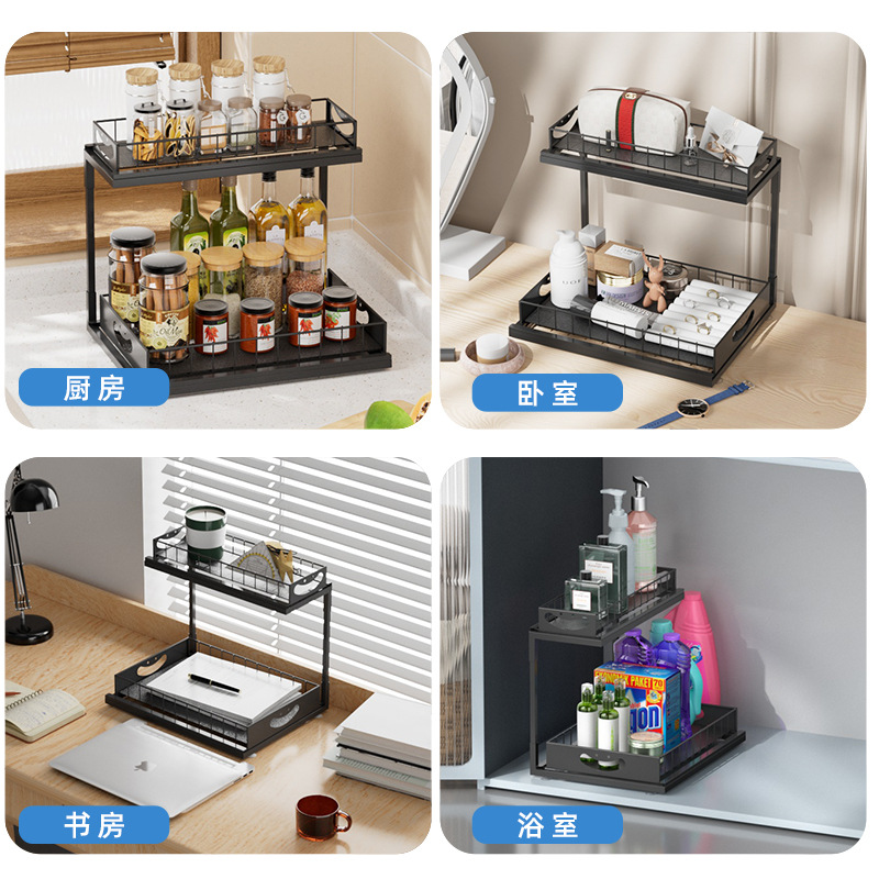 现货双层厨房置物架调料架抽拉式卫浴橱柜下水槽收纳架家用整理架