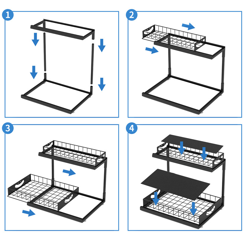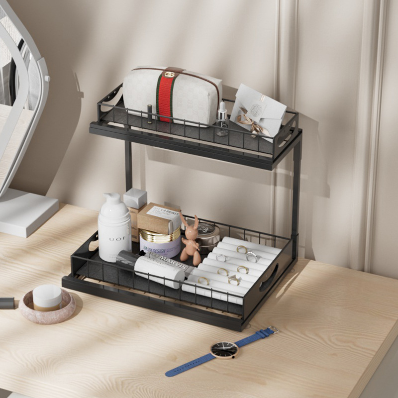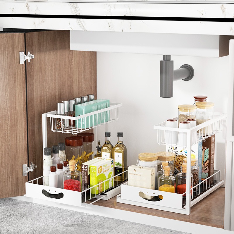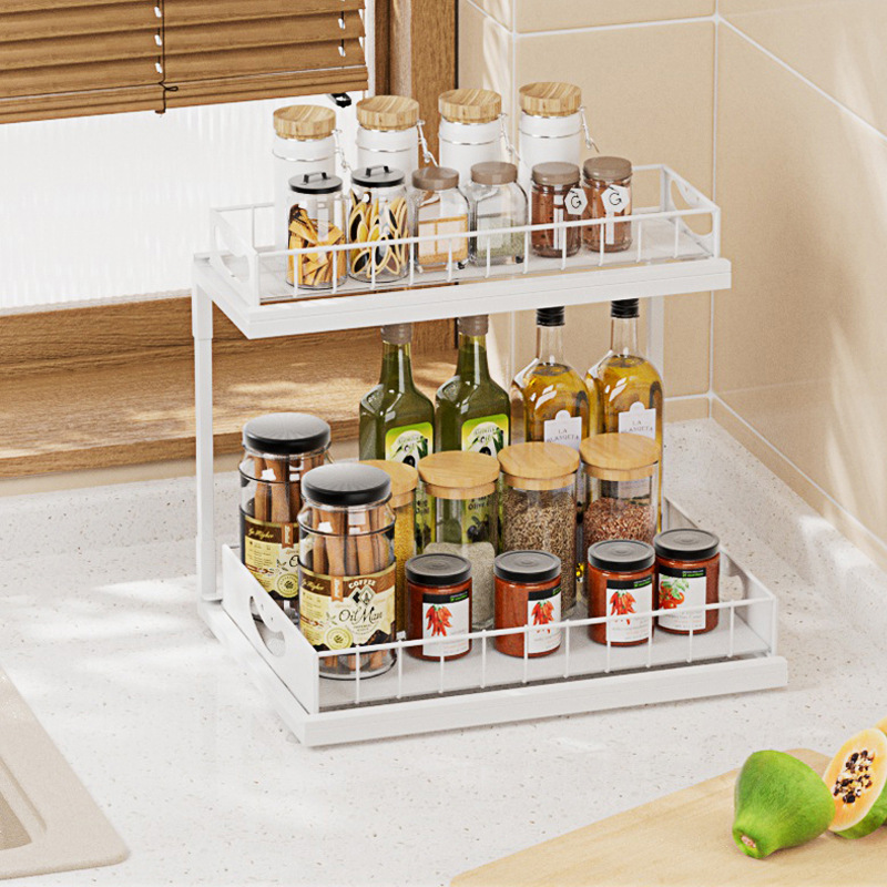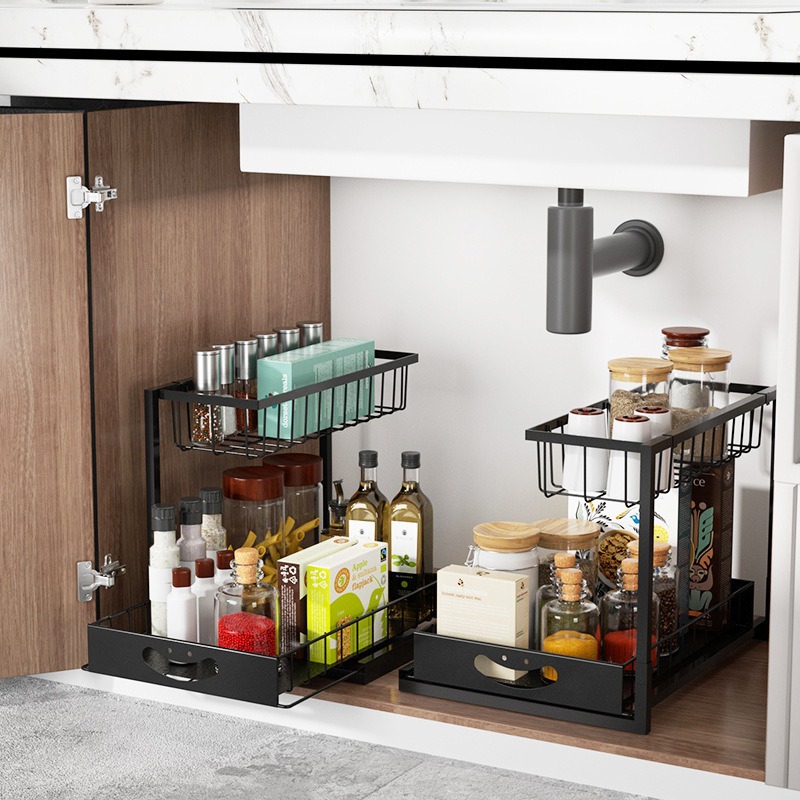 现货双层厨房置物架调料架抽拉式卫浴橱柜下水槽收纳架家用整理架