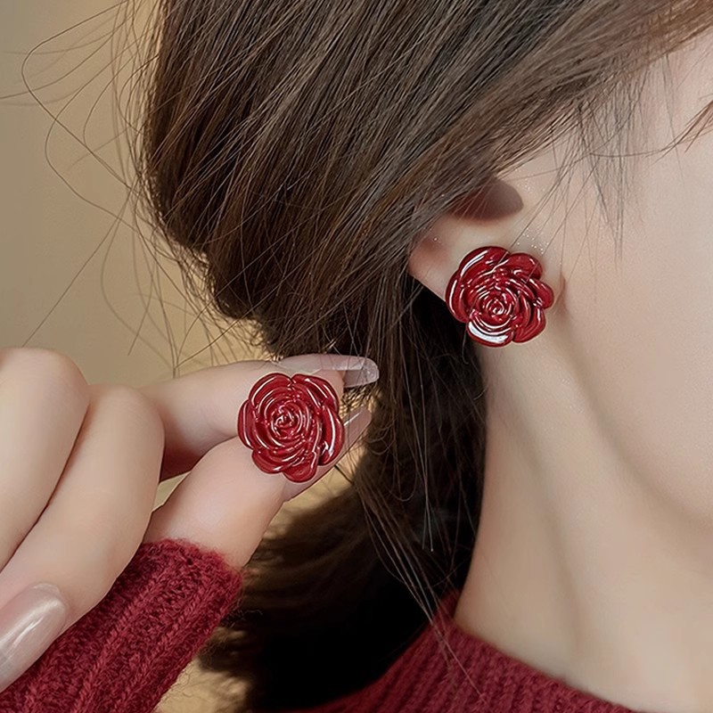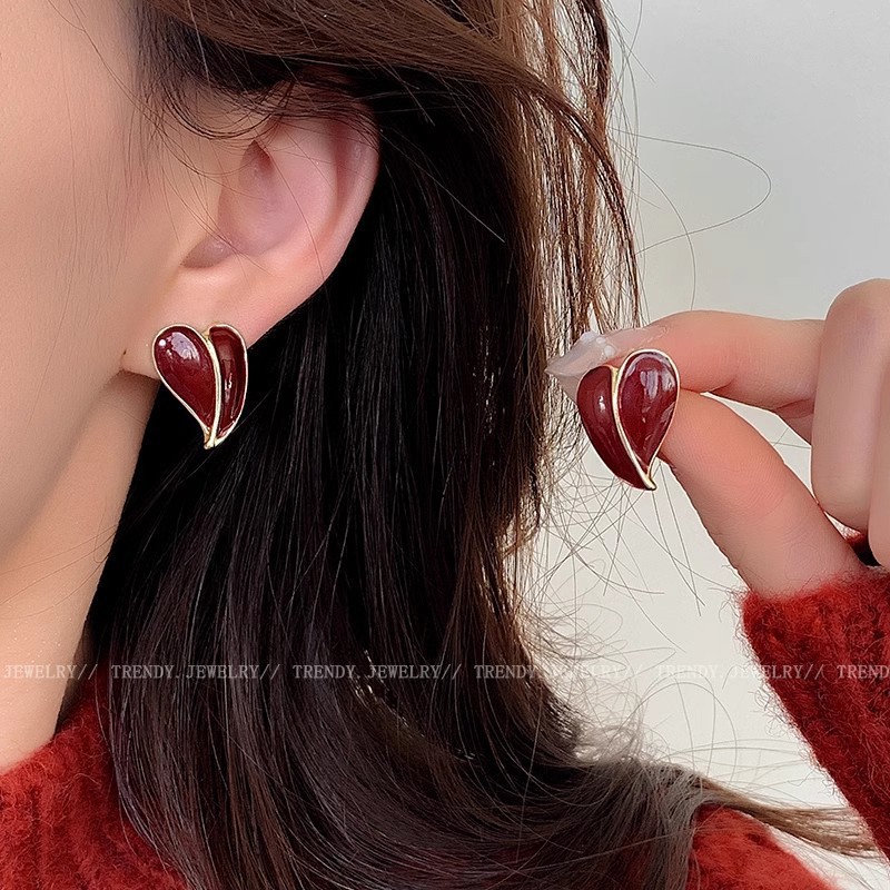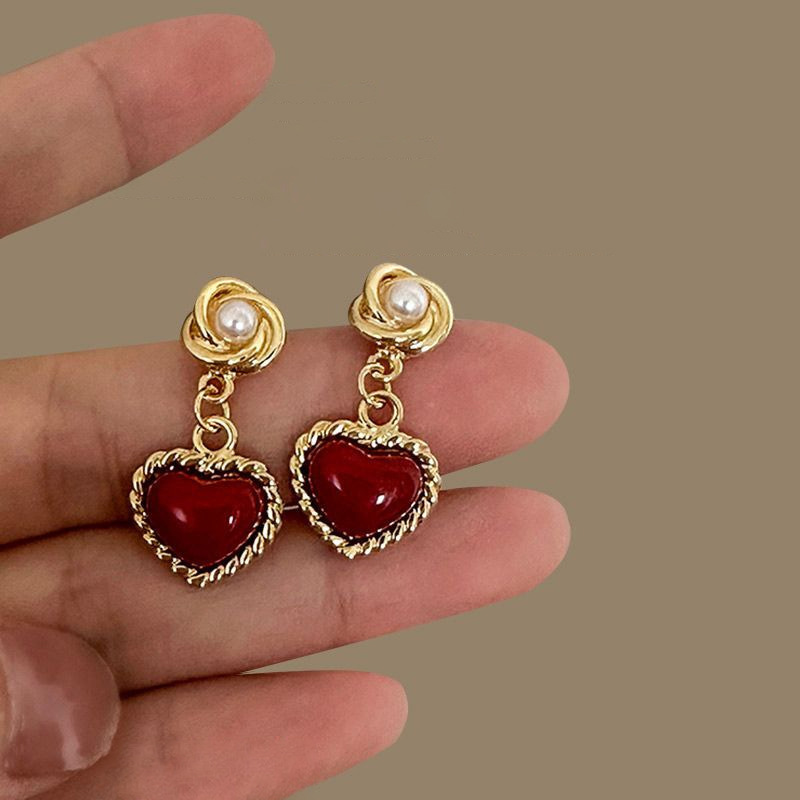 安可拉酒红色复古港风耳夹无耳洞女气质高级感珍珠耳环耳钉耳饰品
