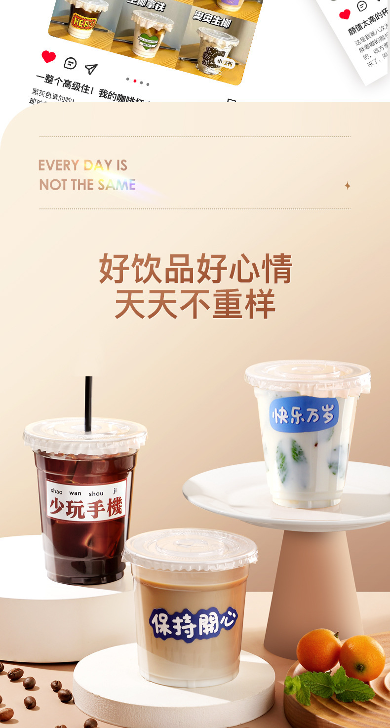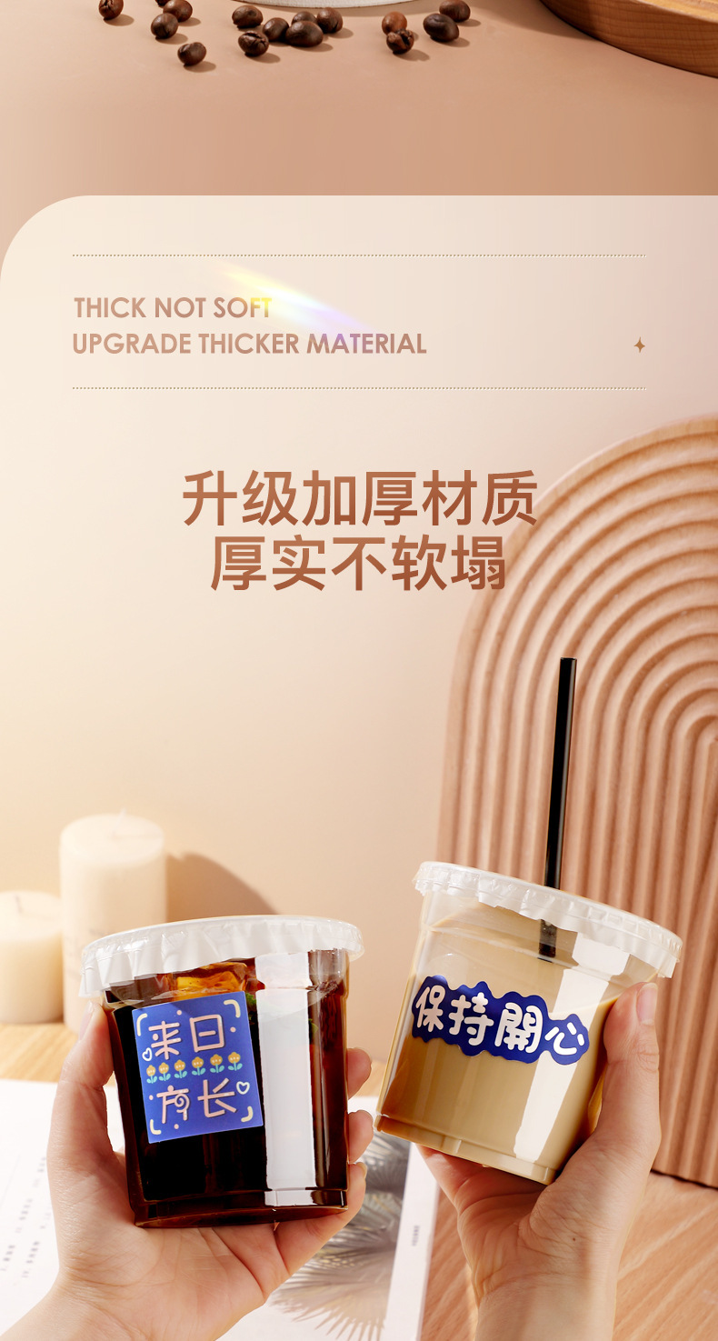 一次性咖啡杯子自制饮料饮品网红pet塑料杯打包外带带盖DIY奶茶杯