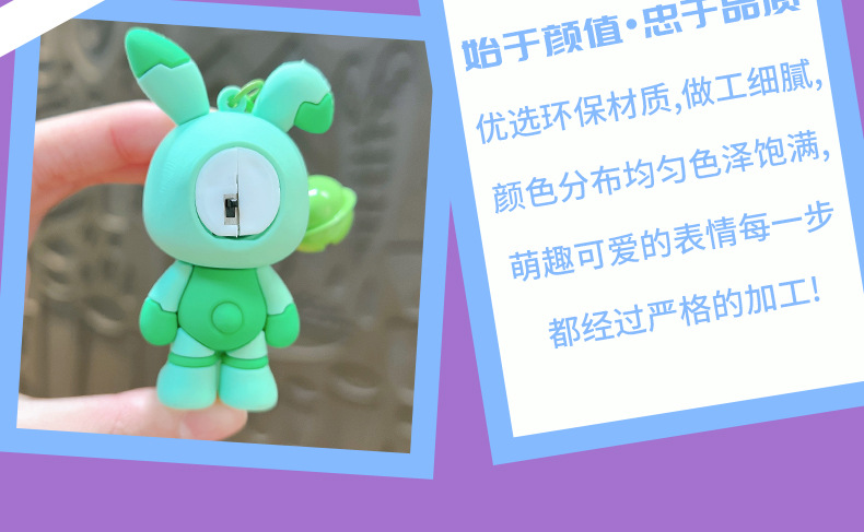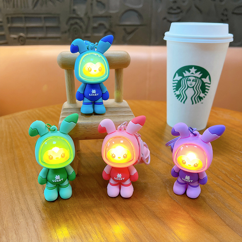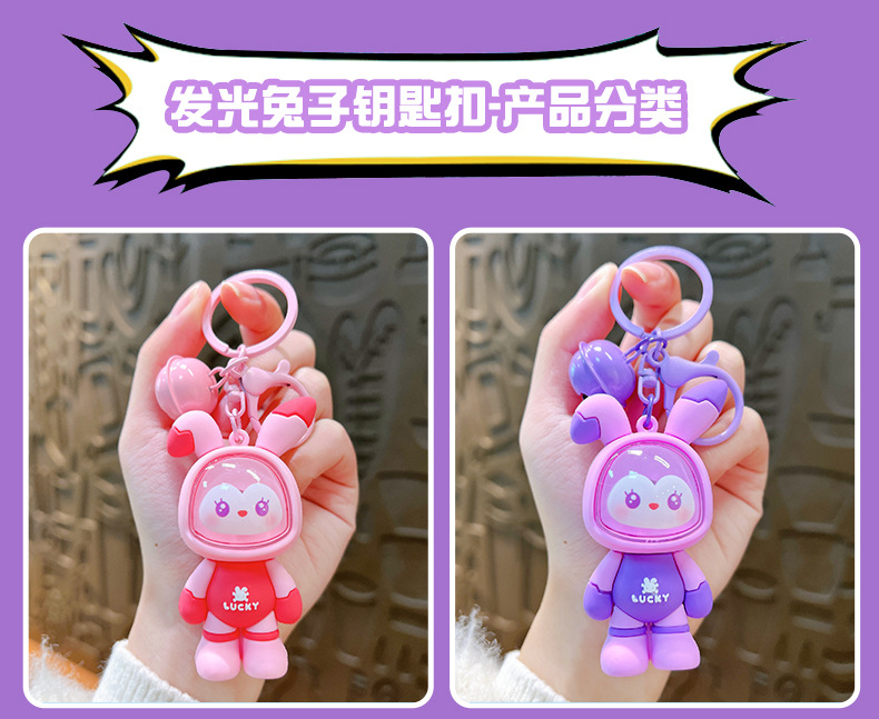 创意电子亮灯兔子钥匙扣可爱卡通汽车公仔书包挂件情侣小礼品批发