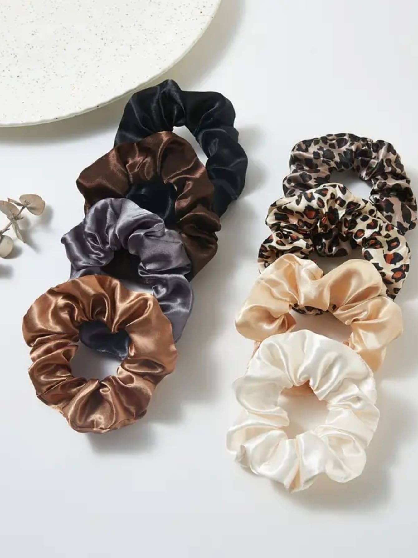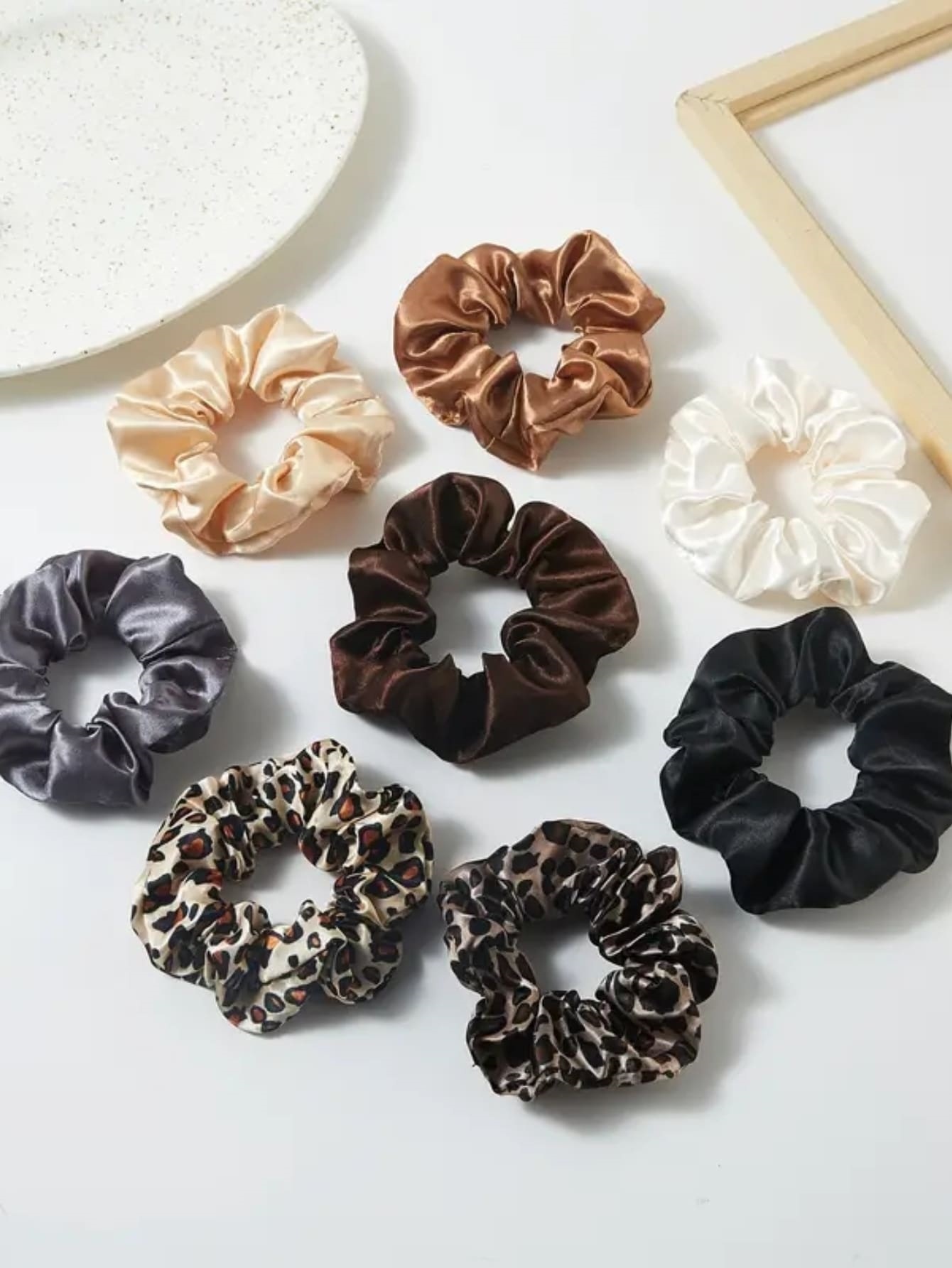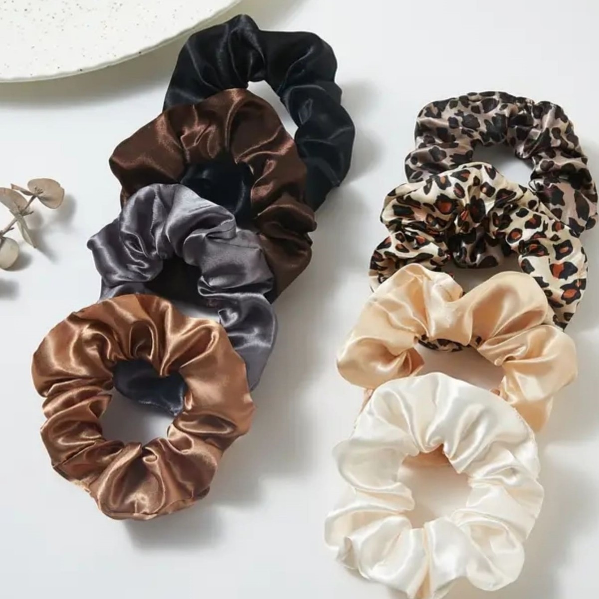 跨境热销发圈豹纹复古简约百搭法式色丁仿真丝绸缎大肠发圈发绳头