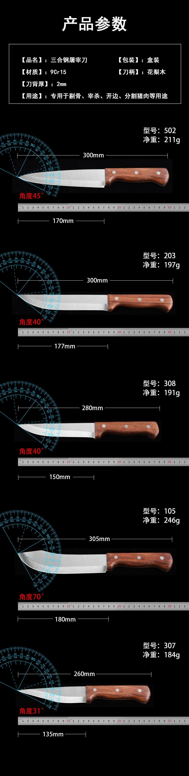 九铬锻打三合钢水果刀分刀屠宰分割刀剔骨手工锻打杀羊猪刀复合钢