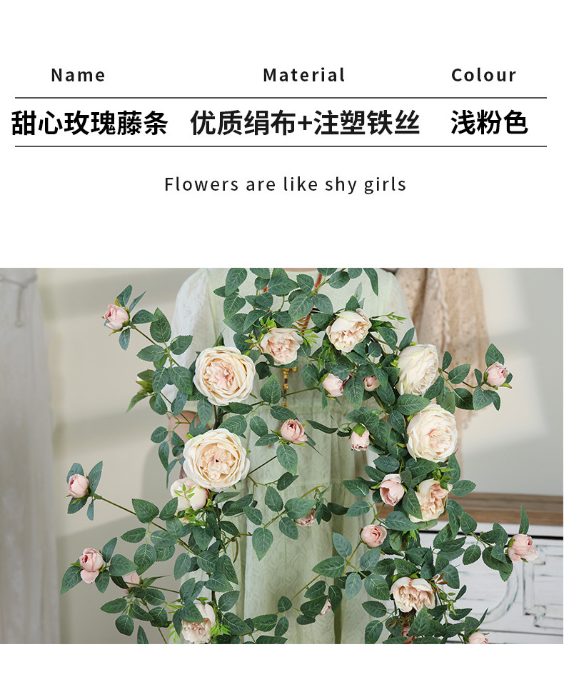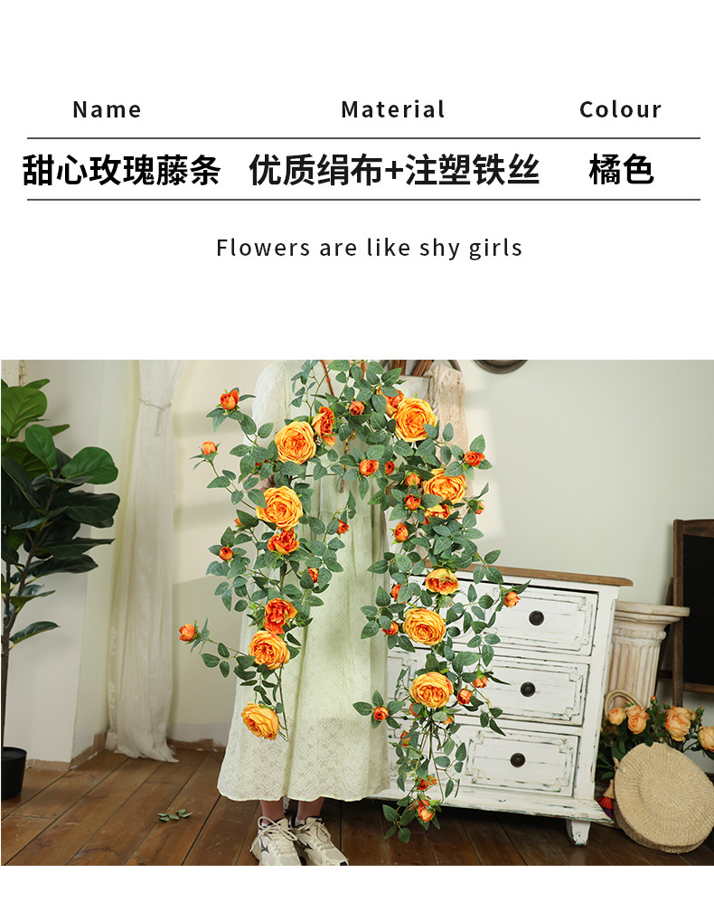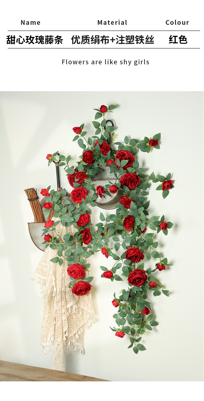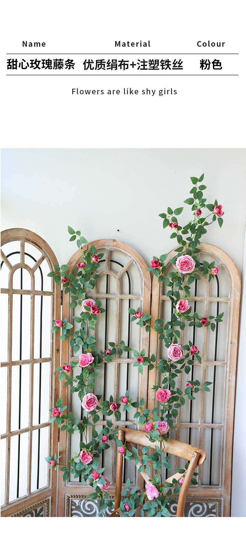 仿真甜心玫瑰藤条仿真花藤装饰吊花玫瑰缠绕藤蔓花艺管道吊顶橱窗